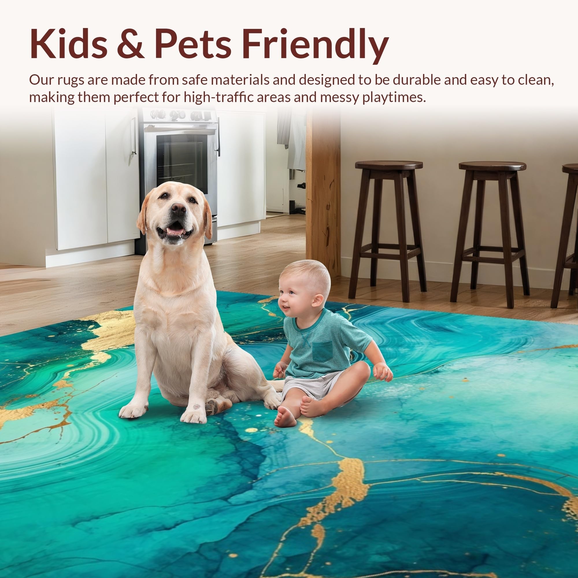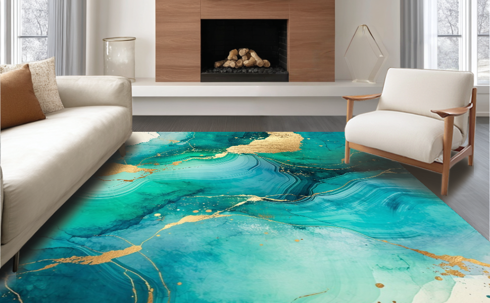 Ultra Soft Area Rug, Non Slip, Stain Resistant, Washable Area Rugs for Living Room, Bedroom, Vibrant Oceanic Patterned Art(Blue) Overview: