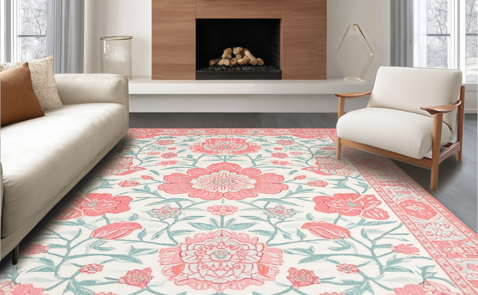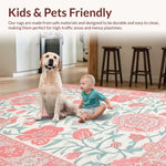 Ultra Soft Area Rug, Non Slip, Stain Resistant, Washable Area Rugs for Living Room, Bedroom, Vibrant Ogee Coral Motif(Pink) Overview:
