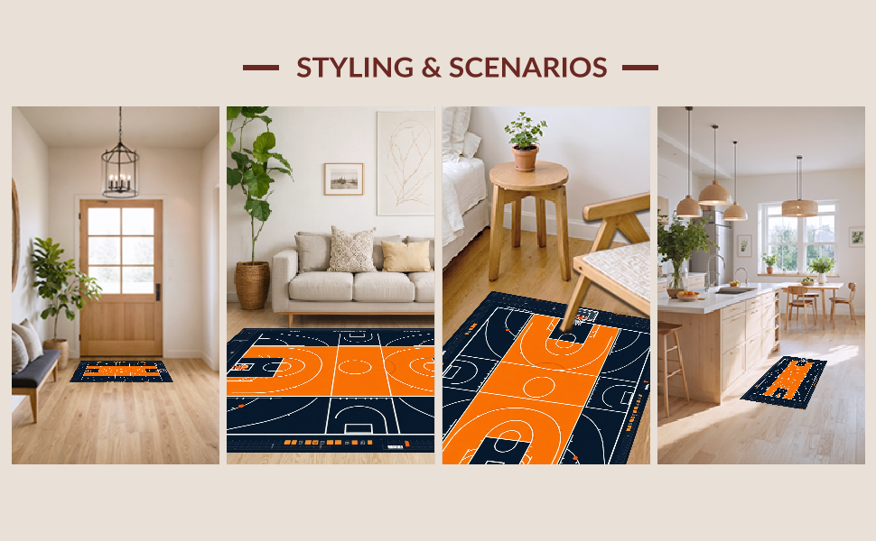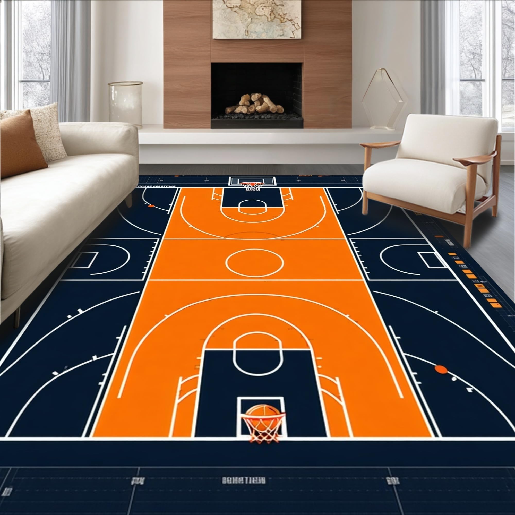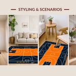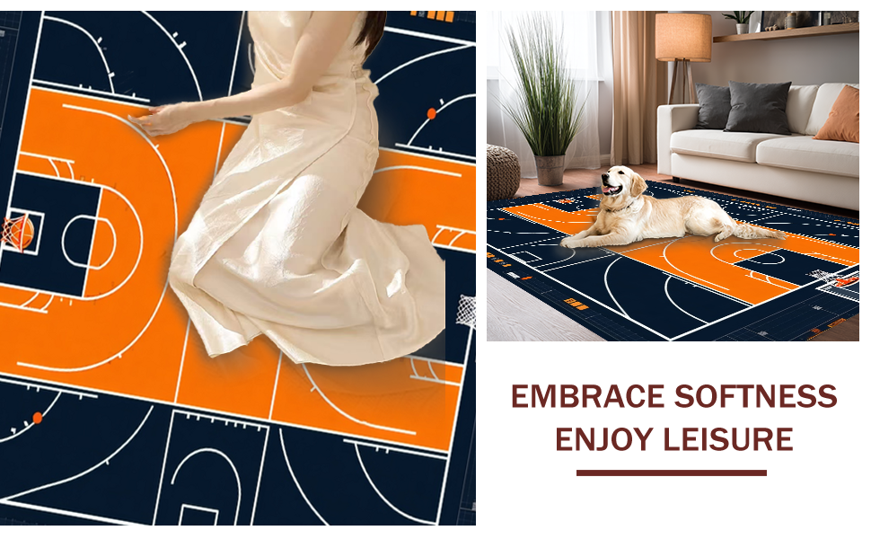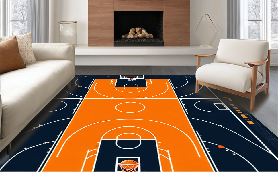 Ultra Soft Area Rug, Non Slip, Stain Resistant, Washable Area Rugs for Living Room, Bedroom, Vibrant Orange Graphic Motif(Black) Overview: