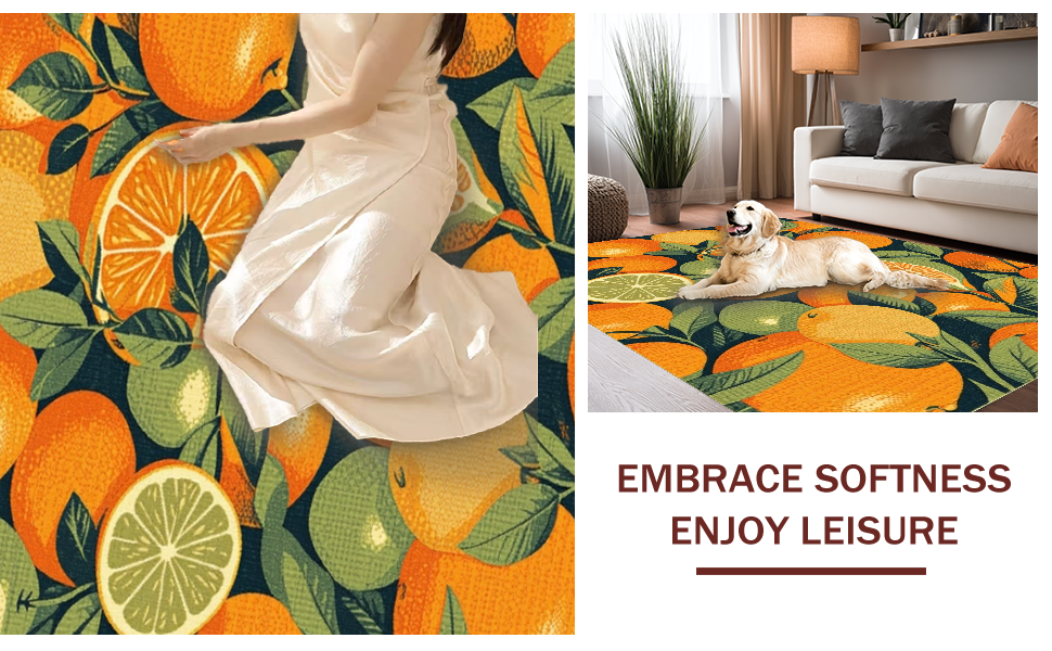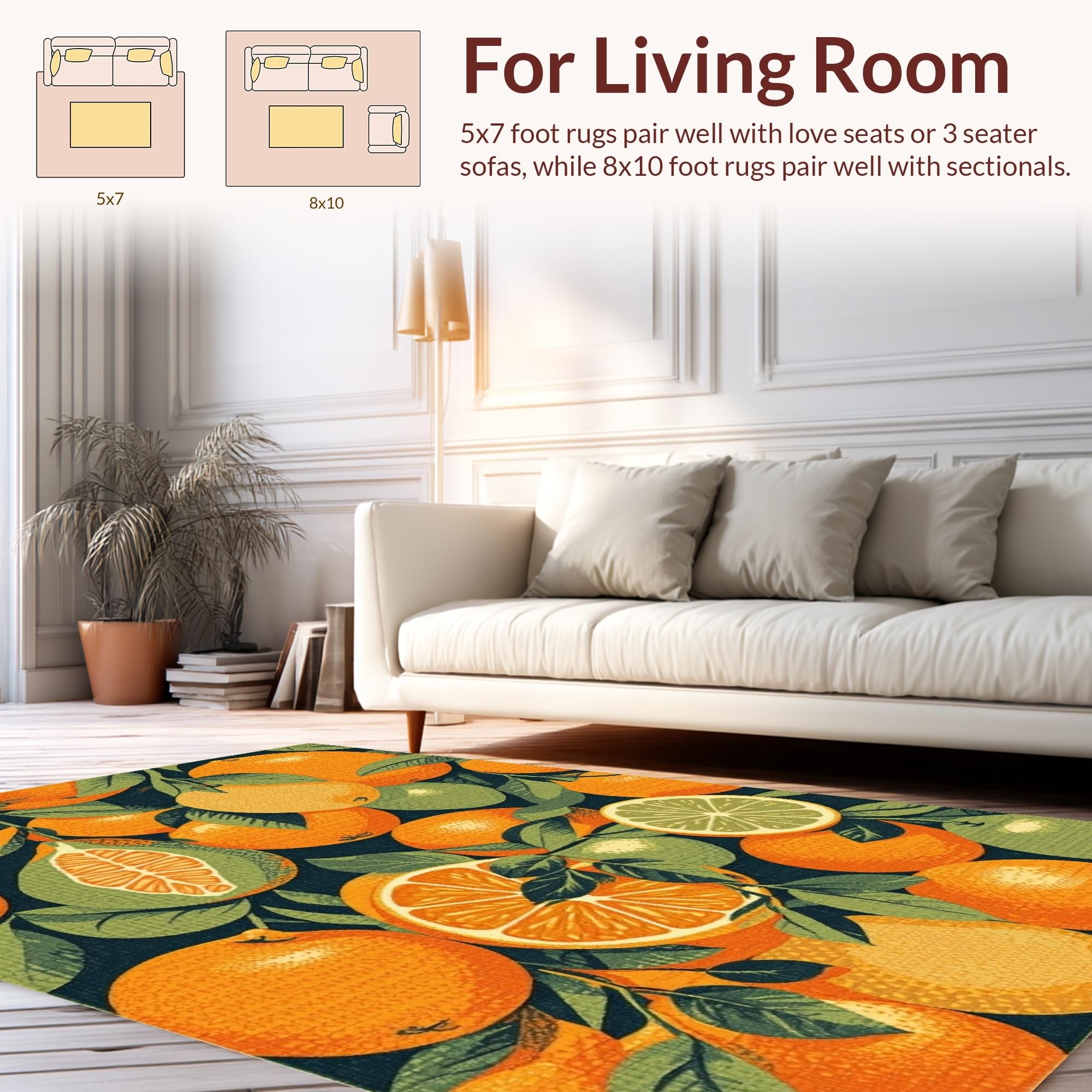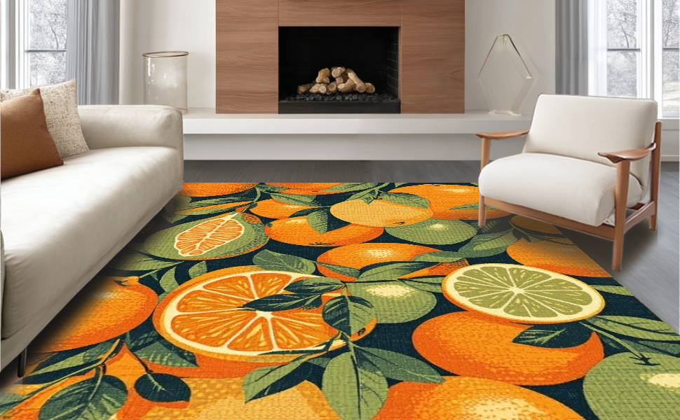 Ultra Soft Area Rug, Non Slip, Stain Resistant, Washable Area Rugs for Living Room, Bedroom, Vibrant Organic Patterned Mat(Orange) Overview: