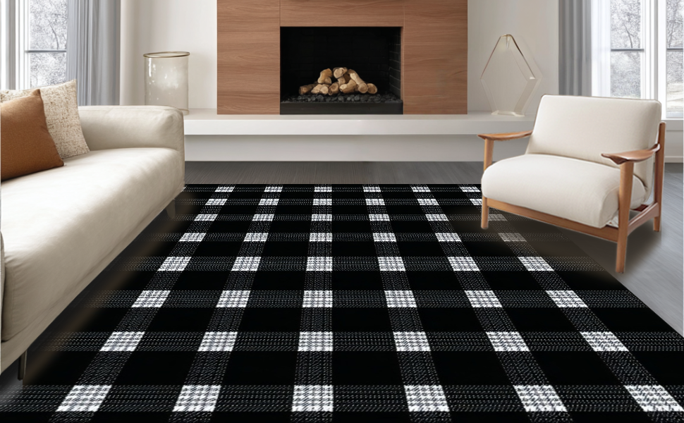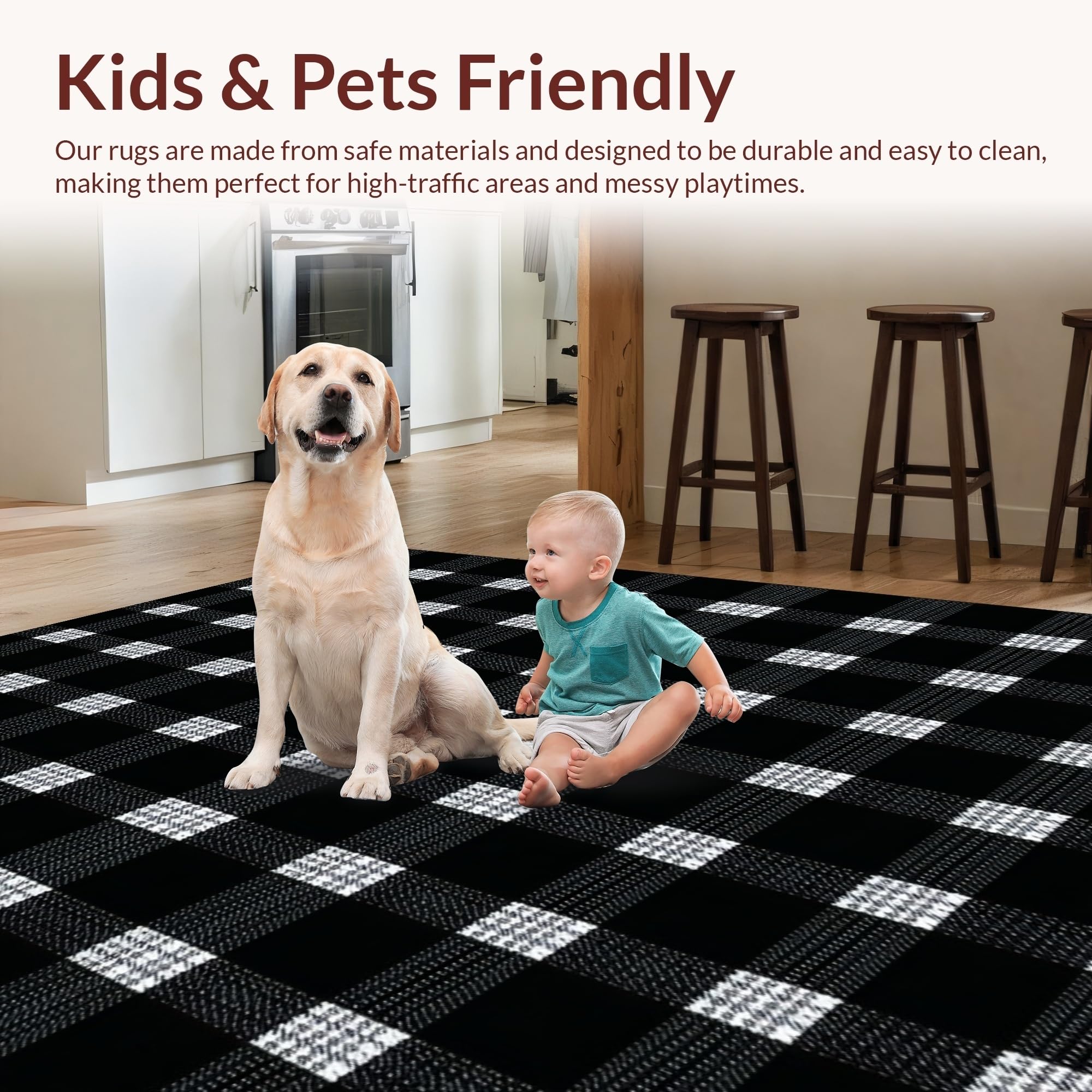 Ultra Soft Area Rug, Non Slip, Stain Resistant, Washable Area Rugs for Living Room, Bedroom, Vibrant Outdoor Trellis Motif(Black) Overview: