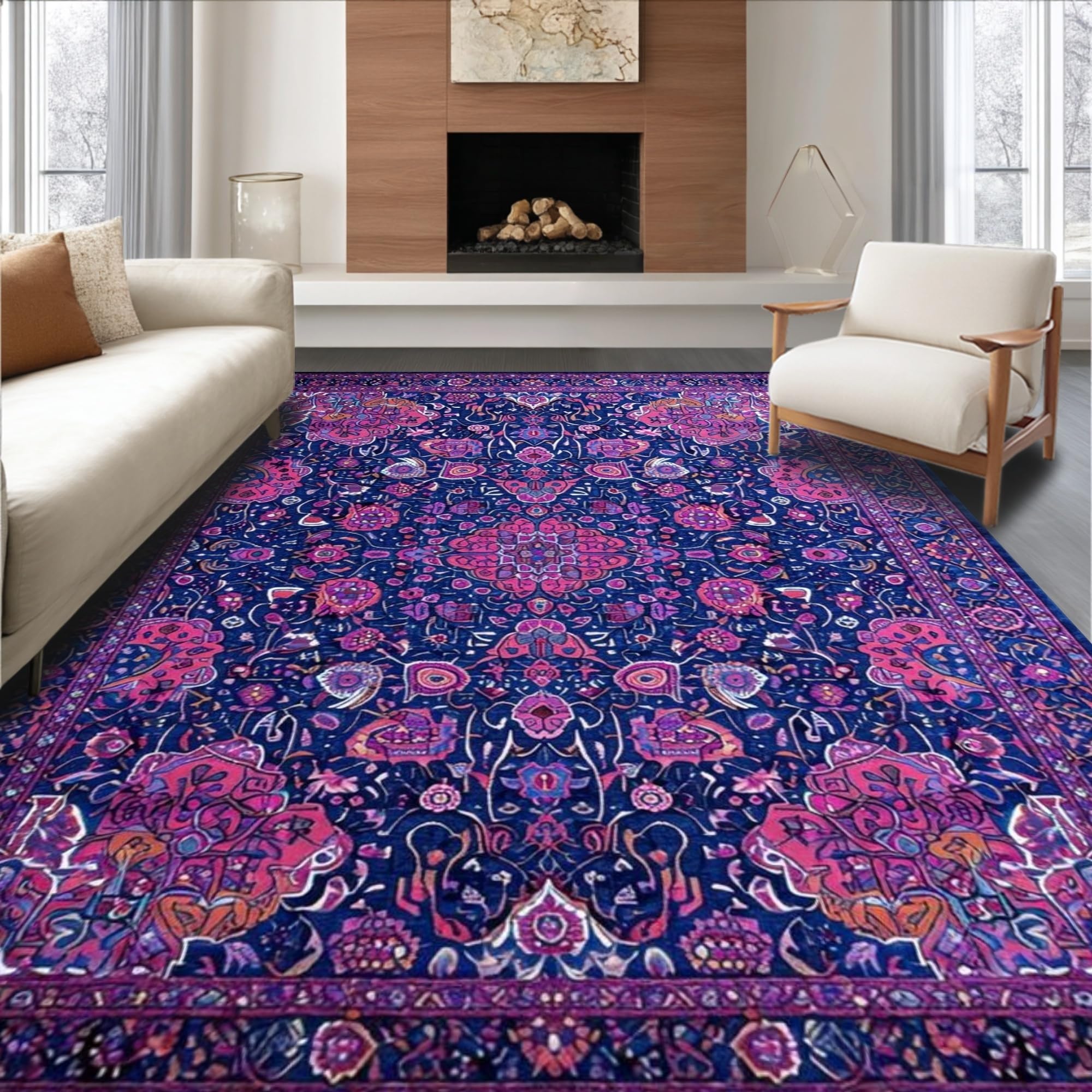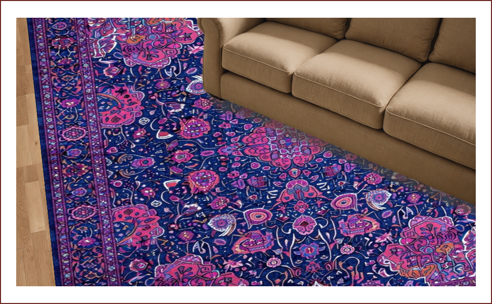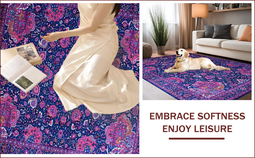 Ultra Soft Area Rug, Non Slip, Stain Resistant, Washable Area Rugs for Living Room, Bedroom, Vibrant Paisley Artful Expression(Blue) Overview: