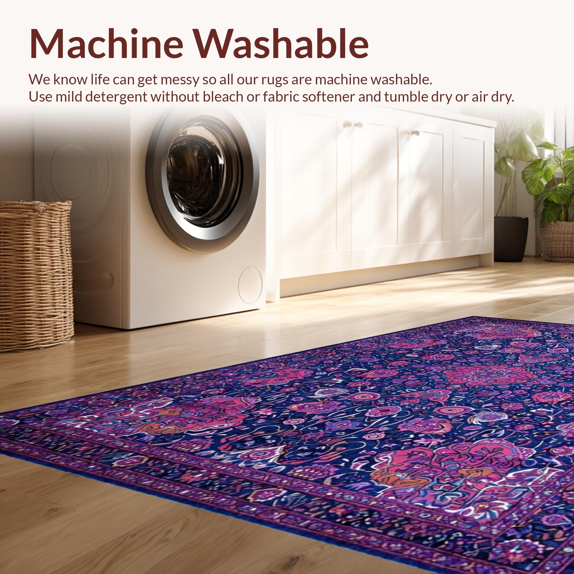 - Machine Washable: Our rugs can be easily thrown in the wash machine.