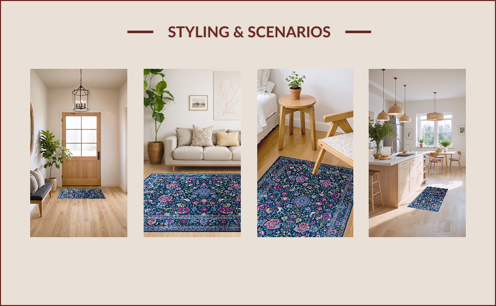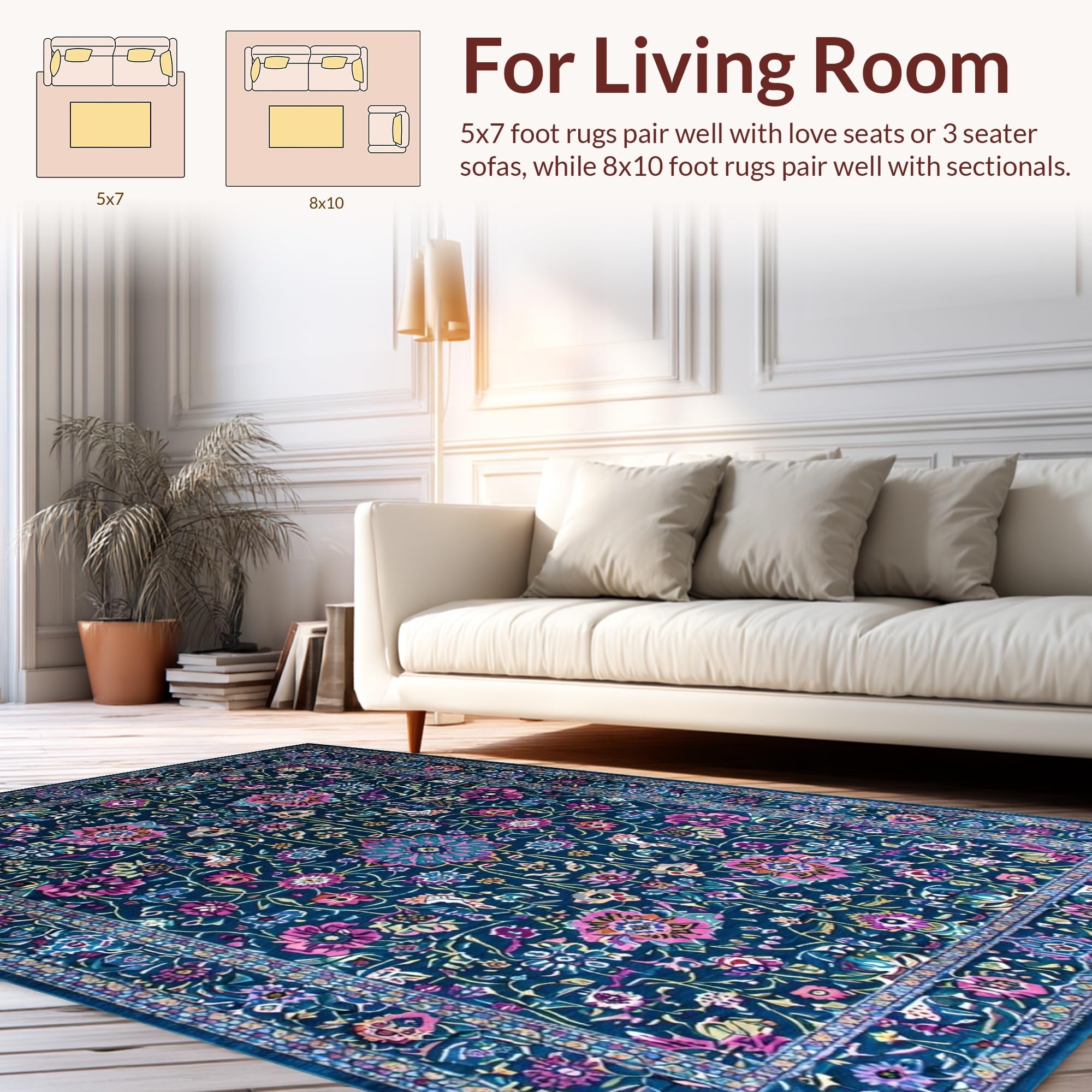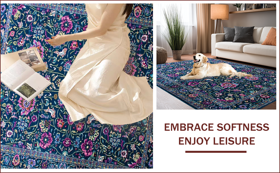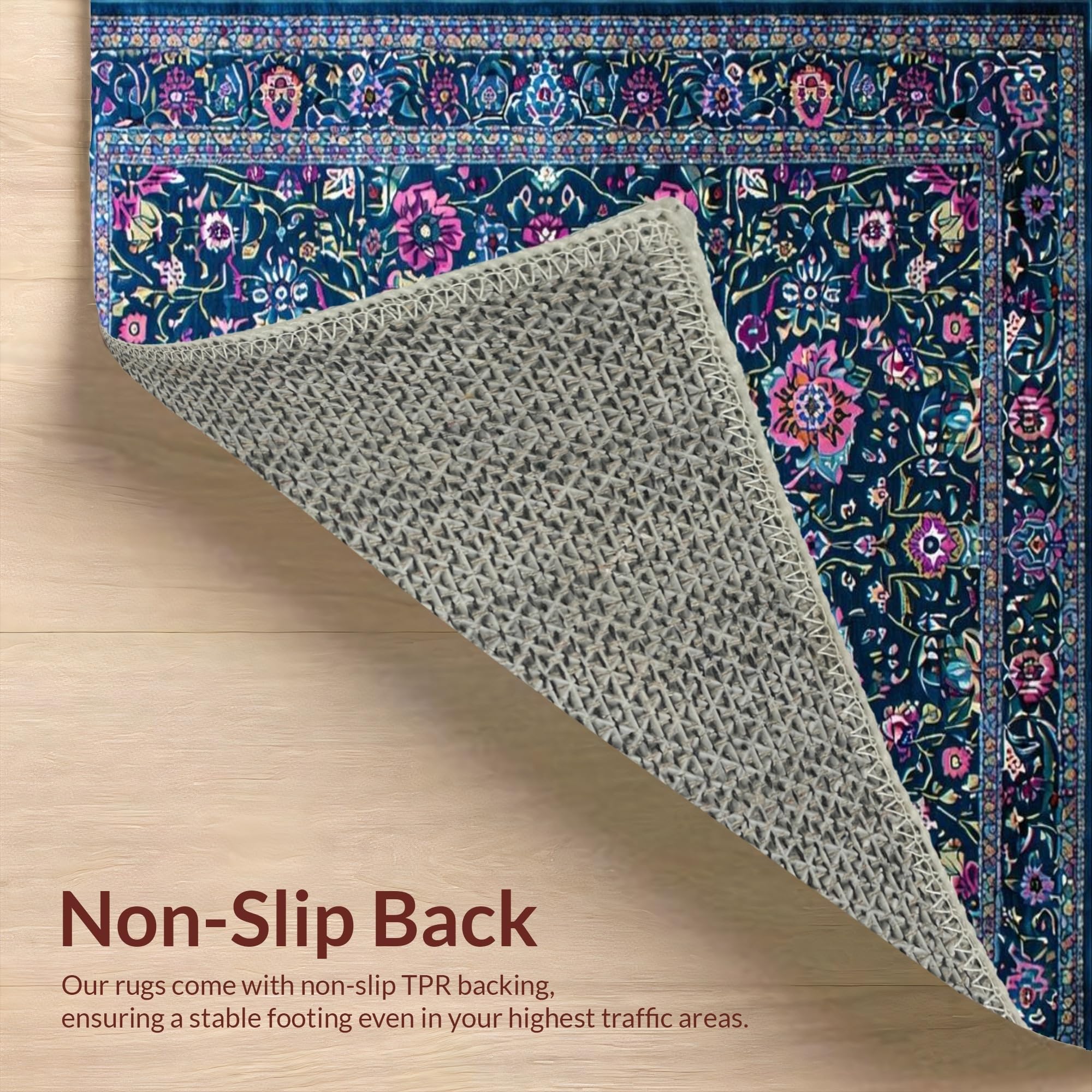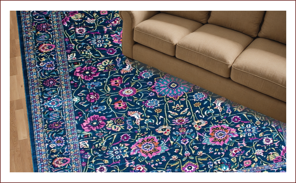 Ultra Soft Area Rug, Non Slip, Stain Resistant, Washable Area Rugs for Living Room, Bedroom, Vibrant Paisley Artistry Palette(Blue) Overview: