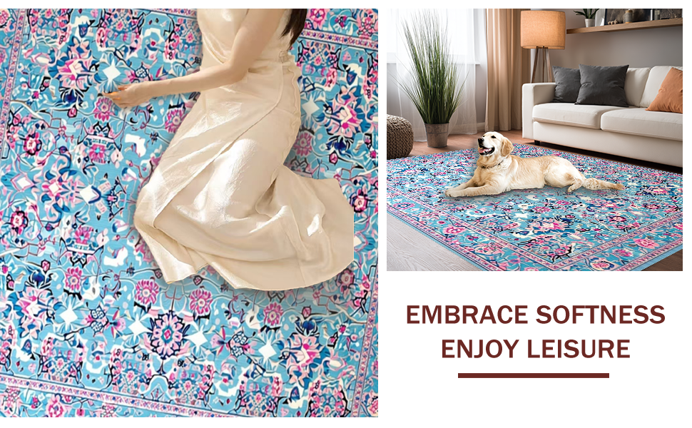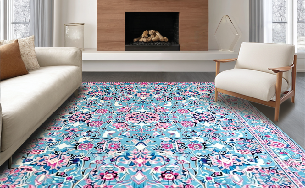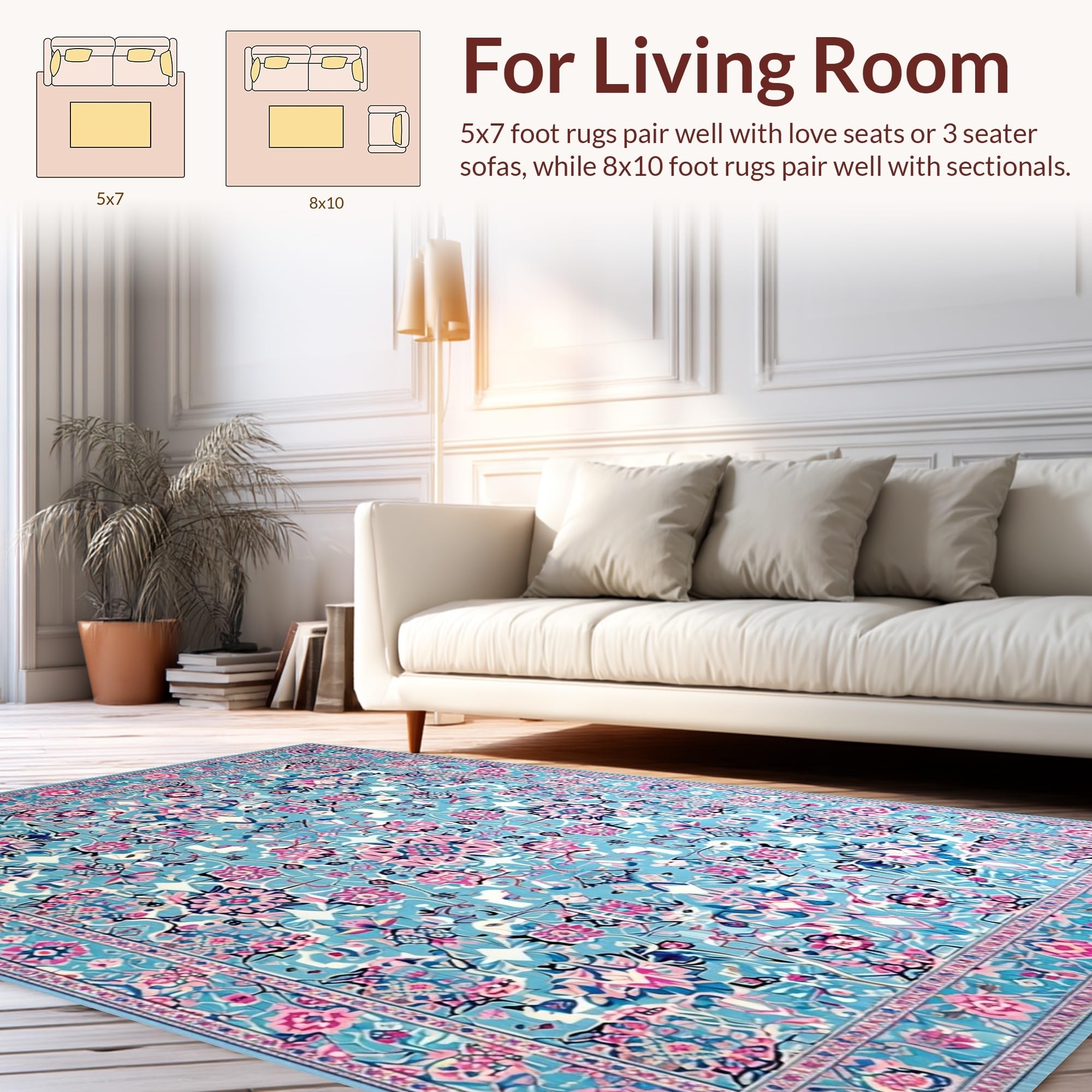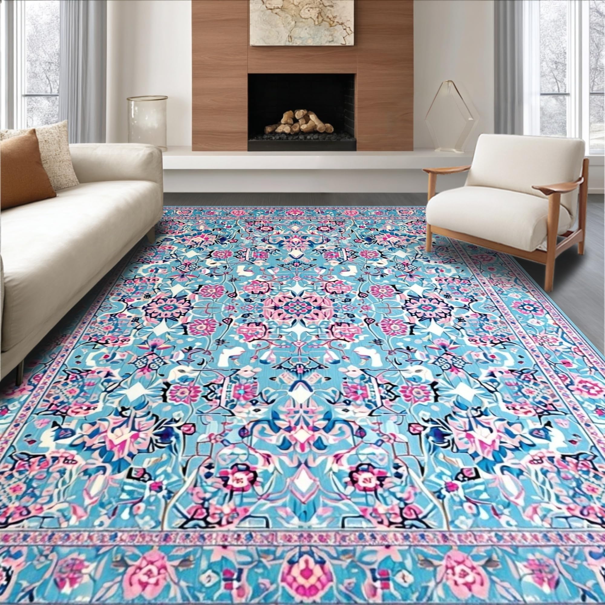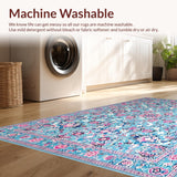 Ultra Soft Area Rug, Non Slip, Stain Resistant, Washable Area Rugs for Living Room, Bedroom, Vibrant Pastel Floral Motif(Blue) Overview: