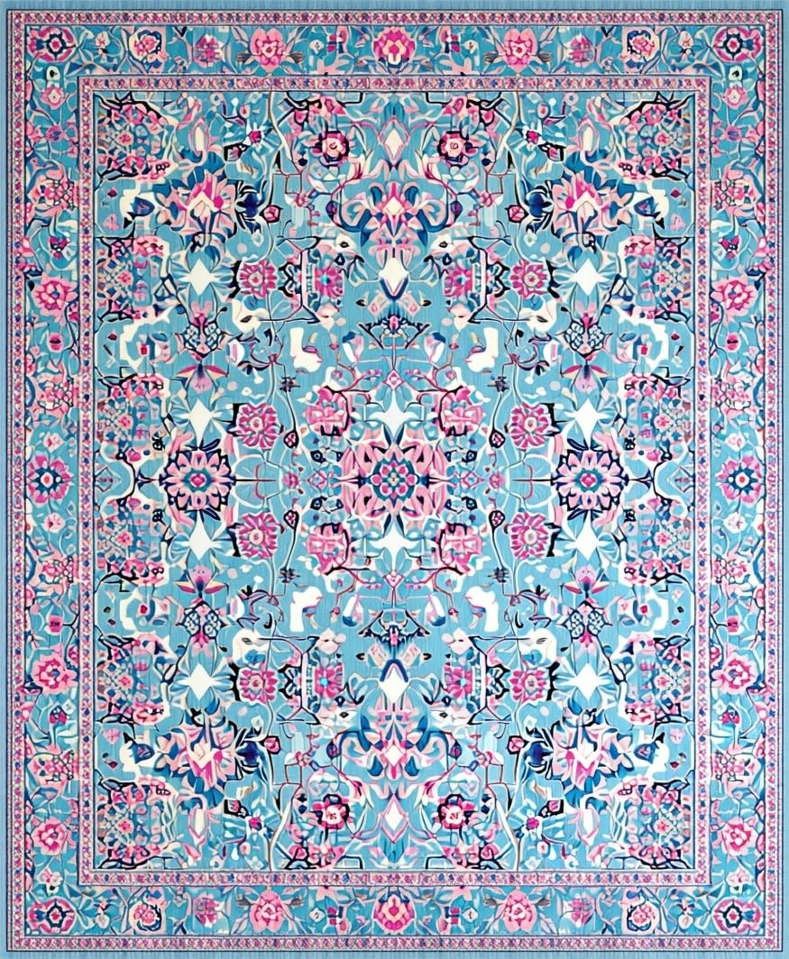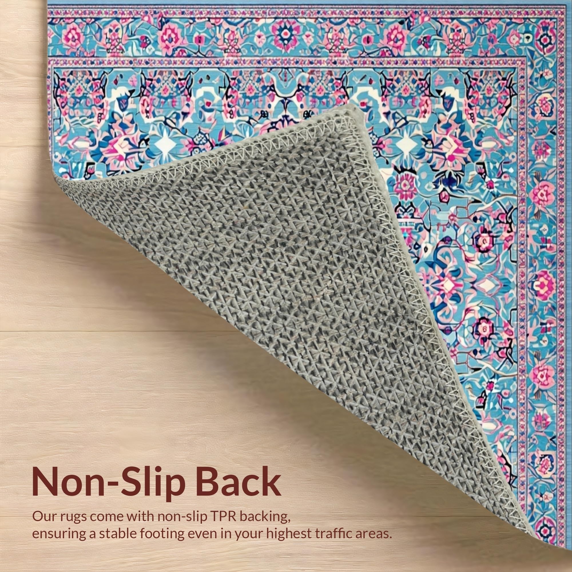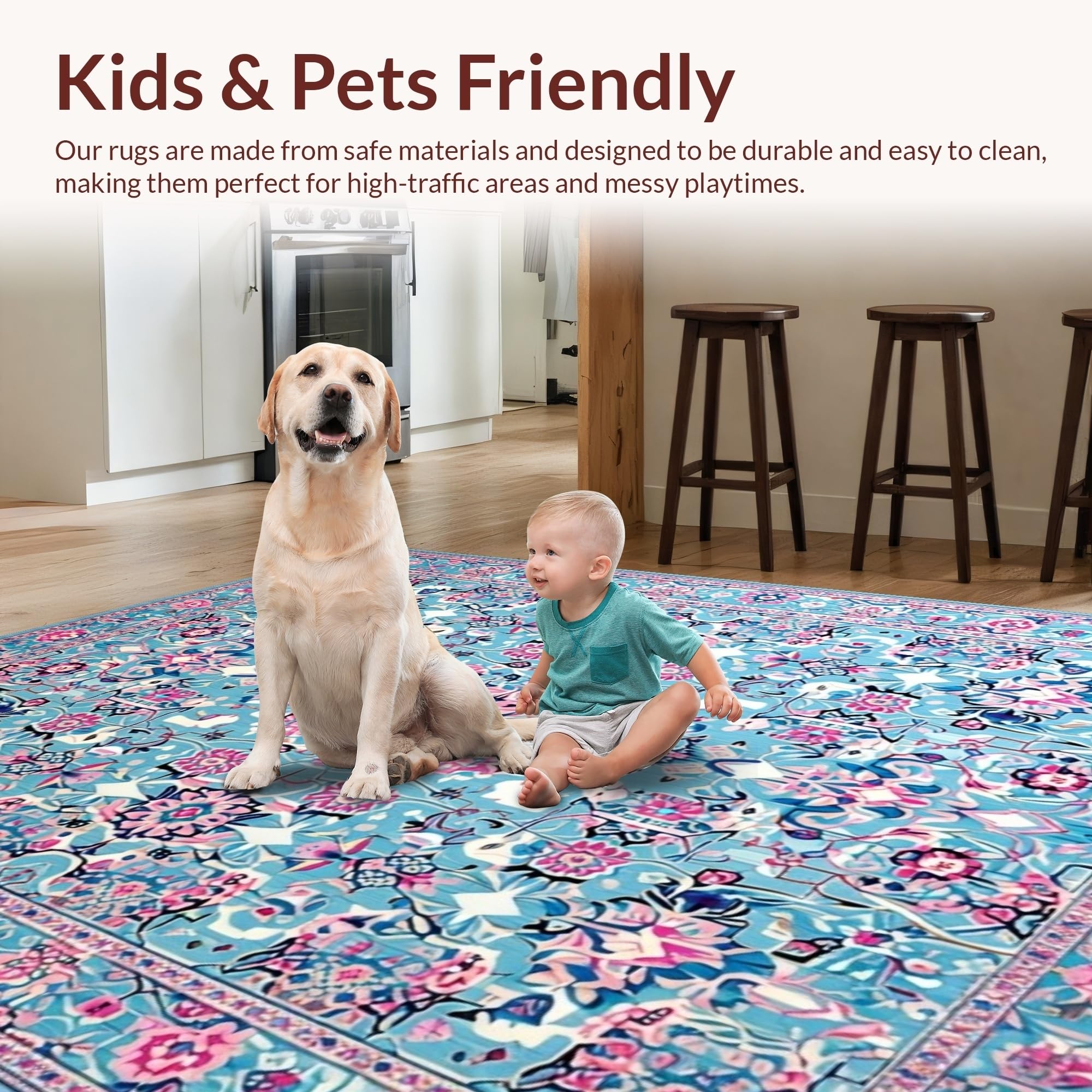 Ultra Soft Area Rug, Non Slip, Stain Resistant, Washable Area Rugs for Living Room, Bedroom, Vibrant Pastel Floral Motif(Blue) Overview: