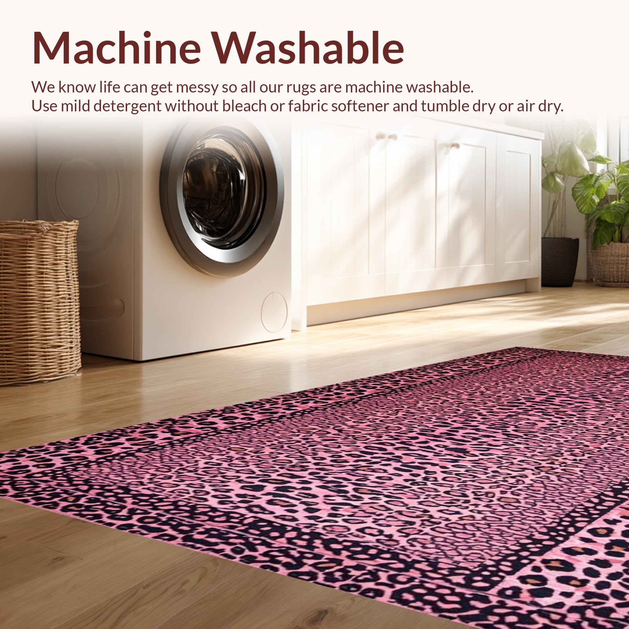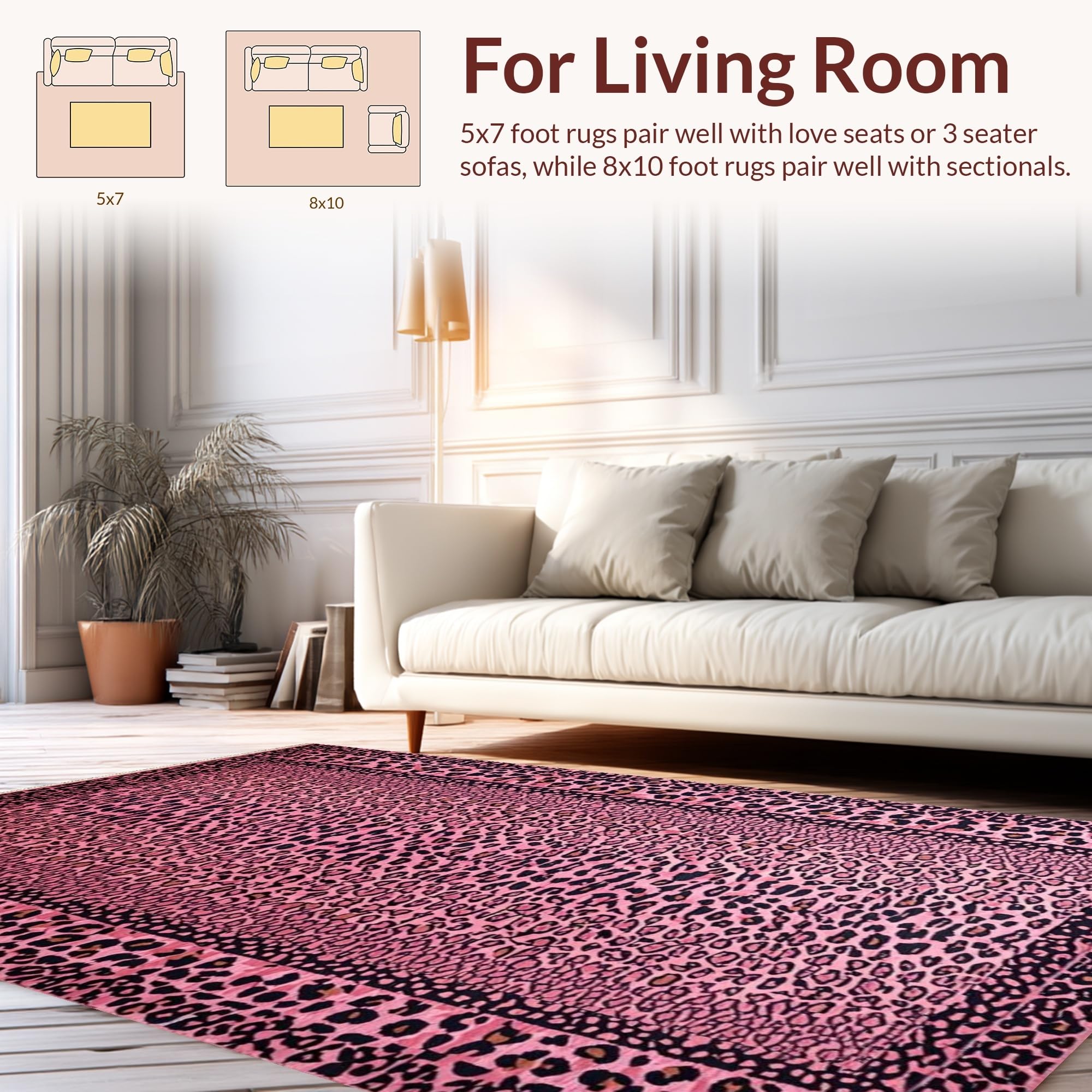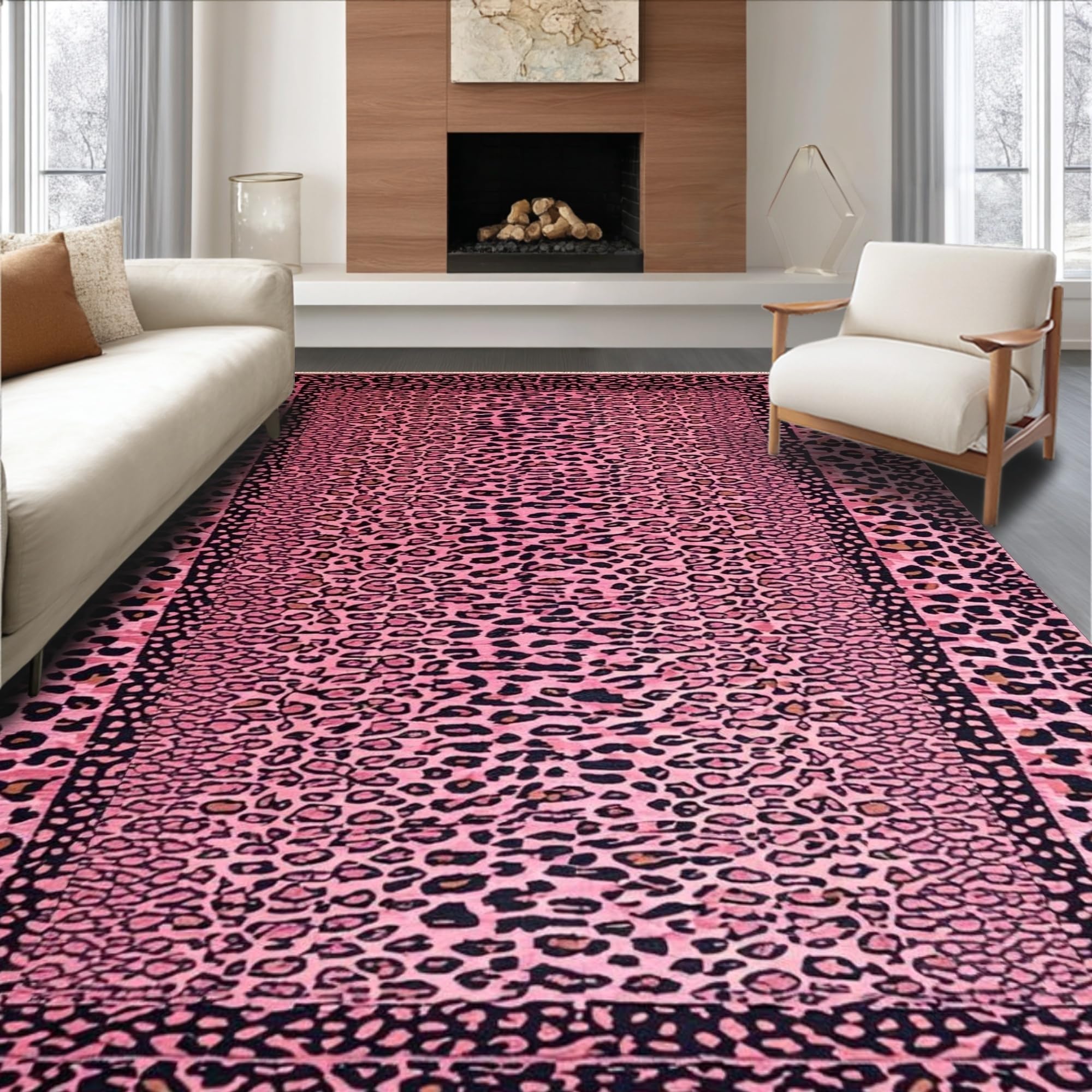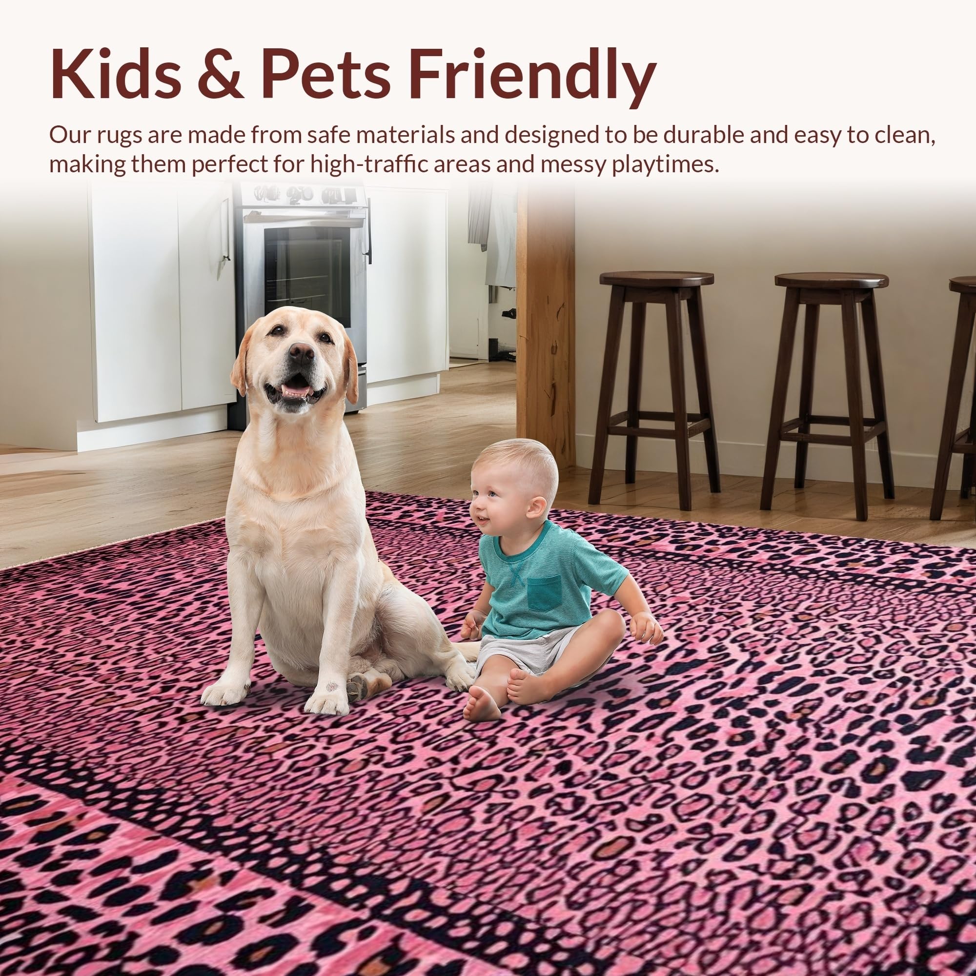 Ultra Soft Area Rug, Non Slip, Stain Resistant, Washable Area Rugs for Living Room, Bedroom, Vibrant Pink Cheetah Aesthetic(Pink) Overview: