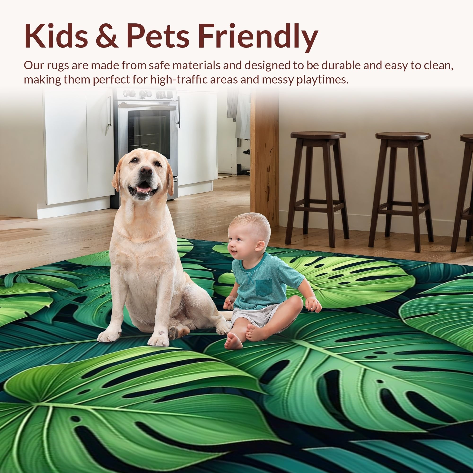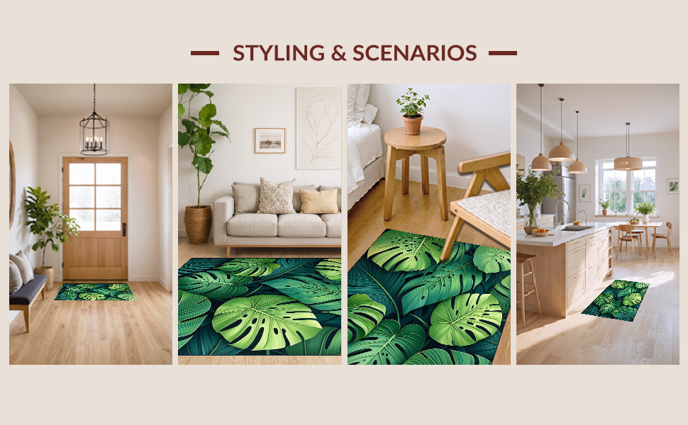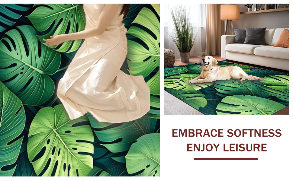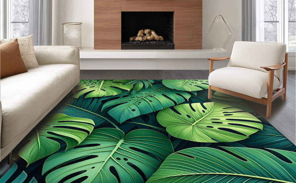 Ultra Soft Area Rug, Non Slip, Stain Resistant, Washable Area Rugs for Living Room, Bedroom, Vibrant Plant-Based Design Element(Green) Overview: