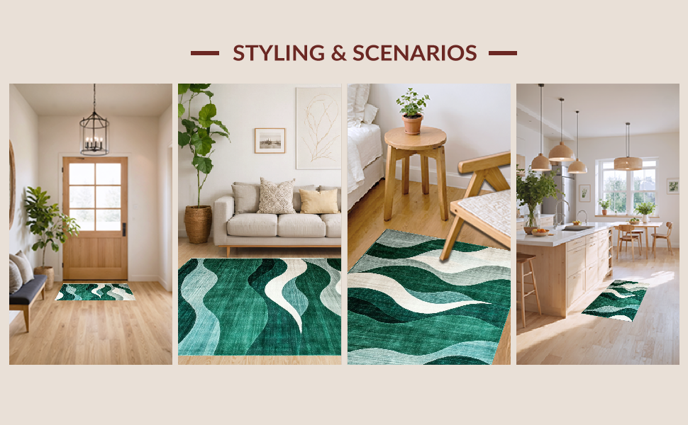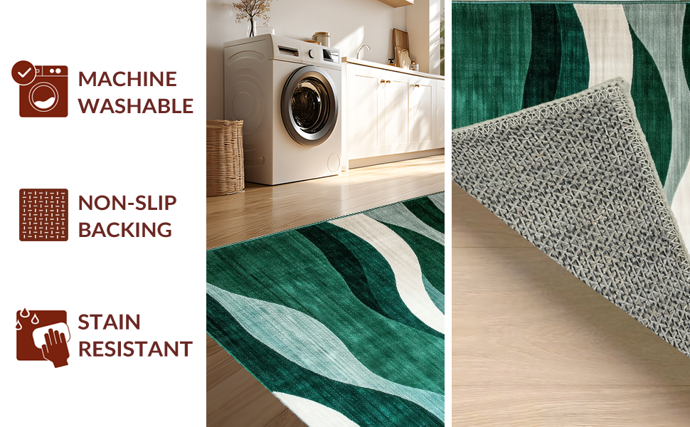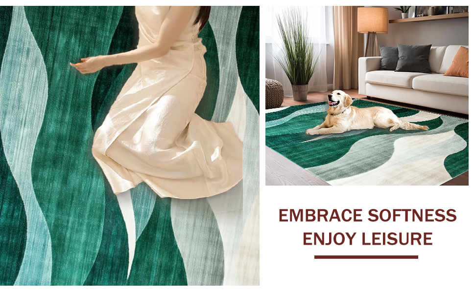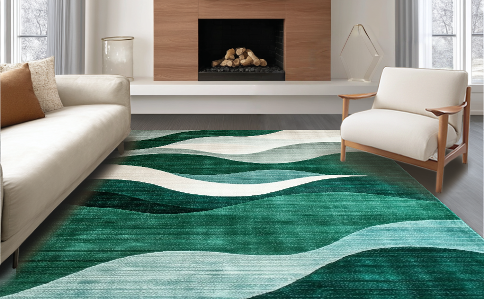 Ultra Soft Area Rug, Non Slip, Stain Resistant, Washable Area Rugs for Living Room, Bedroom, Vibrant Playful Modern Shapes(Green) Overview: