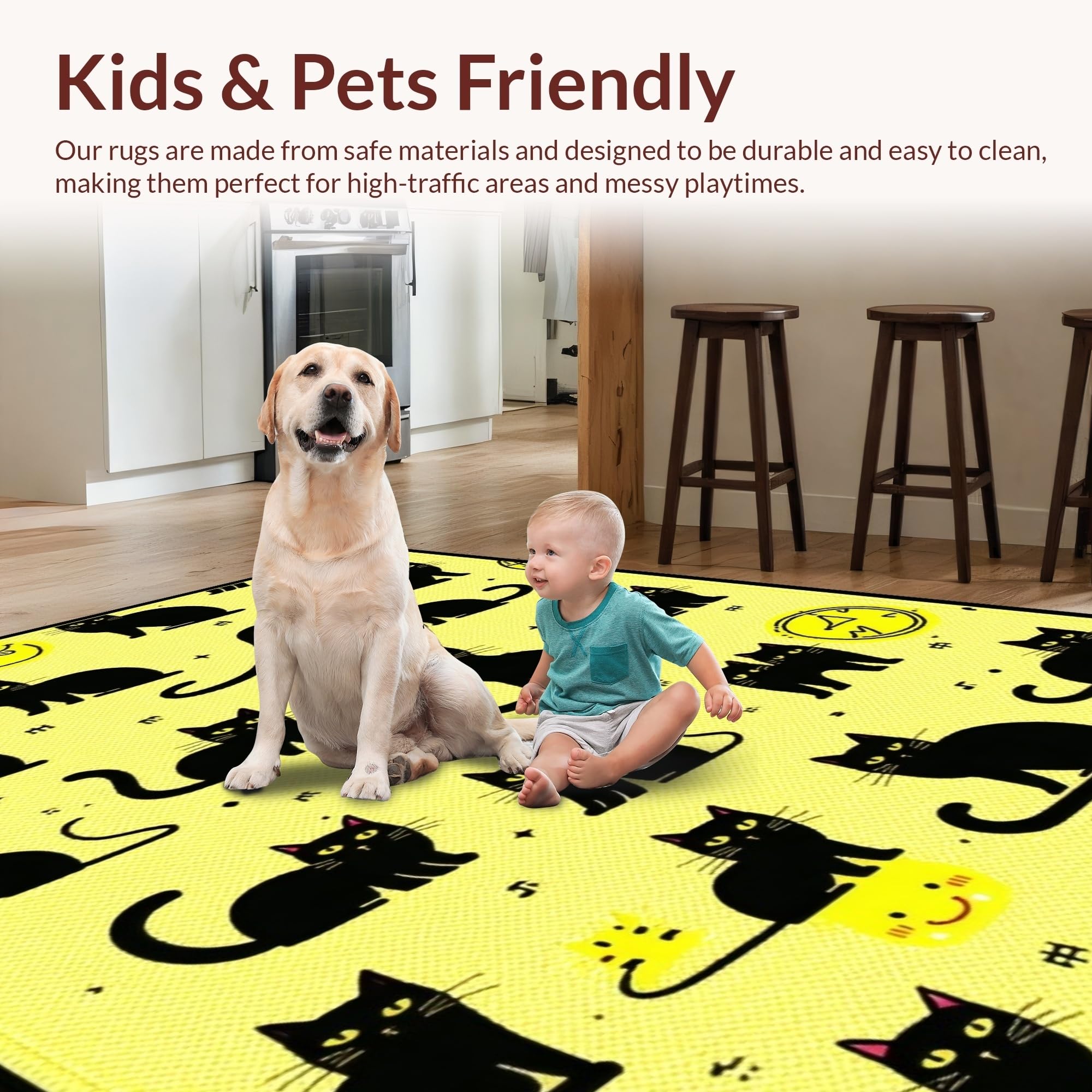 Ultra Soft Area Rug, Non Slip, Stain Resistant, Washable Area Rugs for Living Room, Bedroom, Vibrant Playful Pet Aesthetic(Yellow) Overview: