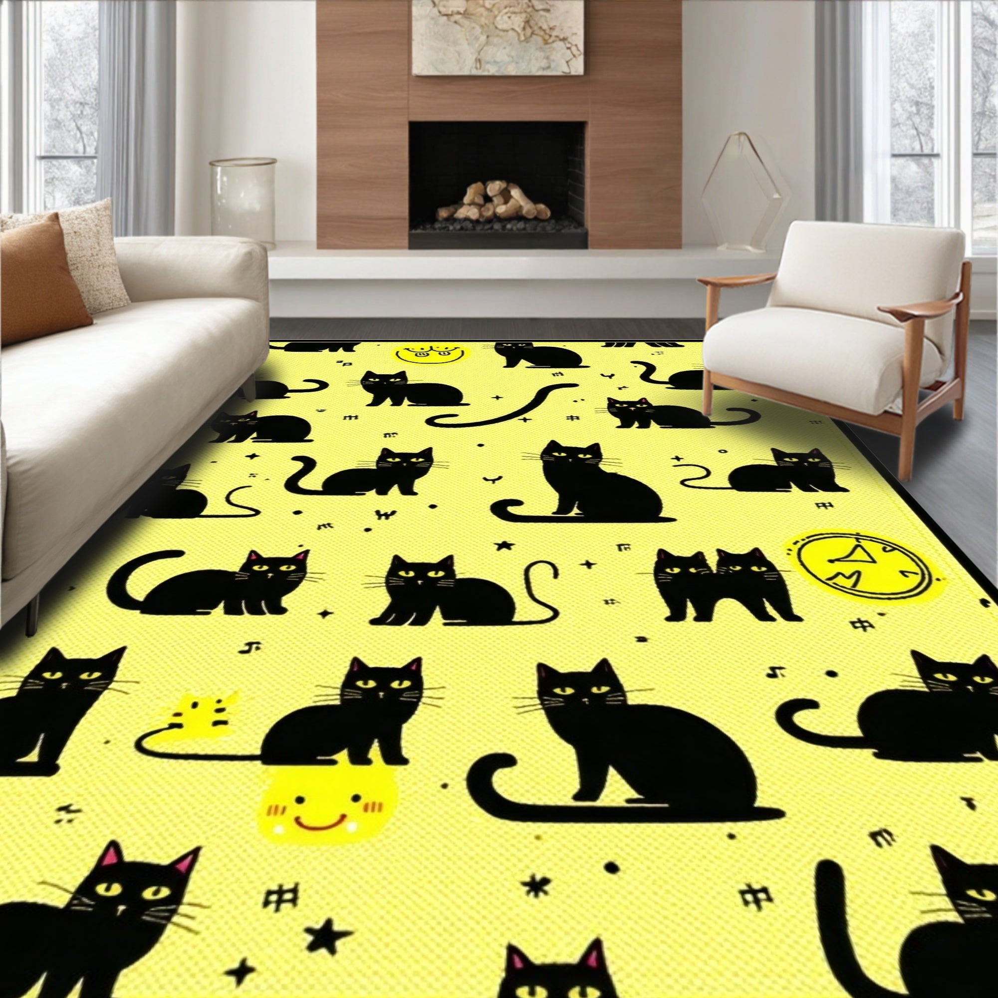 Flatwoven High Traffic Area Rug, Vibrant Playful Pet Aesthetic, Non Slip, Stain Resistant, Washable Area Rugs for Living Room, Bedroom (Yellow) Overview: