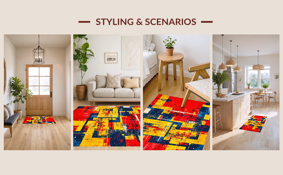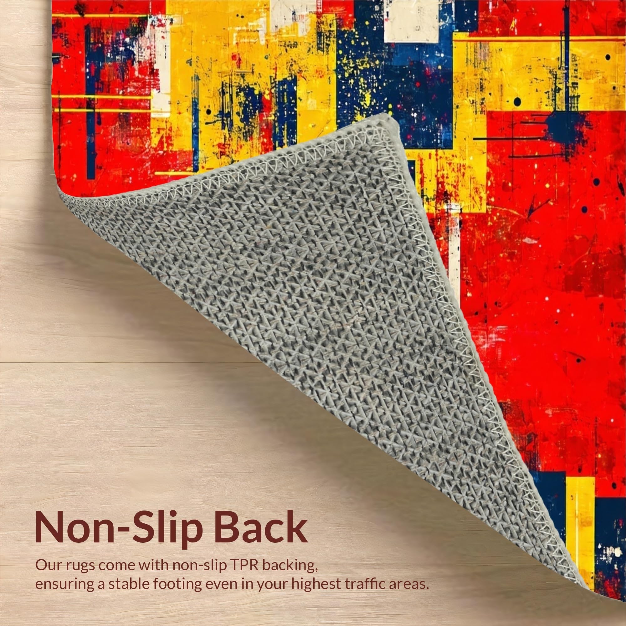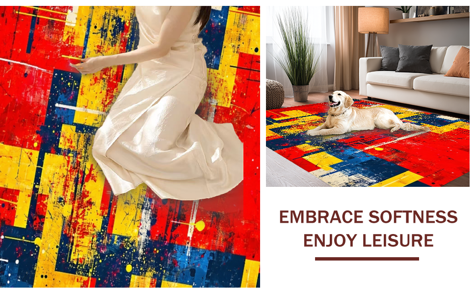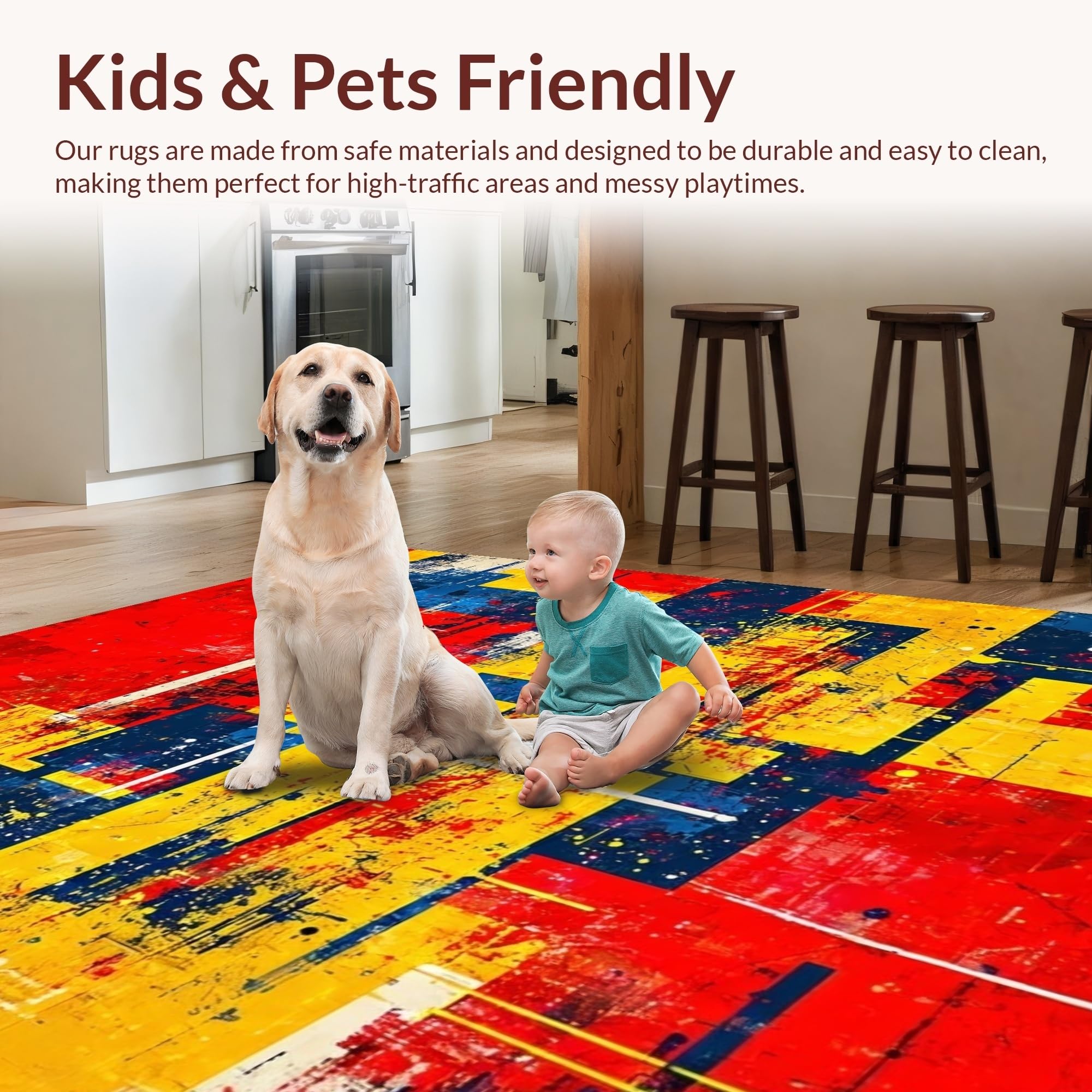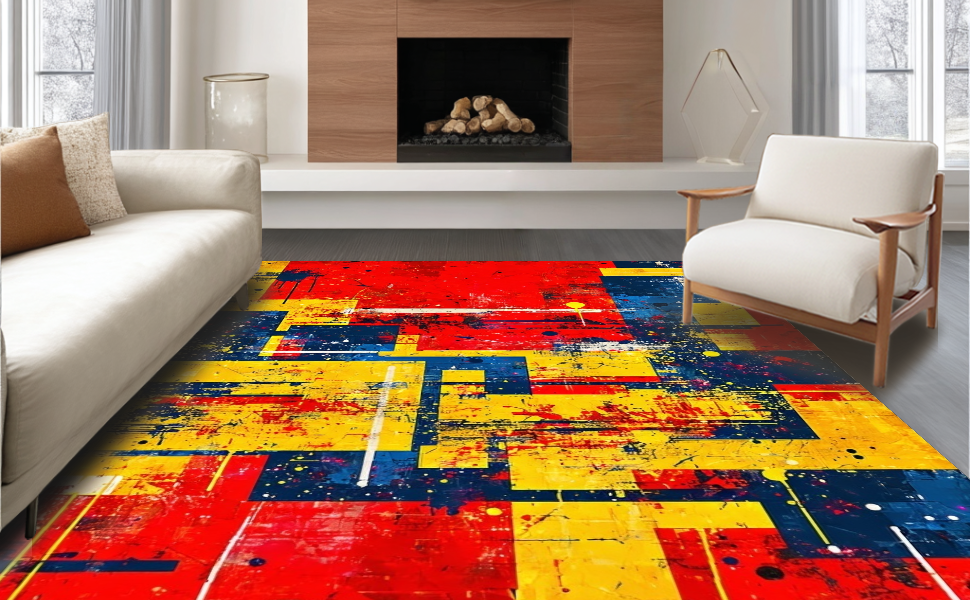 Ultra Soft Area Rug, Non Slip, Stain Resistant, Washable Area Rugs for Living Room, Bedroom, Vibrant Pop Art Visionary Theme(Red) Overview:
