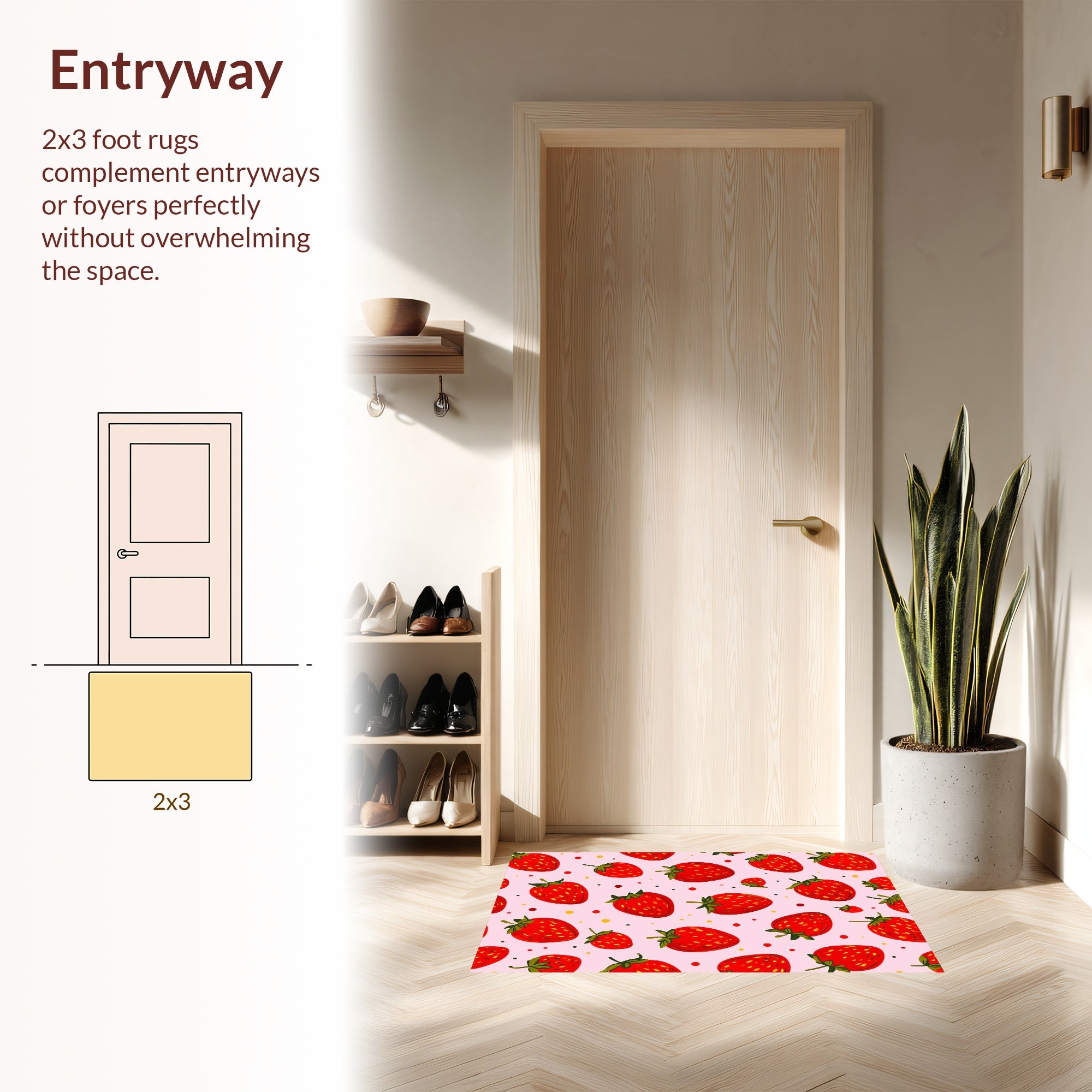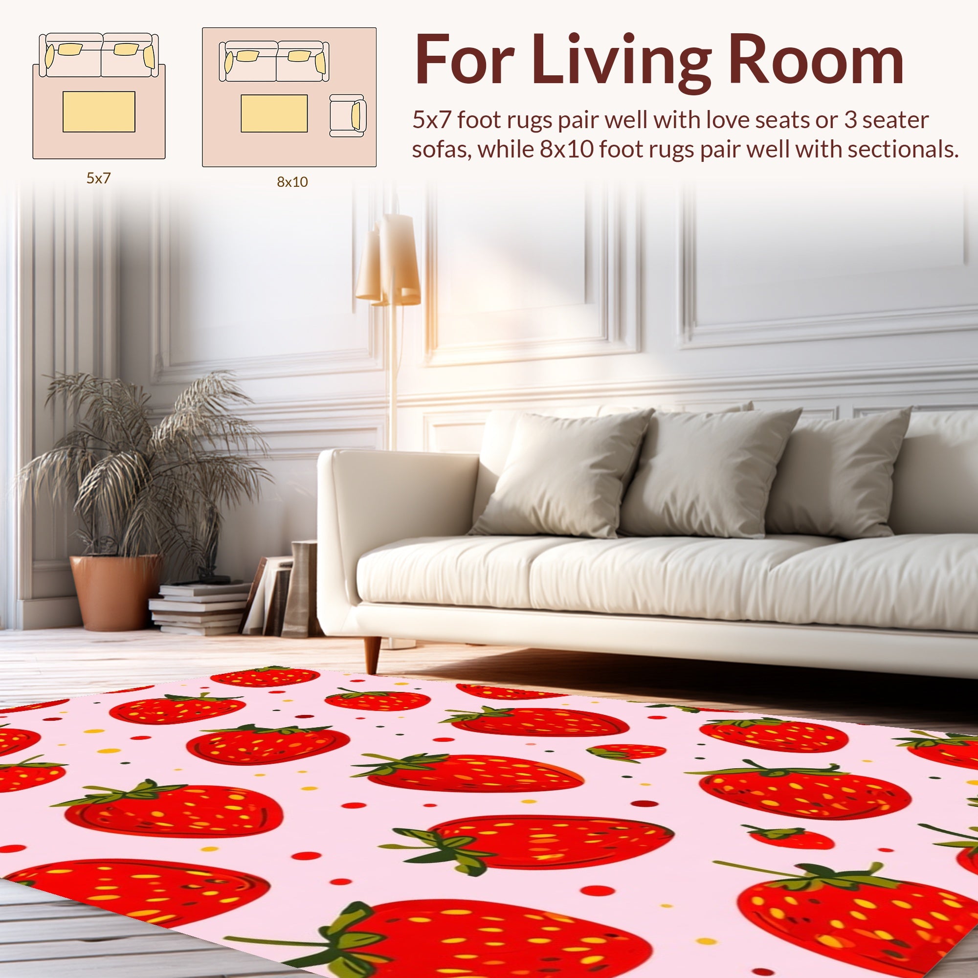 Flatwoven High Traffic Area Rug, Vibrant Quirky Strawberry Aesthetic, Non Slip, Stain Resistant, Washable Area Rugs for Living Room, Bedroom (Red) Overview: