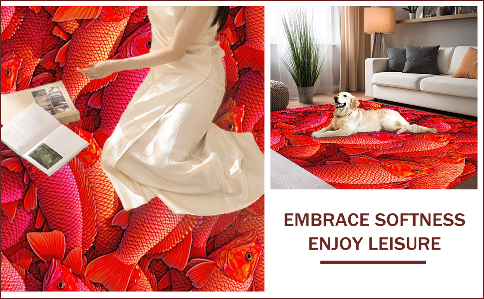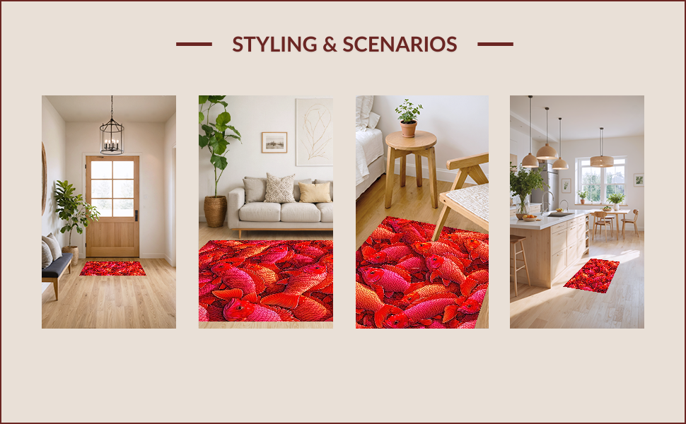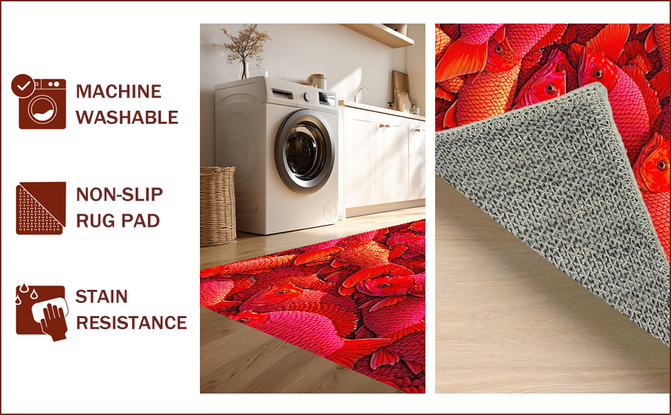 Ultra Soft Area Rug, Non Slip, Stain Resistant, Washable Area Rugs for Living Room, Bedroom, Vibrant Red Fish Coastal Entryway Non-Slip Doormat(Red) Overview: