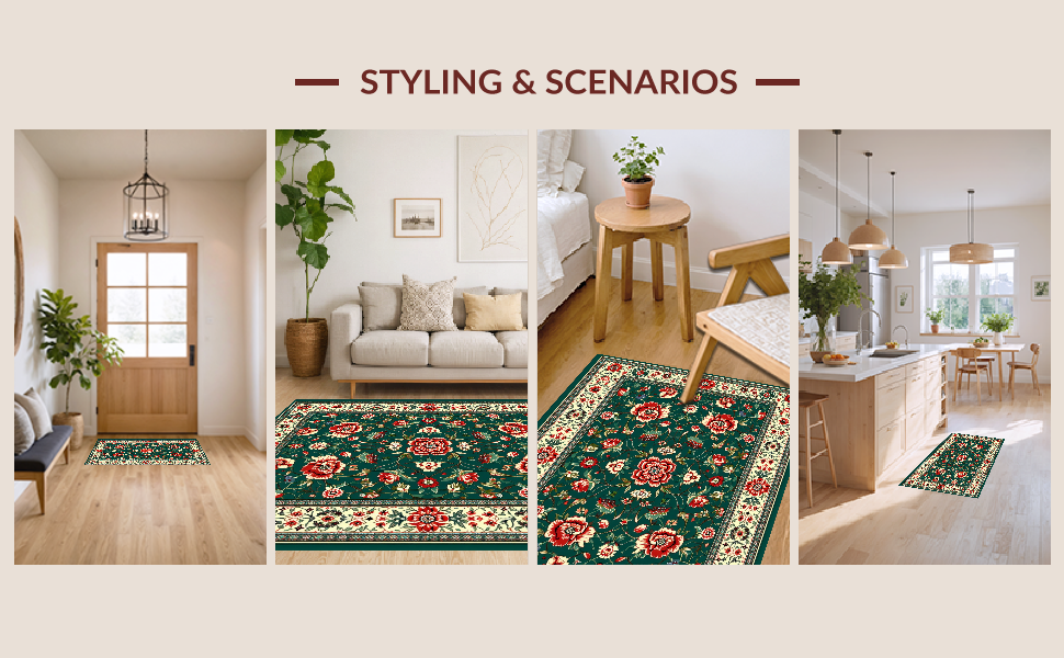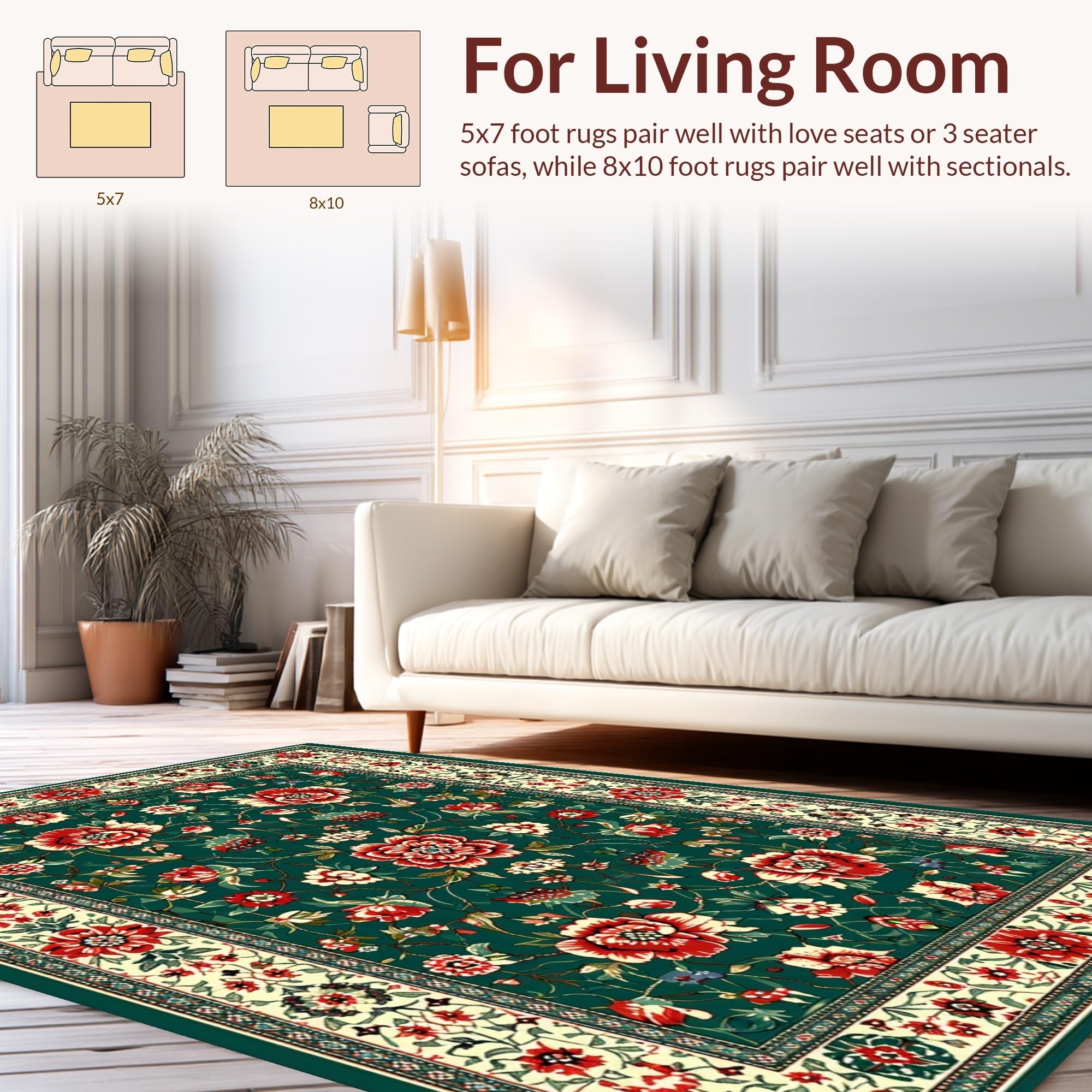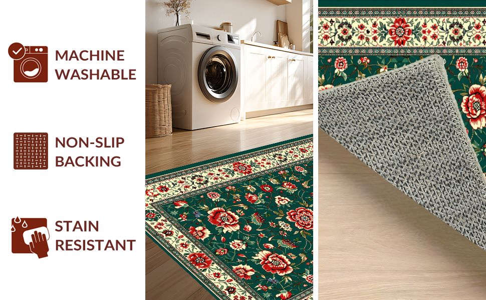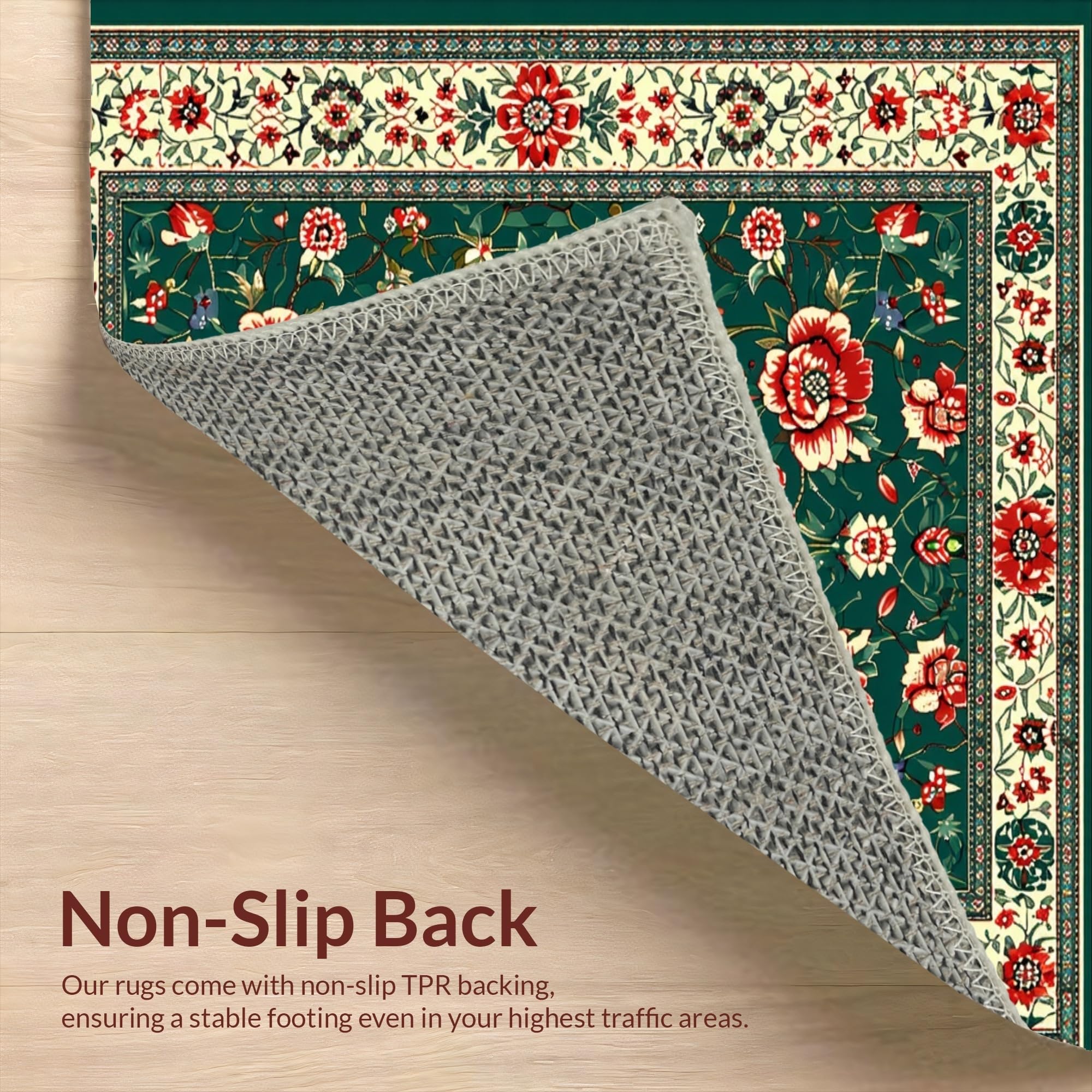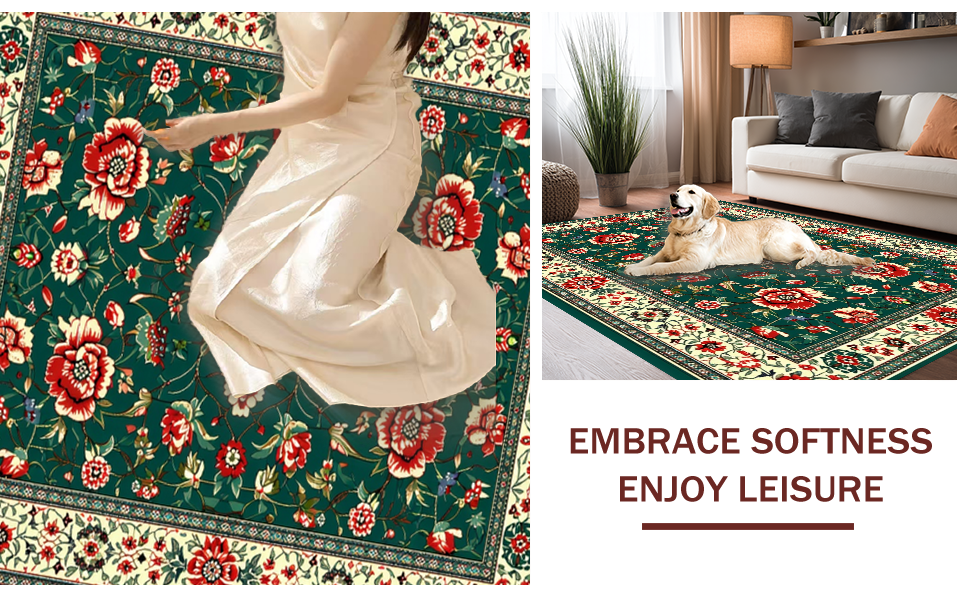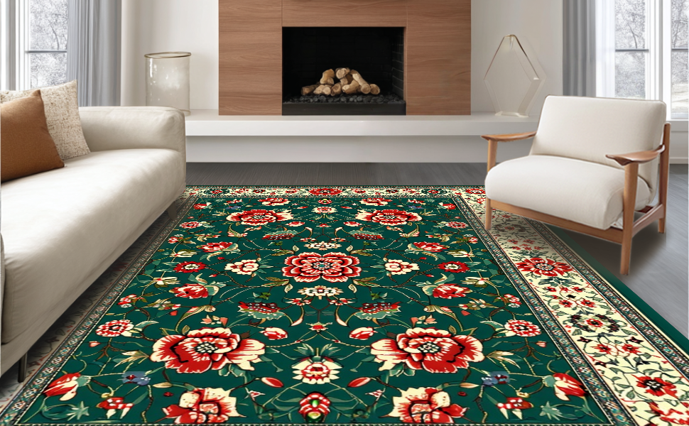Ultra Soft Area Rug, Non Slip, Stain Resistant, Washable Area Rugs for Living Room, Bedroom, Vibrant Retro Botanical Delight(Green) Overview: