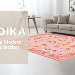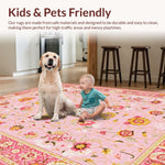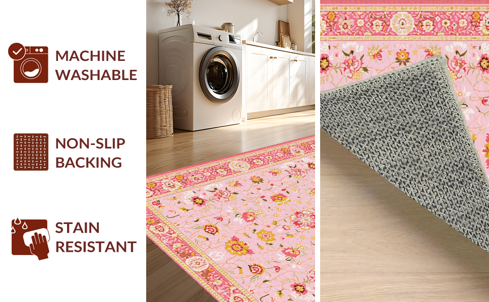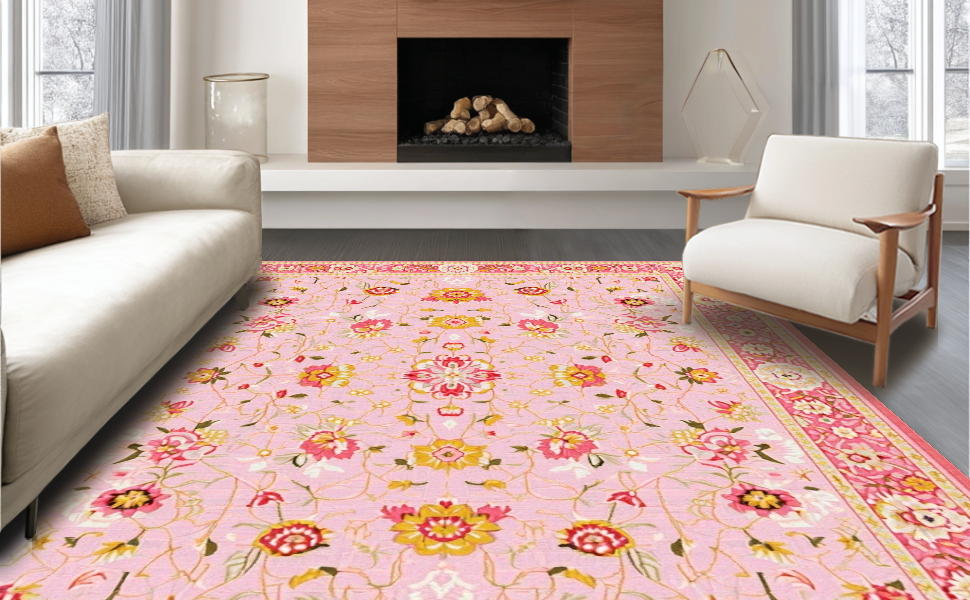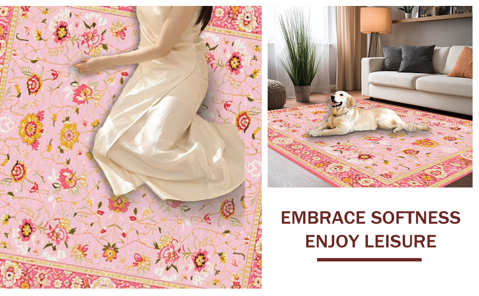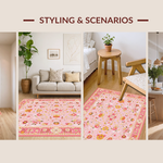 Ultra Soft Area Rug, Non Slip, Stain Resistant, Washable Area Rugs for Living Room, Bedroom, Vibrant Retro Botanical Design(Pink) Overview:
