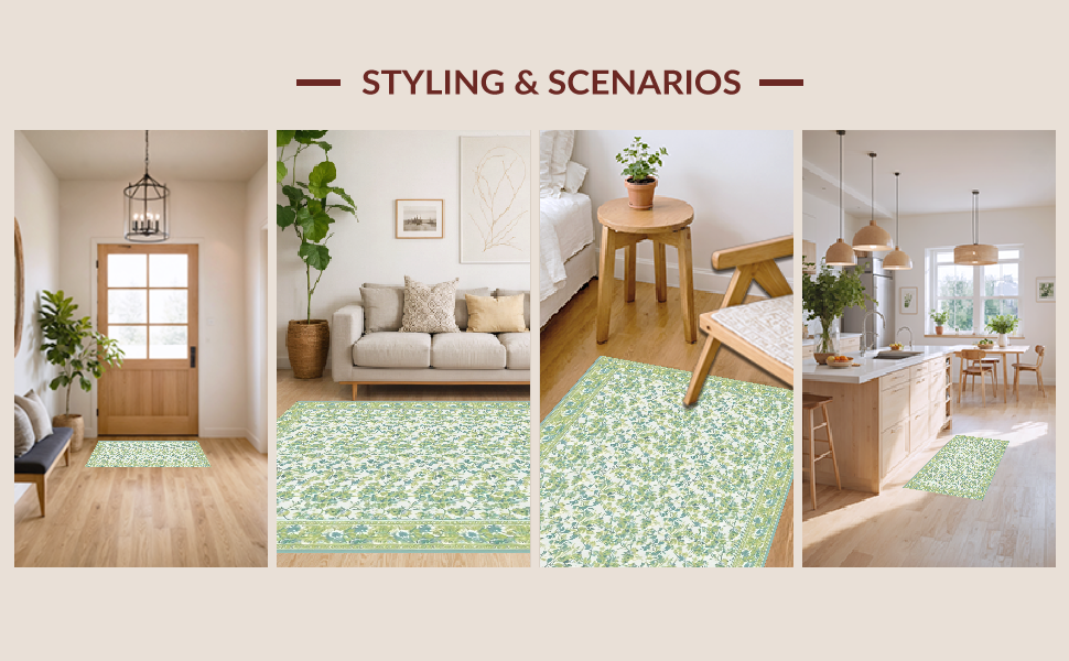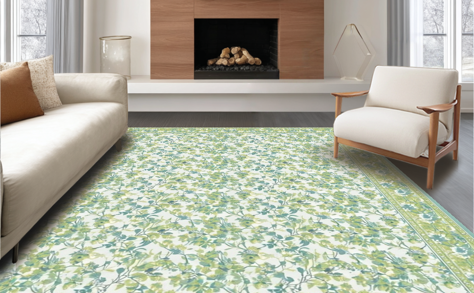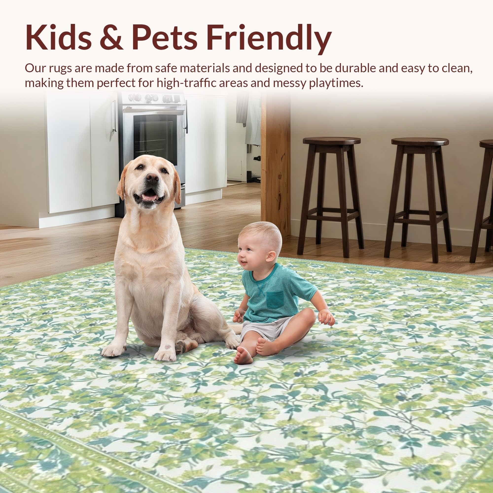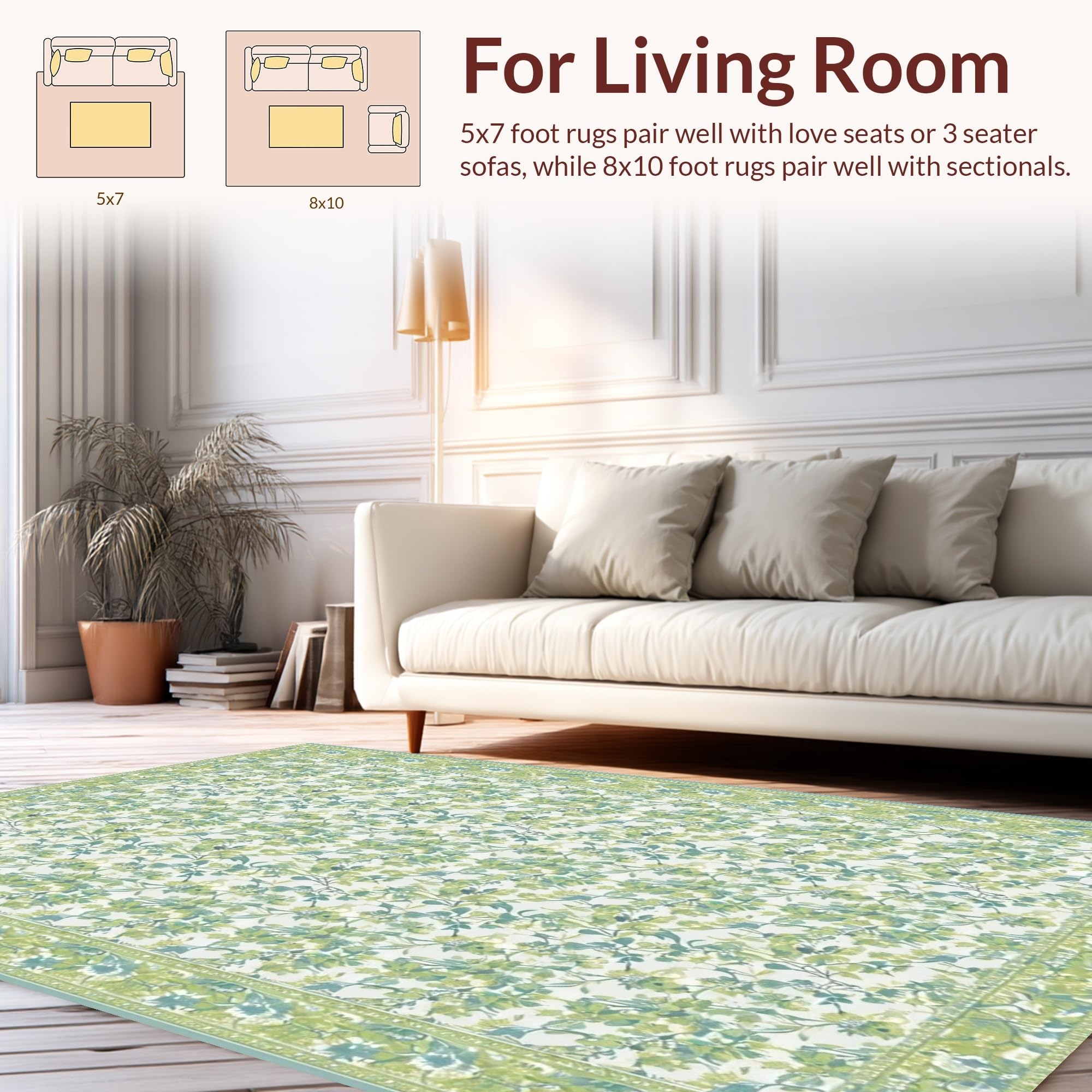 Ultra Soft Area Rug, Non Slip, Stain Resistant, Washable Area Rugs for Living Room, Bedroom, Vibrant Retro Botanical Tapestry Look(Beige) Overview: