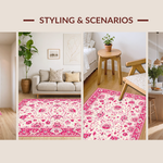 Ultra Soft Area Rug, Non Slip, Stain Resistant, Washable Area Rugs for Living Room, Bedroom, Vibrant Retro Floral Elements(White) Overview: