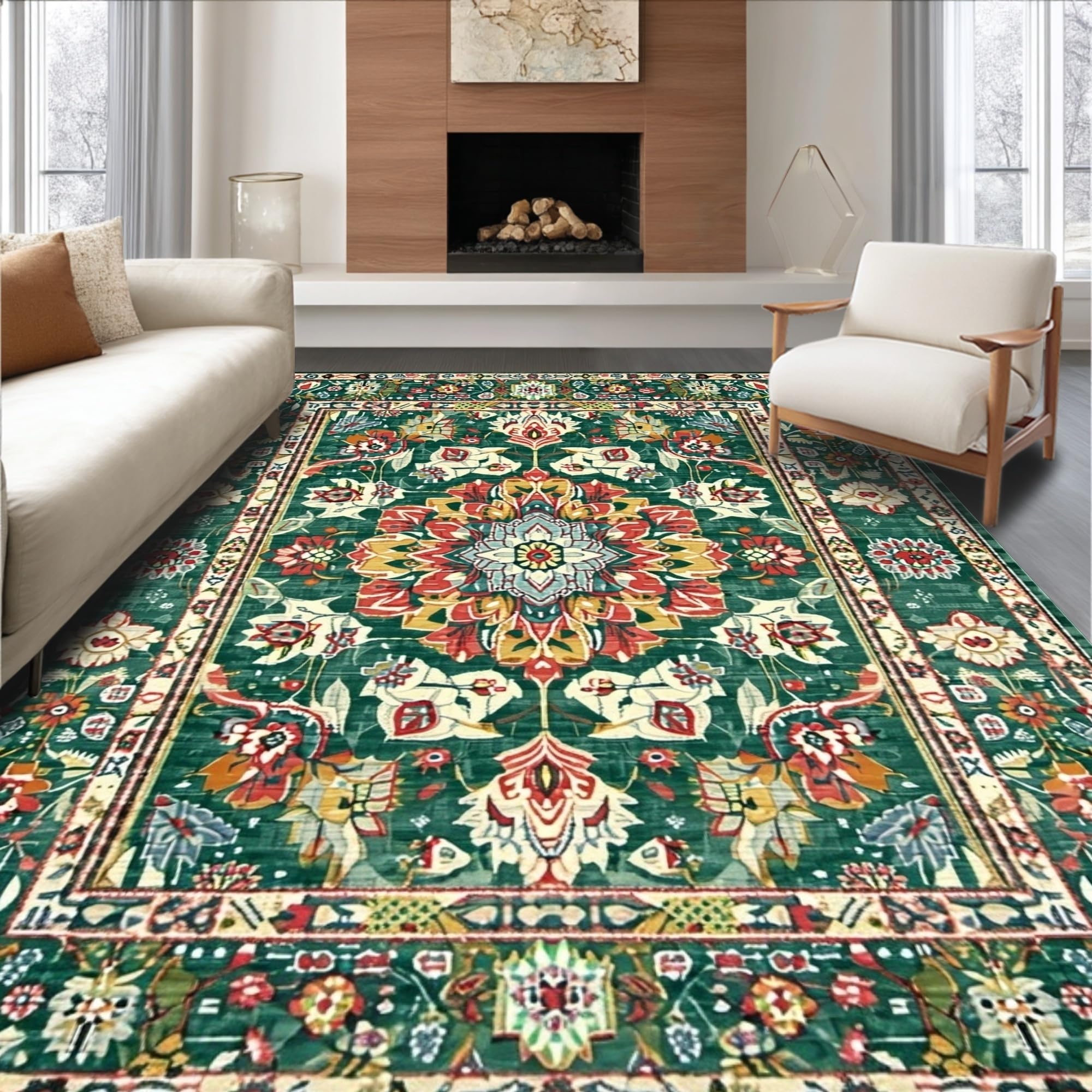 Ultra Soft Area Rug, Non Slip, Stain Resistant, Washable Area Rugs for Living Room, Bedroom, Vibrant Retro Garden Design(Green) Overview: