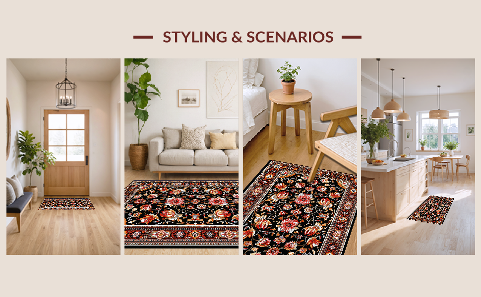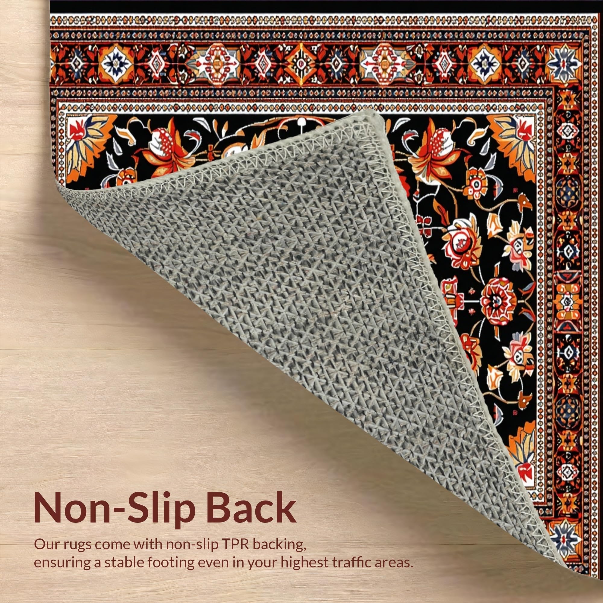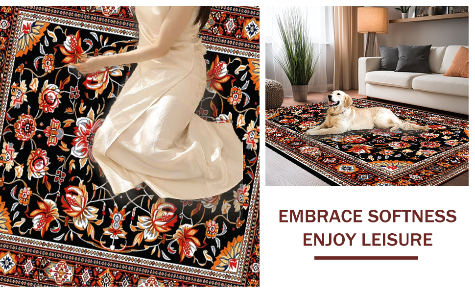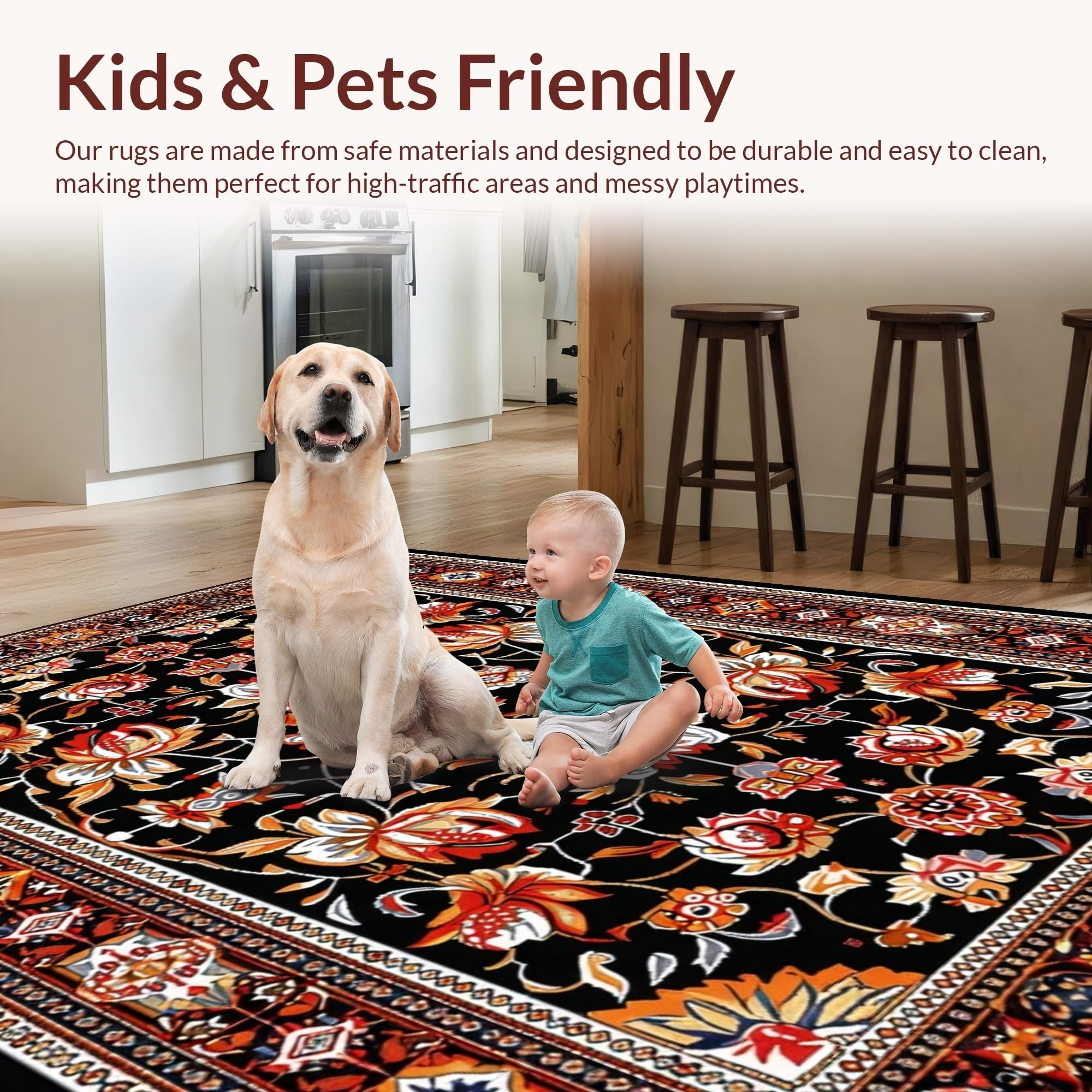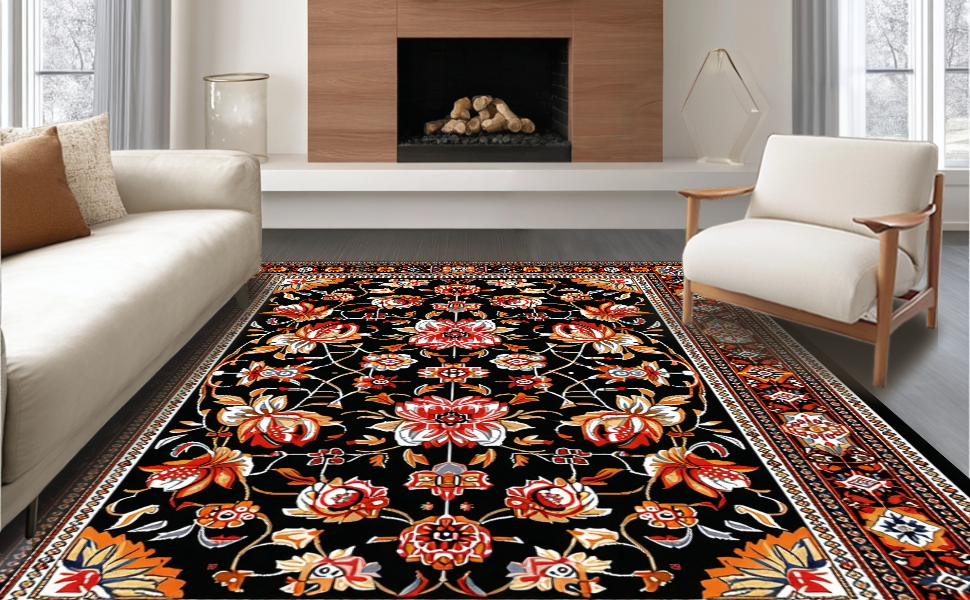 Ultra Soft Area Rug, Non Slip, Stain Resistant, Washable Area Rugs for Living Room, Bedroom, Vibrant Retro Geometric Fusion(Black) Overview: