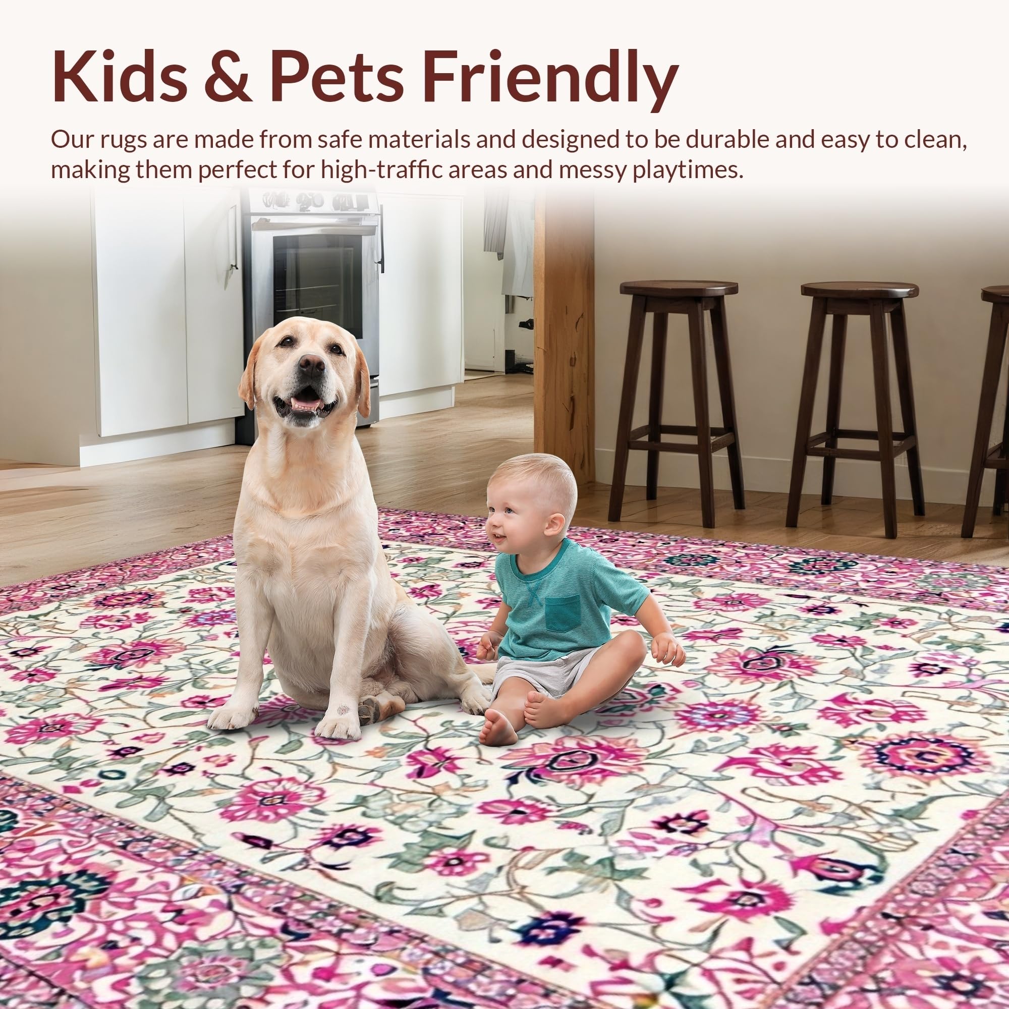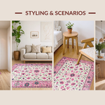 Ultra Soft Area Rug, Non Slip, Stain Resistant, Washable Area Rugs for Living Room, Bedroom, Vibrant Retro Linear Patterns(Ivory) Overview: