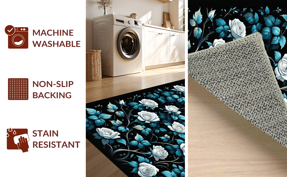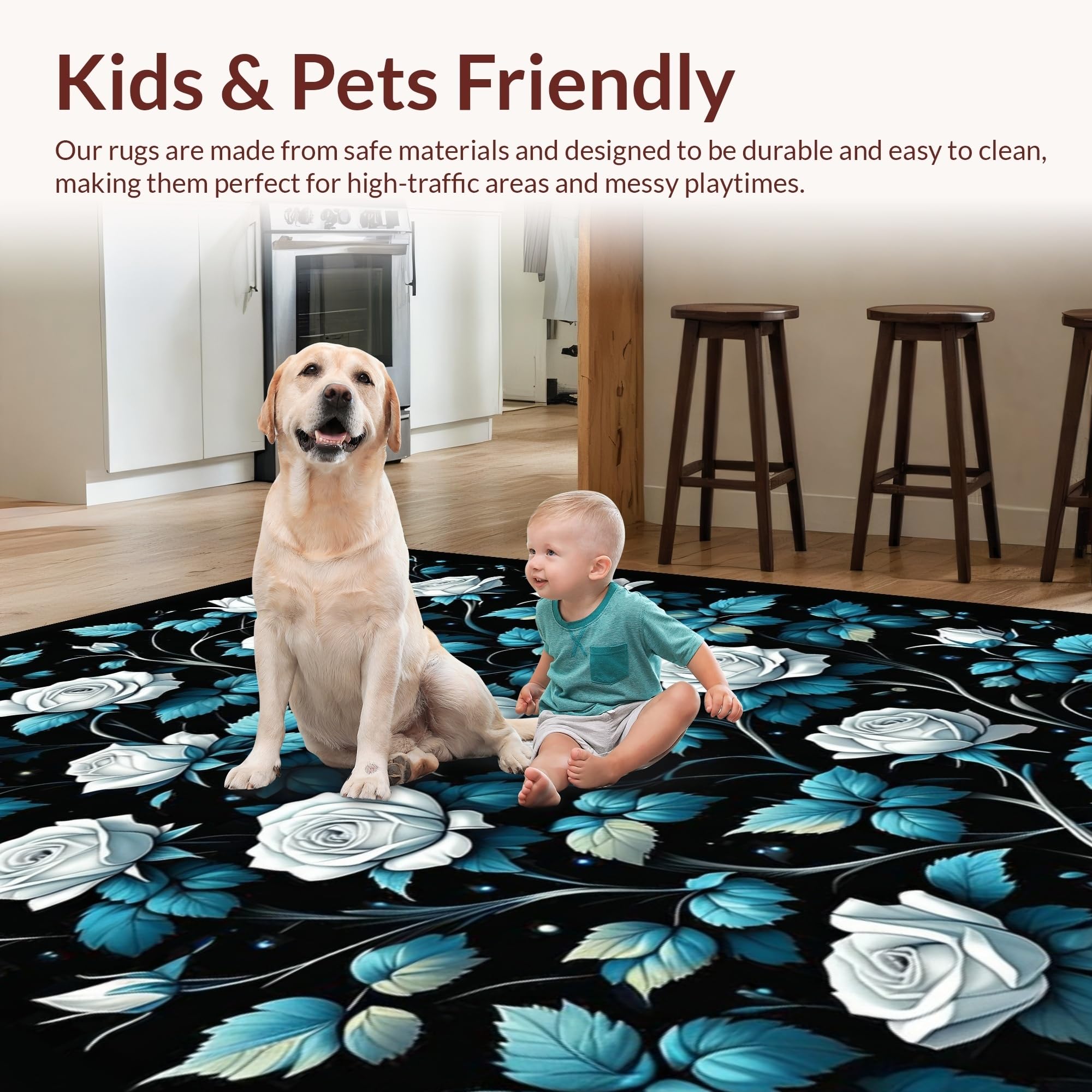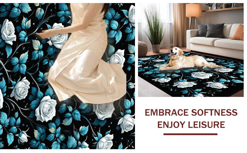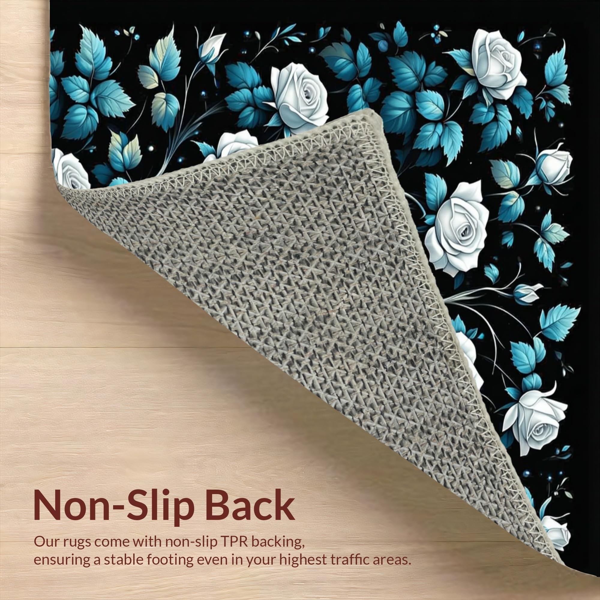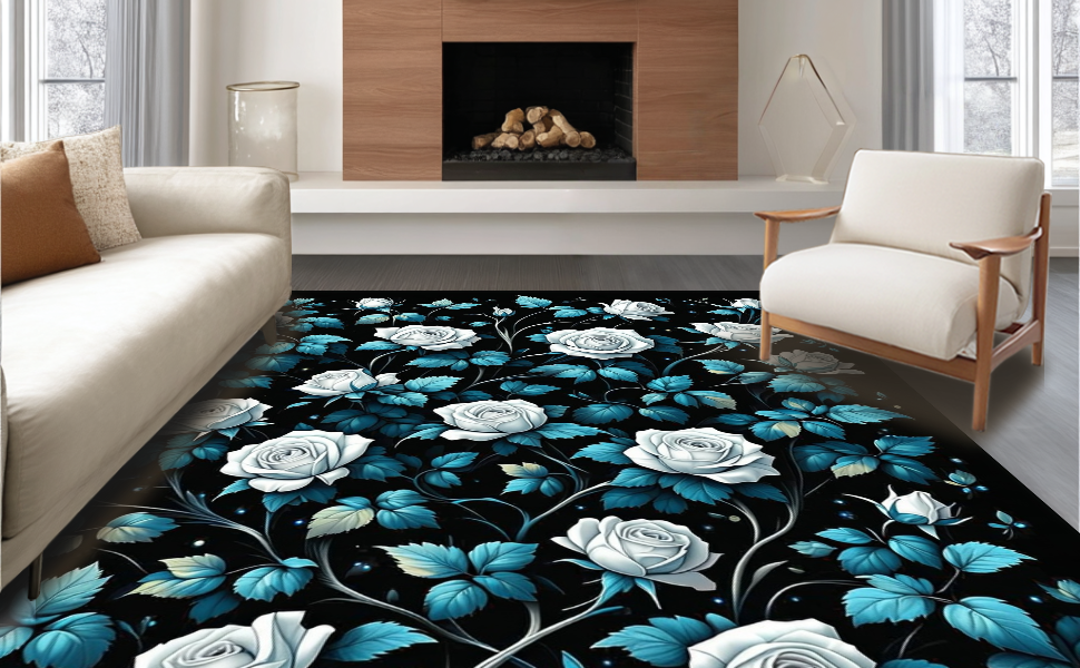 Ultra Soft Area Rug, Non Slip, Stain Resistant, Washable Area Rugs for Living Room, Bedroom, Vibrant Romantic Blossom Aesthetic(Blue) Overview: