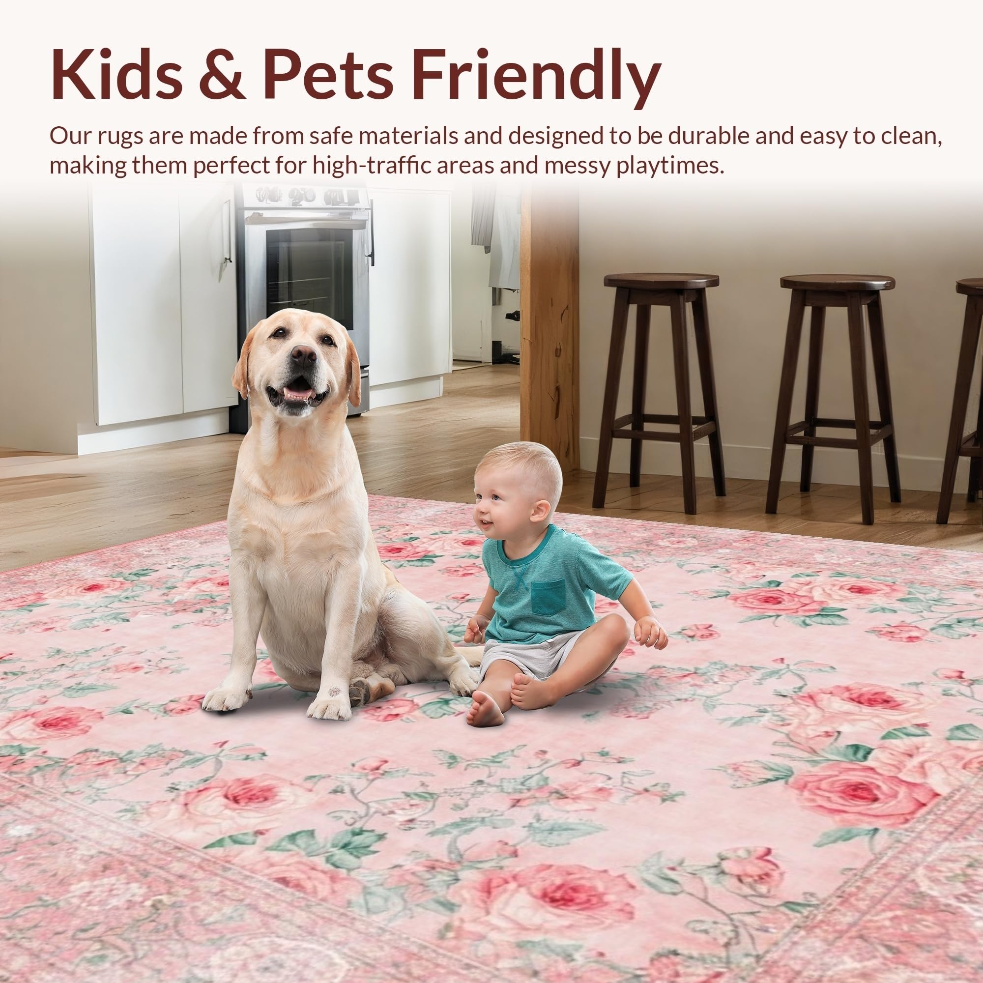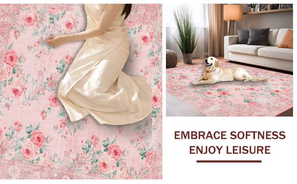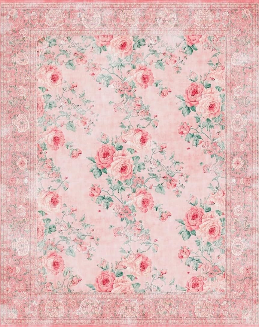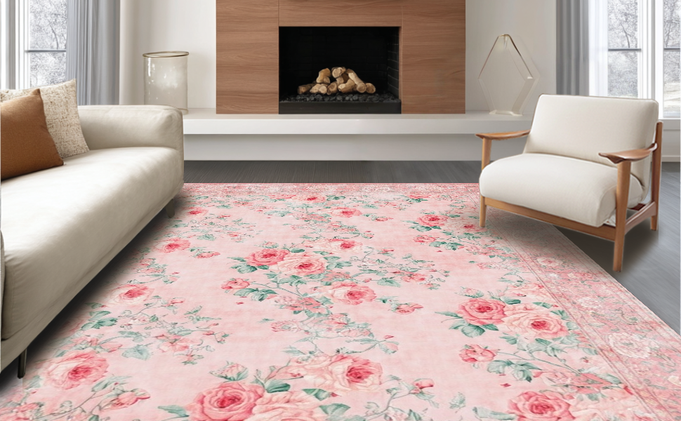 Ultra Soft Area Rug, Non Slip, Stain Resistant, Washable Area Rugs for Living Room, Bedroom, Vibrant Romantic Garden Design(Pink) Overview: