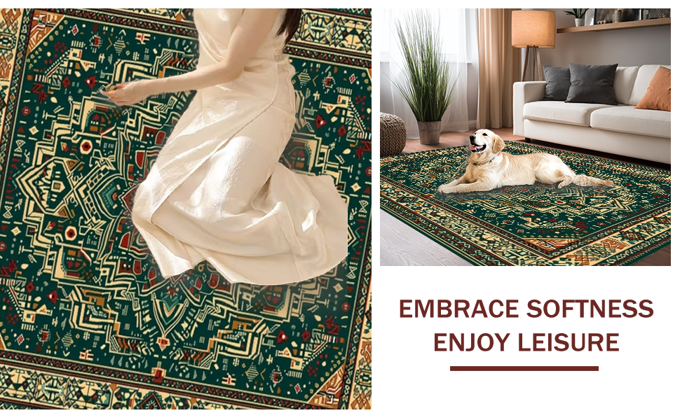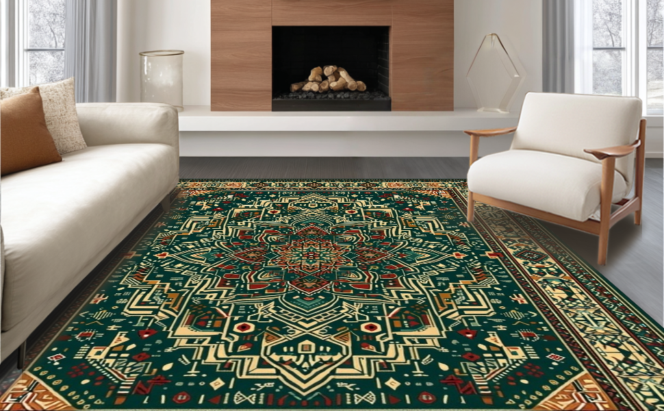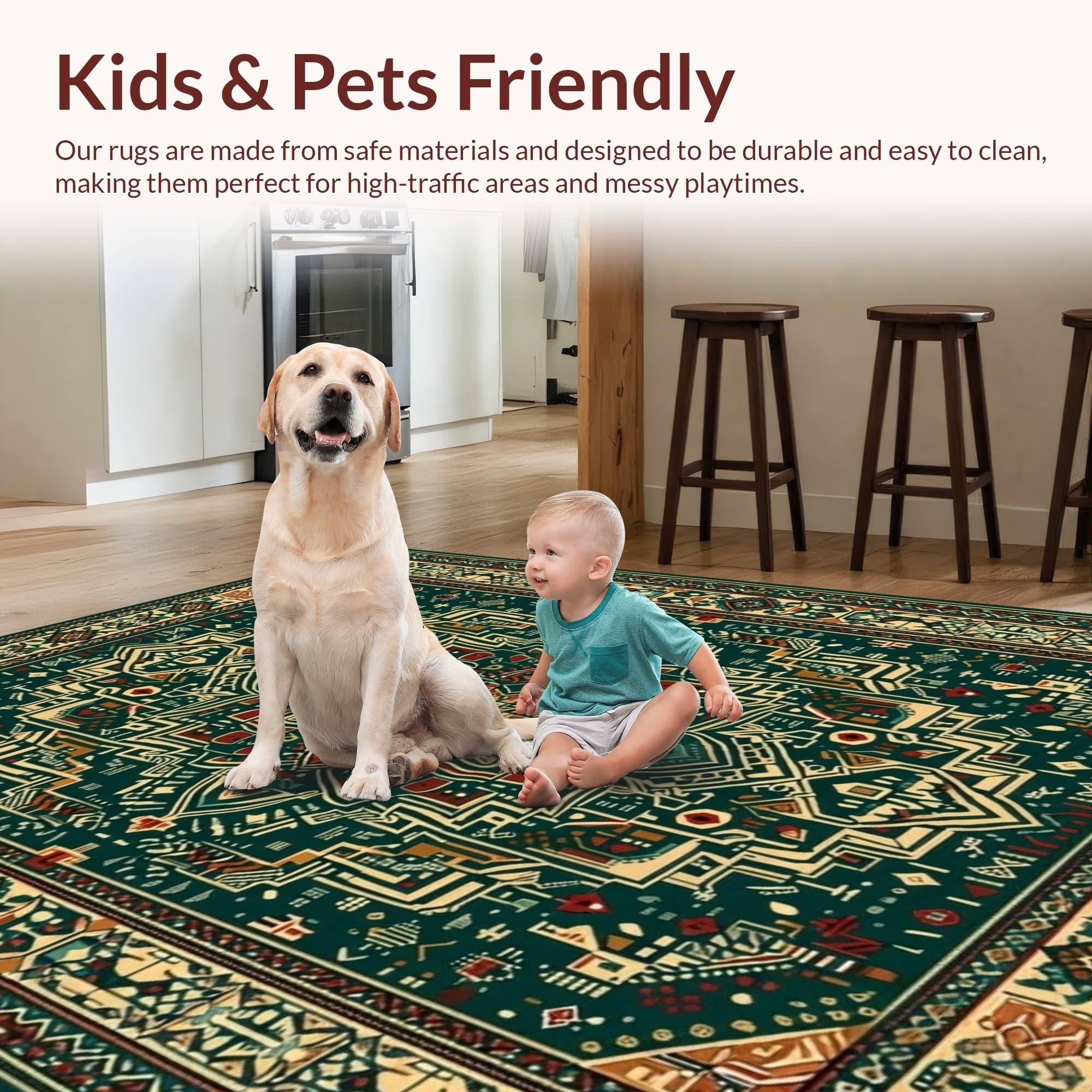 Ultra Soft Area Rug, Non Slip, Stain Resistant, Washable Area Rugs for Living Room, Bedroom, Vibrant Rustic Linear Detailing(Green) Overview: