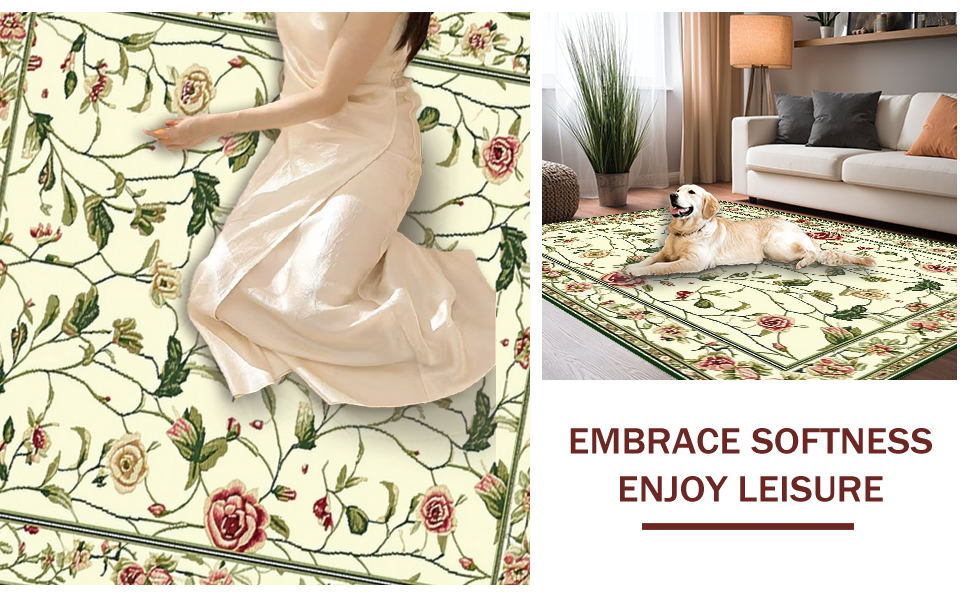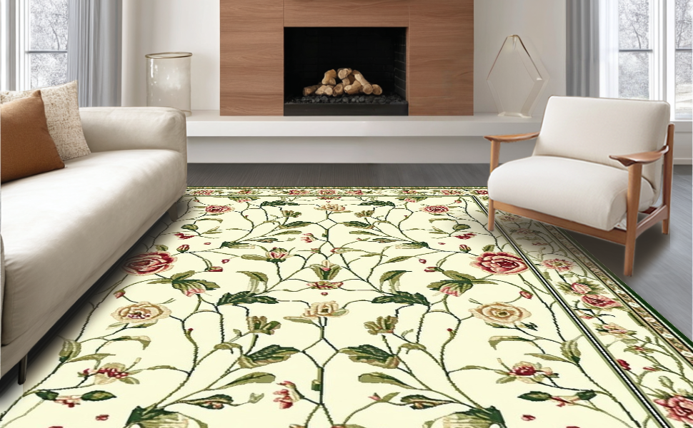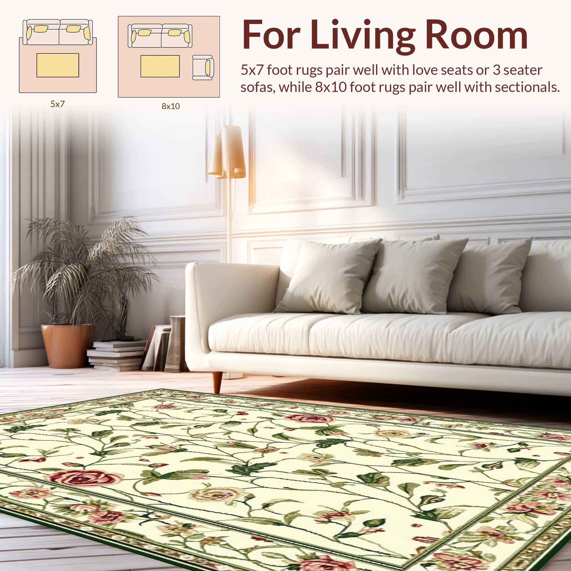 Ultra Soft Area Rug, Non Slip, Stain Resistant, Washable Area Rugs for Living Room, Bedroom, Vibrant Seasonal Petal Design(Beige) Overview: