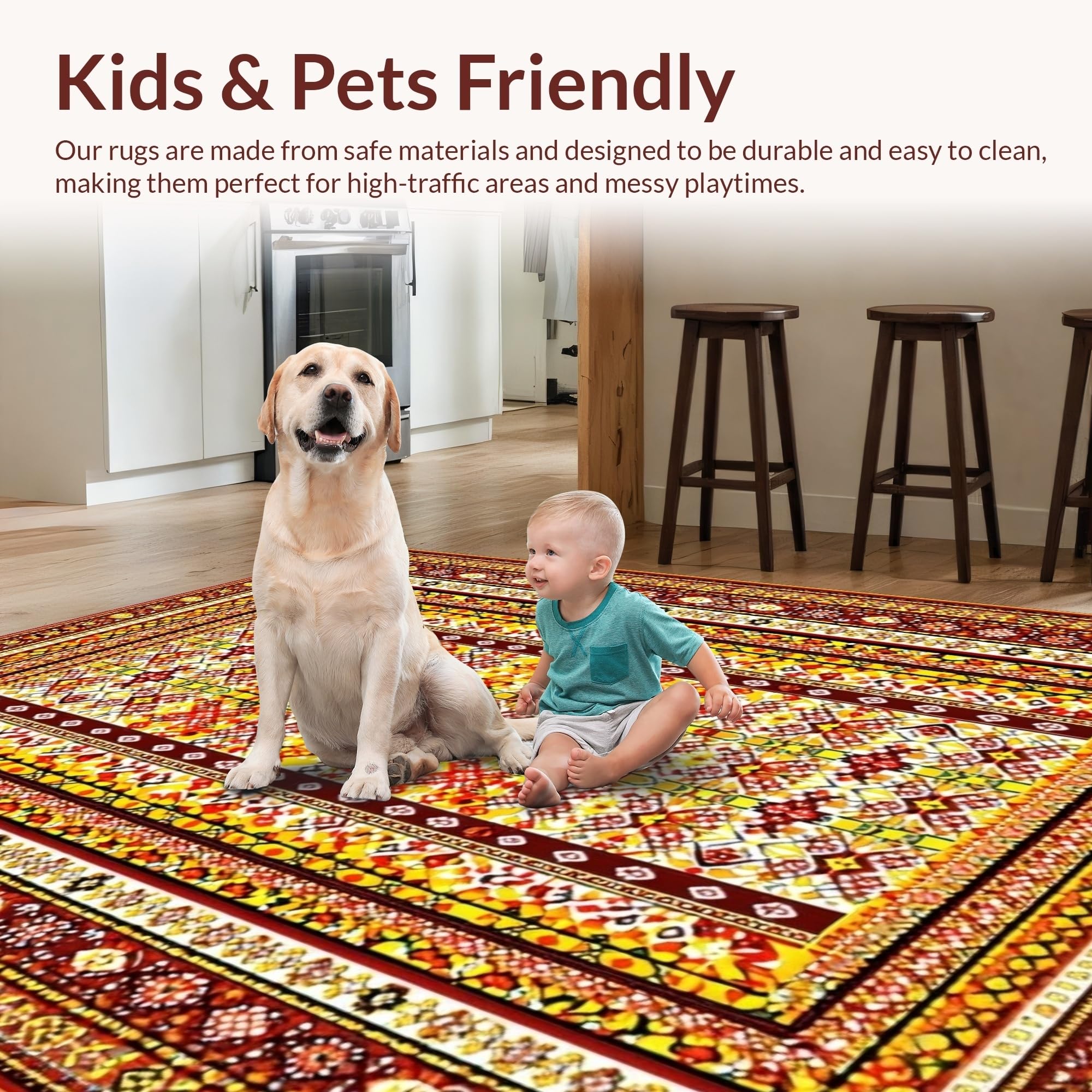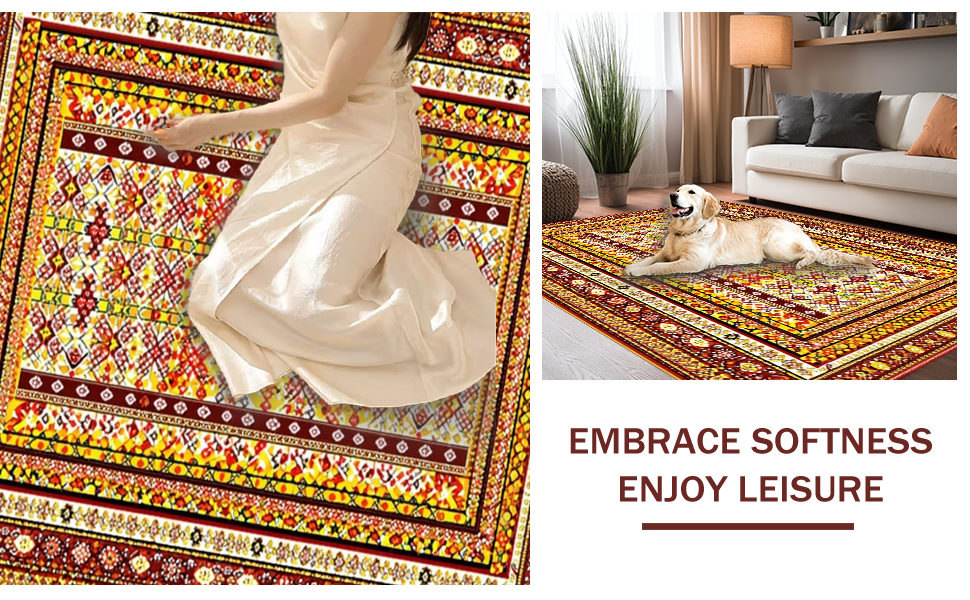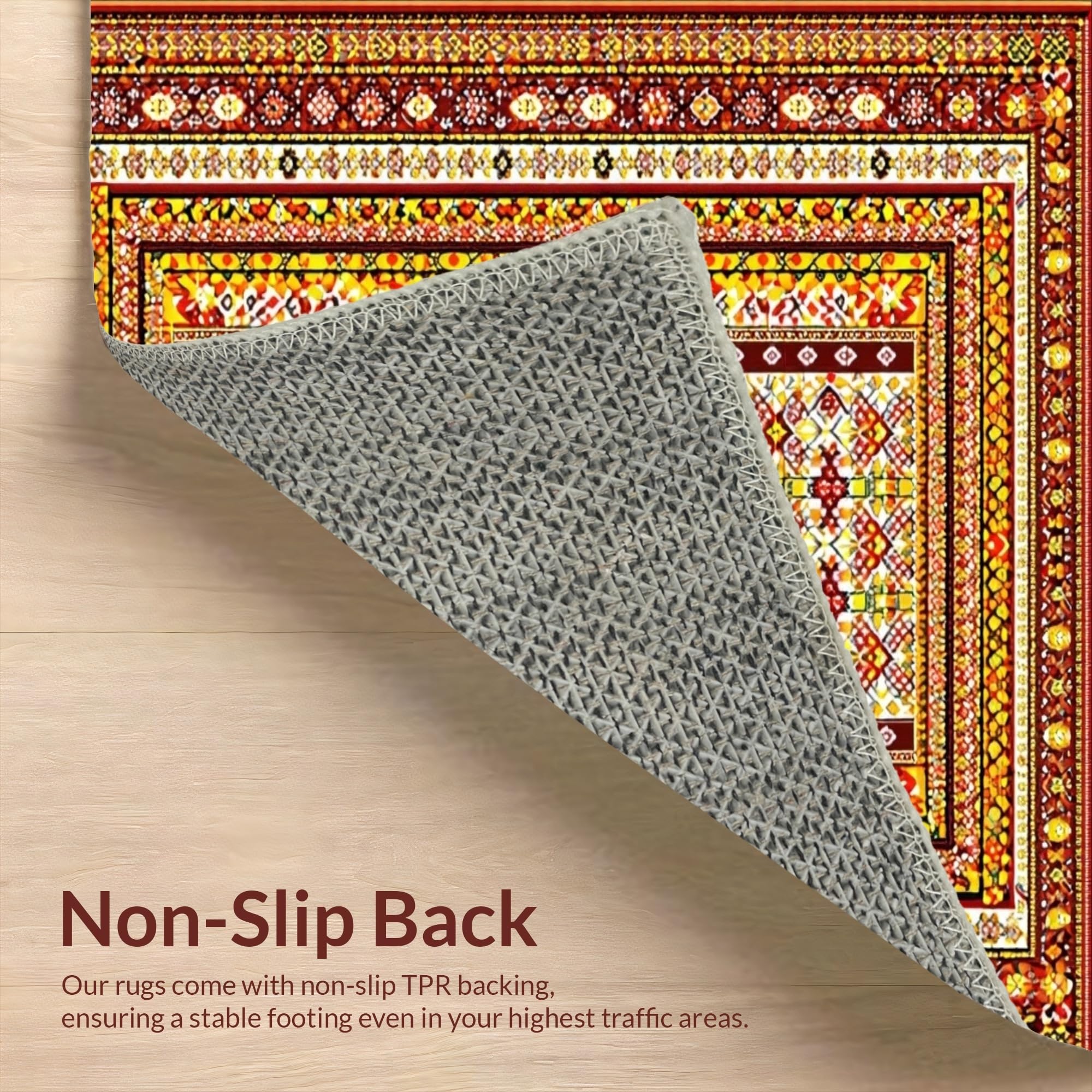 Ultra Soft Area Rug, Non Slip, Stain Resistant, Washable Area Rugs for Living Room, Bedroom, Vibrant Seasonal Welcome Design(Red) Overview: