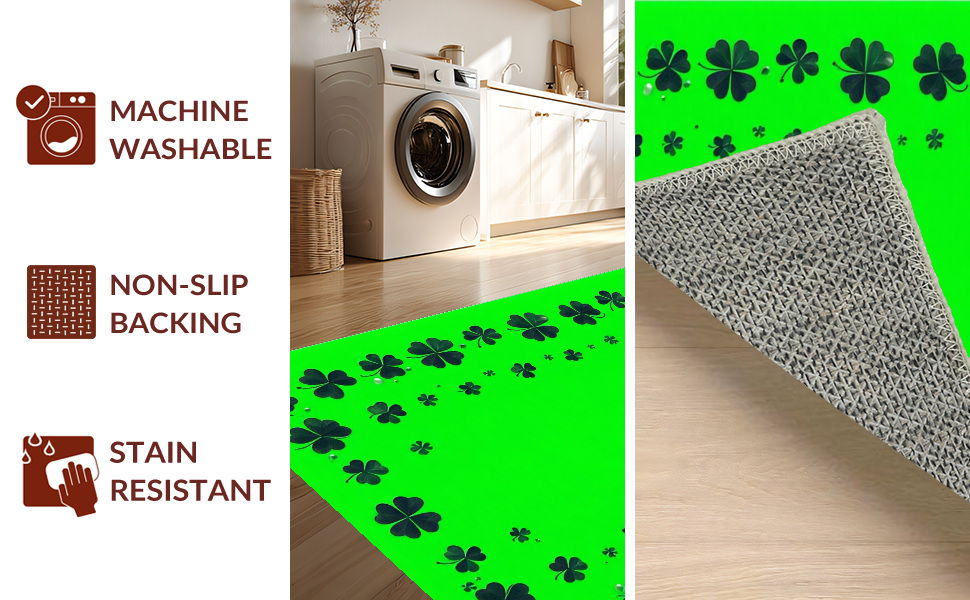 Ultra Soft Area Rug, Non Slip, Stain Resistant, Washable Area Rugs for Living Room, Bedroom, Vibrant Shamrock Patterned Delight(Green) Overview: