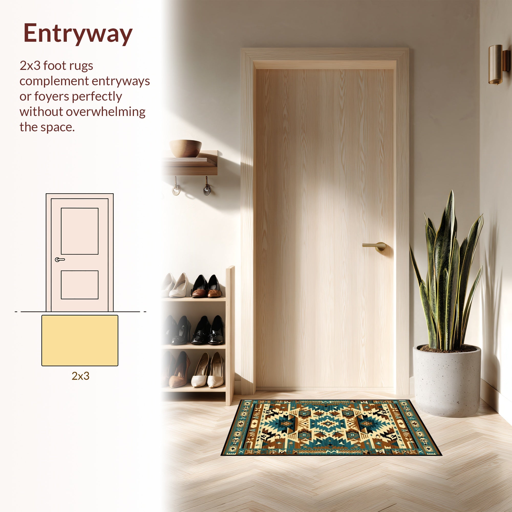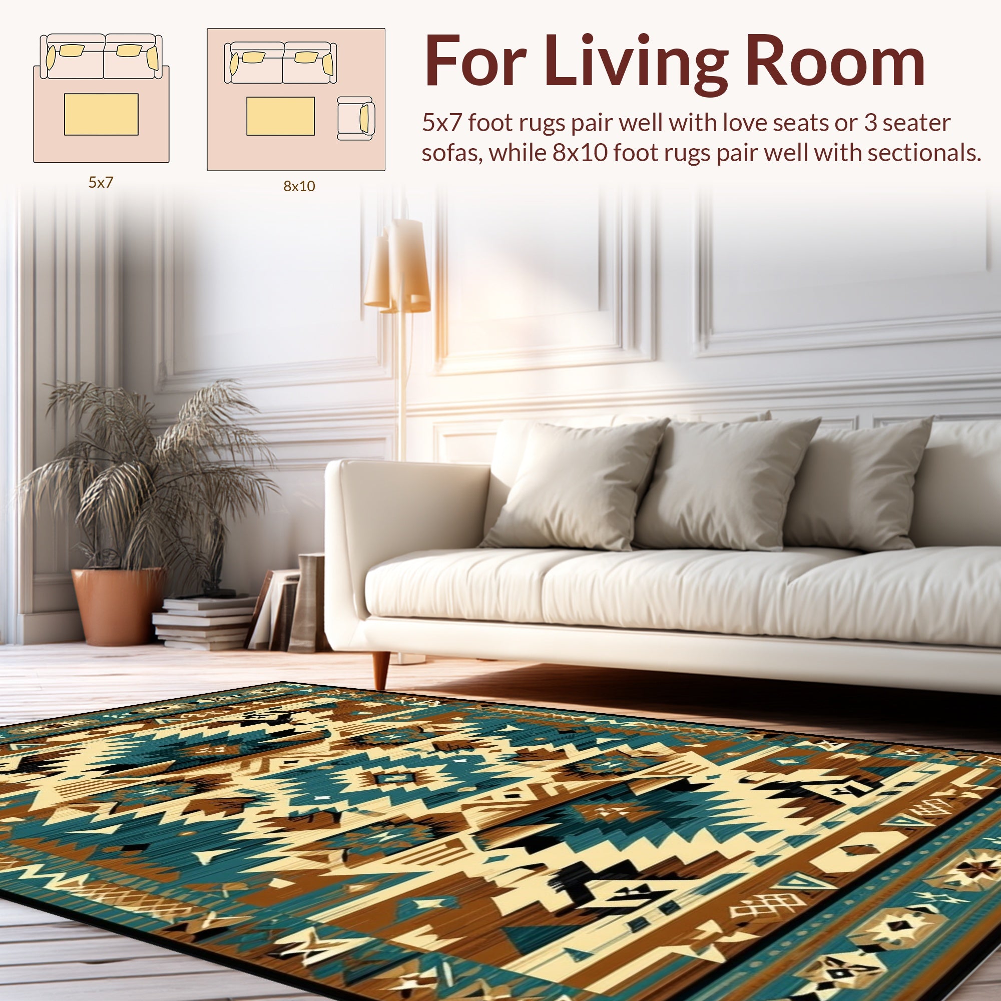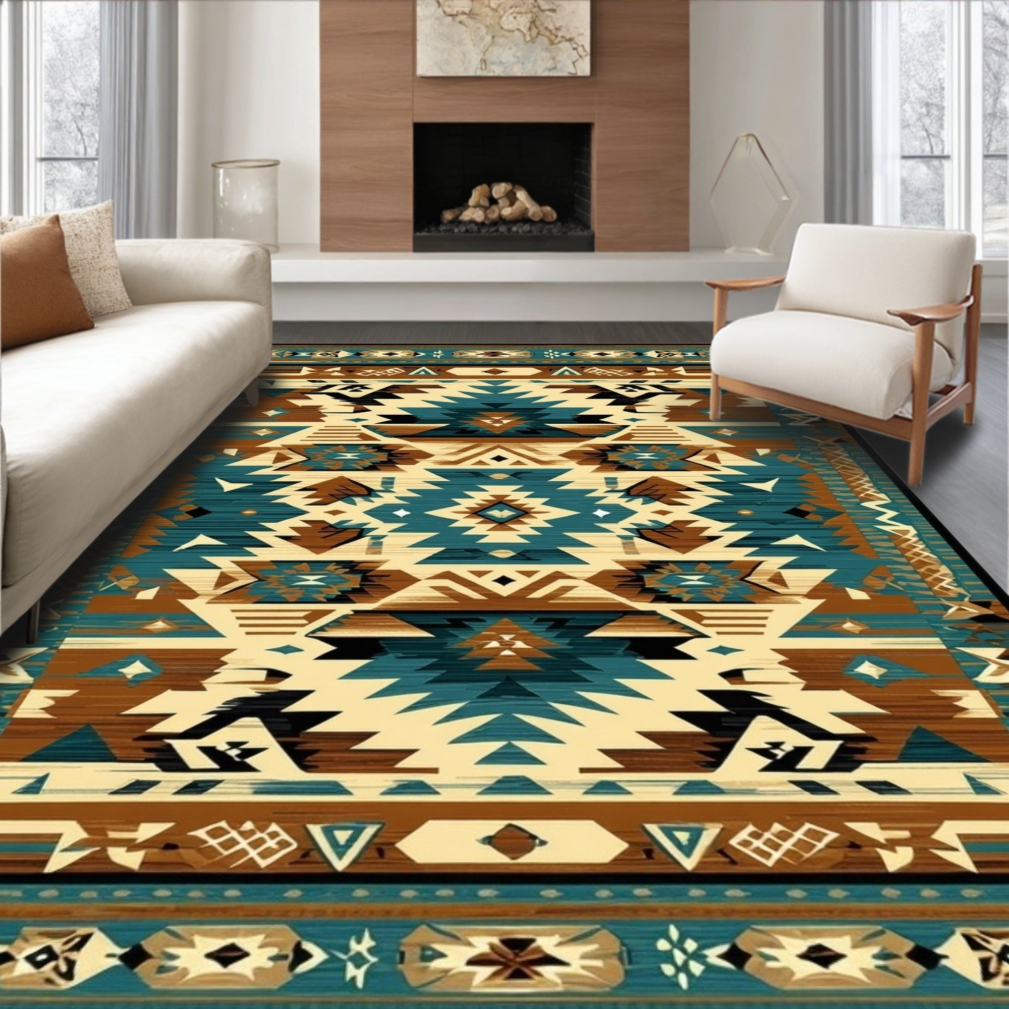 Flatwoven High Traffic Area Rug, Vibrant Southwestern Geometric Artwork, Non Slip, Stain Resistant, Washable Area Rugs for Living Room, Bedroom (Brown) Overview: