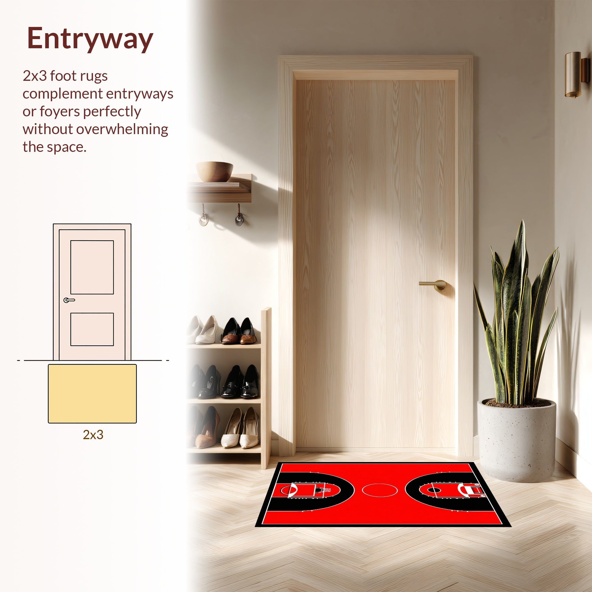 Flatwoven High Traffic Area Rug, Vibrant Sporty Abstract Aesthetic, Non Slip, Stain Resistant, Washable Area Rugs for Living Room, Bedroom (Red) Overview: