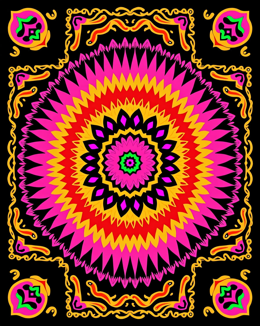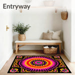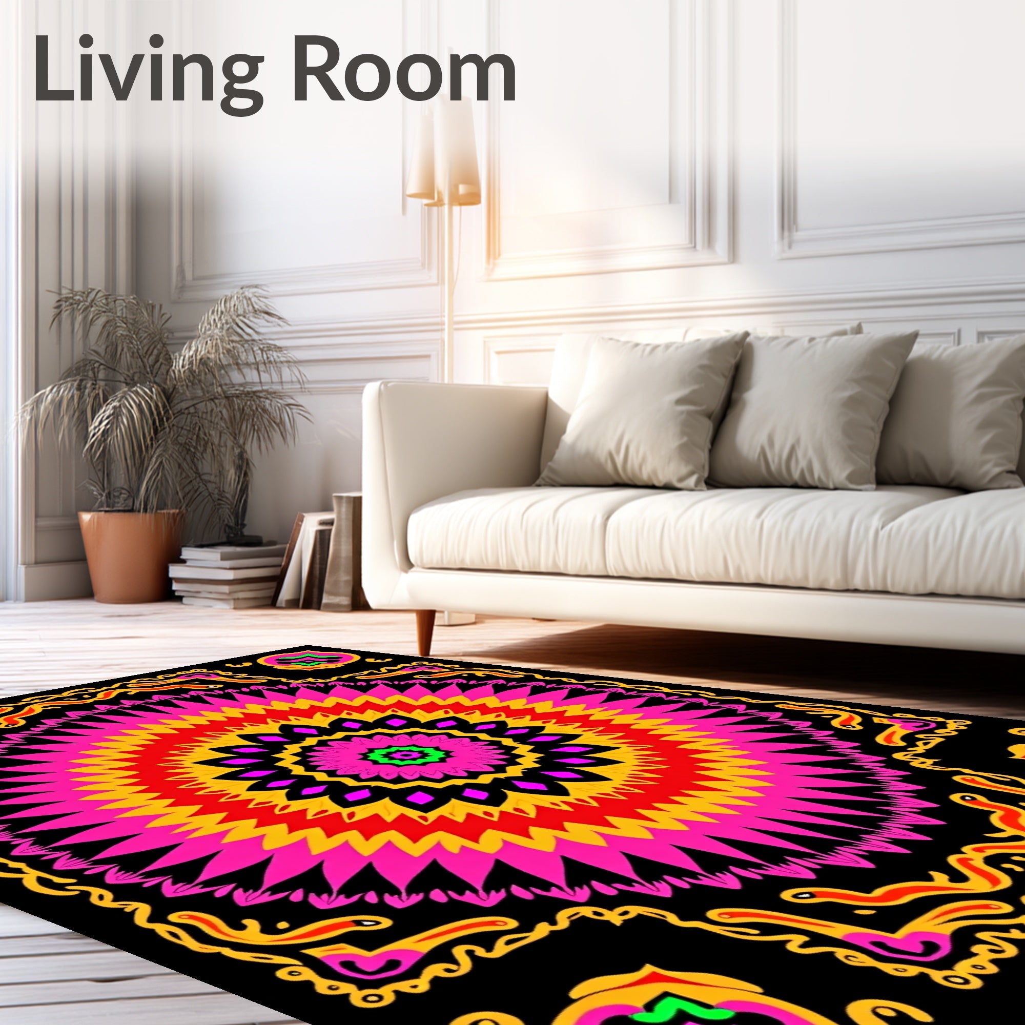 Flatwoven High Traffic Area Rug, Vibrant Starburst, Non Slip, Stain Resistant, Washable Area Rugs for Living Room, Bedroom (Pink) Overview: