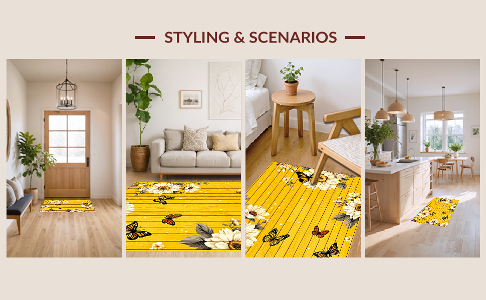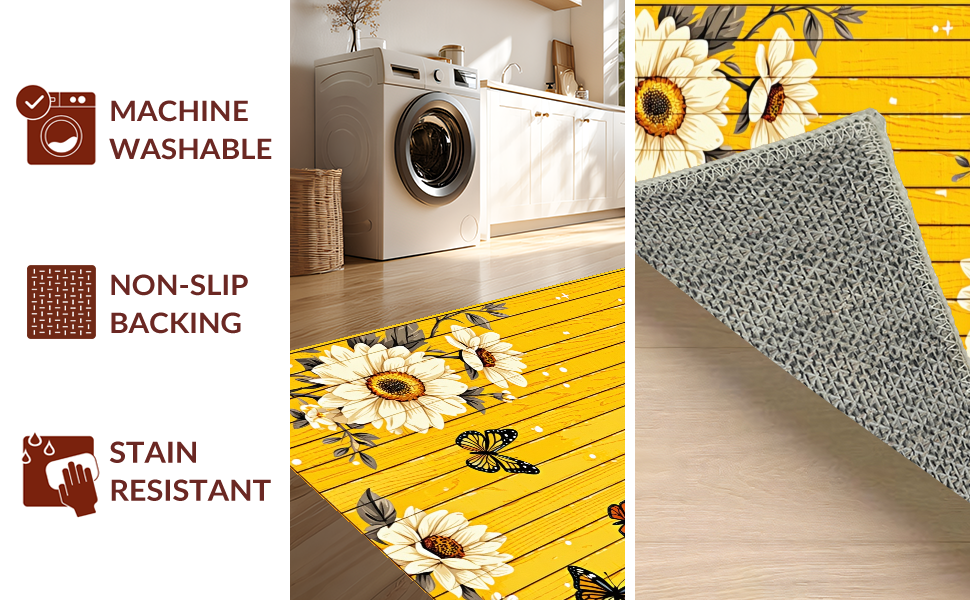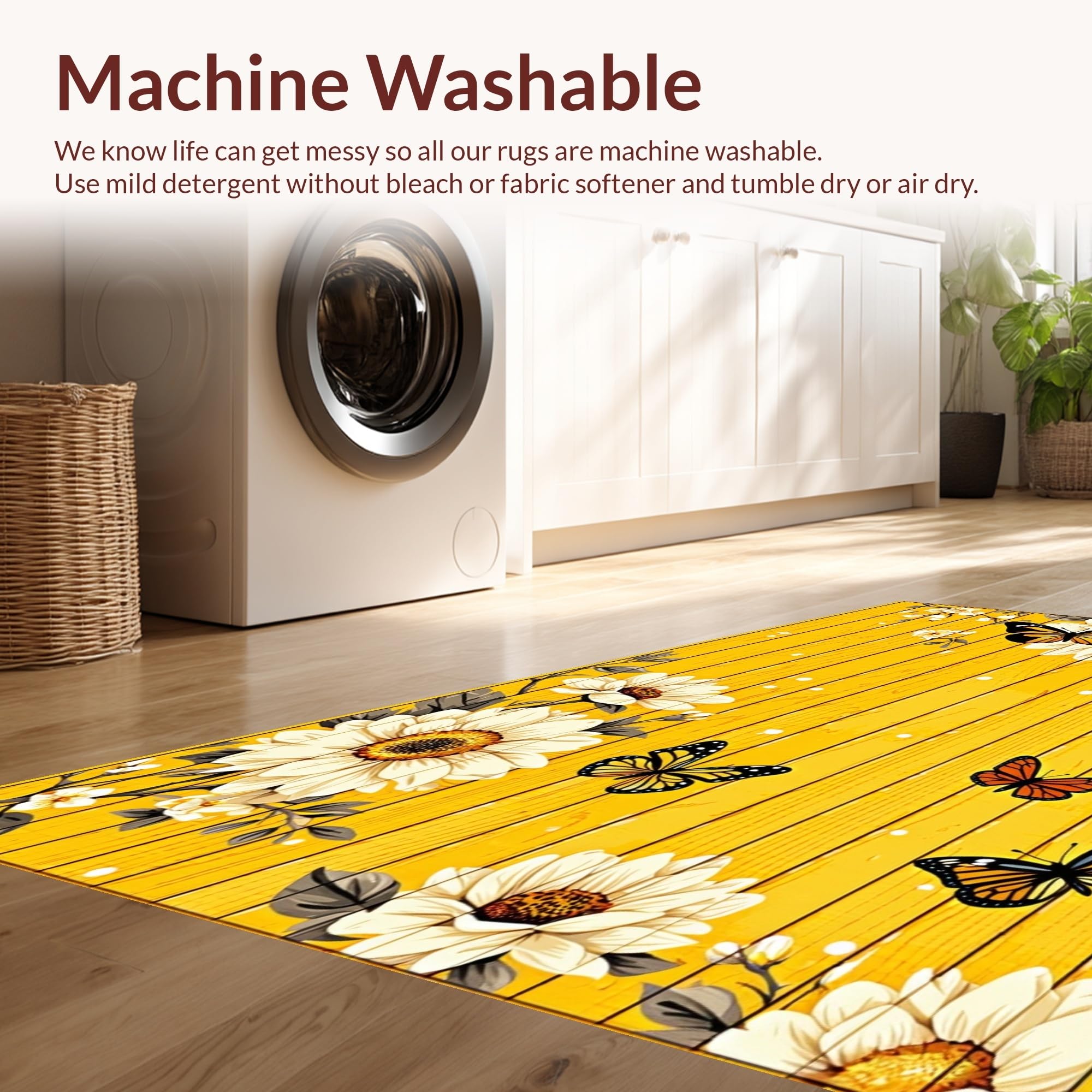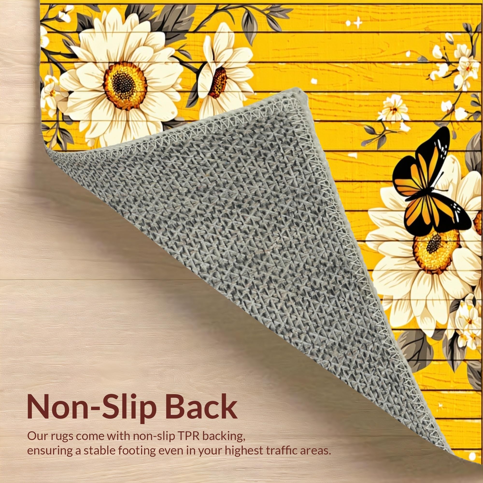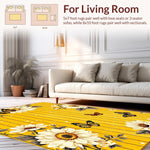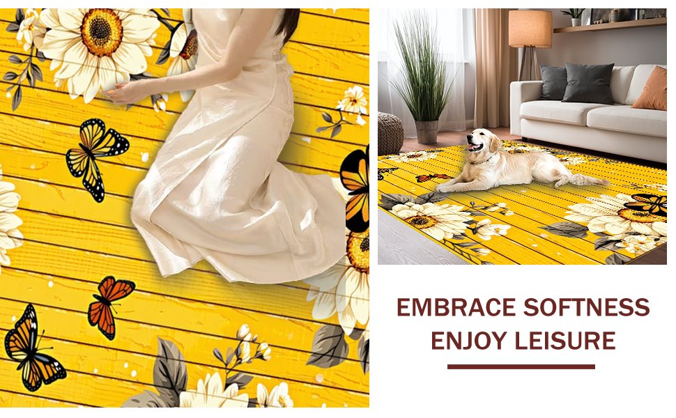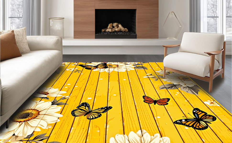 Ultra Soft Area Rug, Non Slip, Stain Resistant, Washable Area Rugs for Living Room, Bedroom, Vibrant Sunflower and Wood Aesthetic(Yellow) Overview: