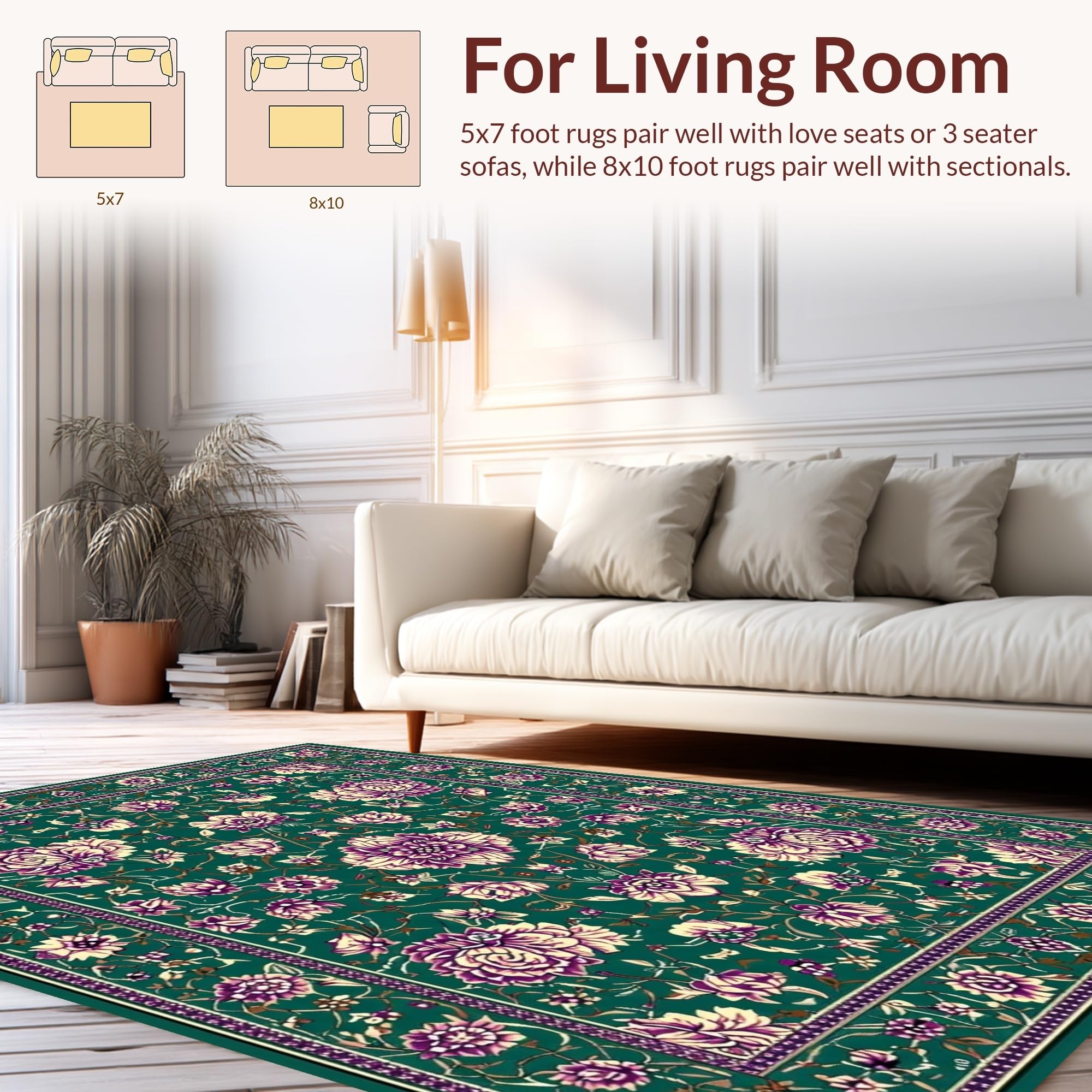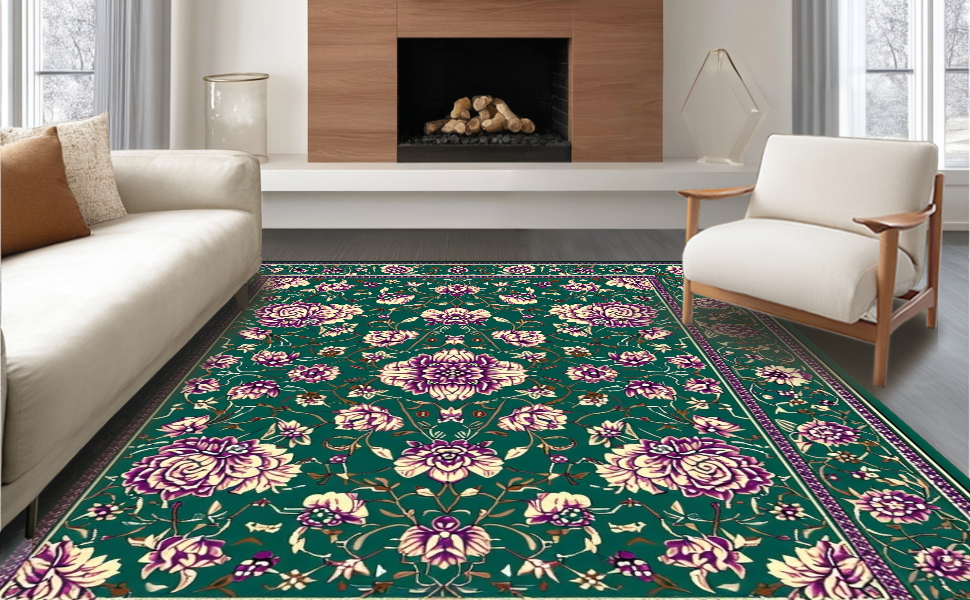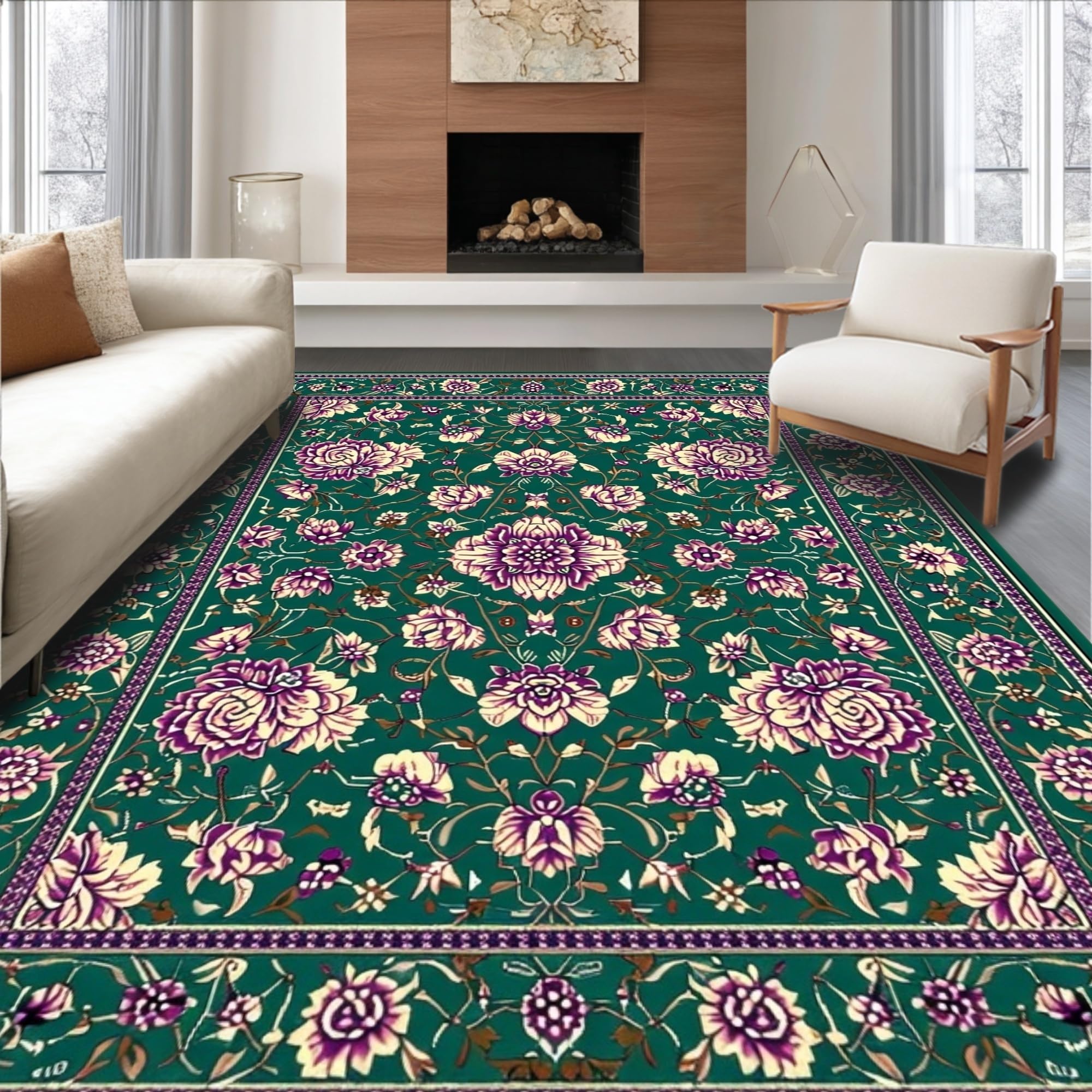 Ultra Soft Area Rug, Non Slip, Stain Resistant, Washable Area Rugs for Living Room, Bedroom, Vibrant Textured Flower Arrangement(Green) Overview: