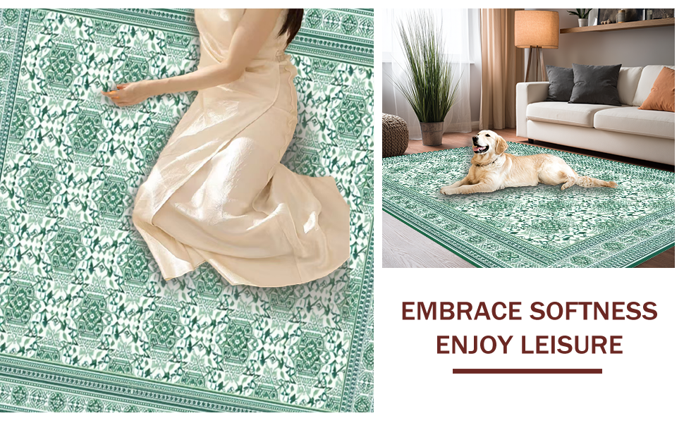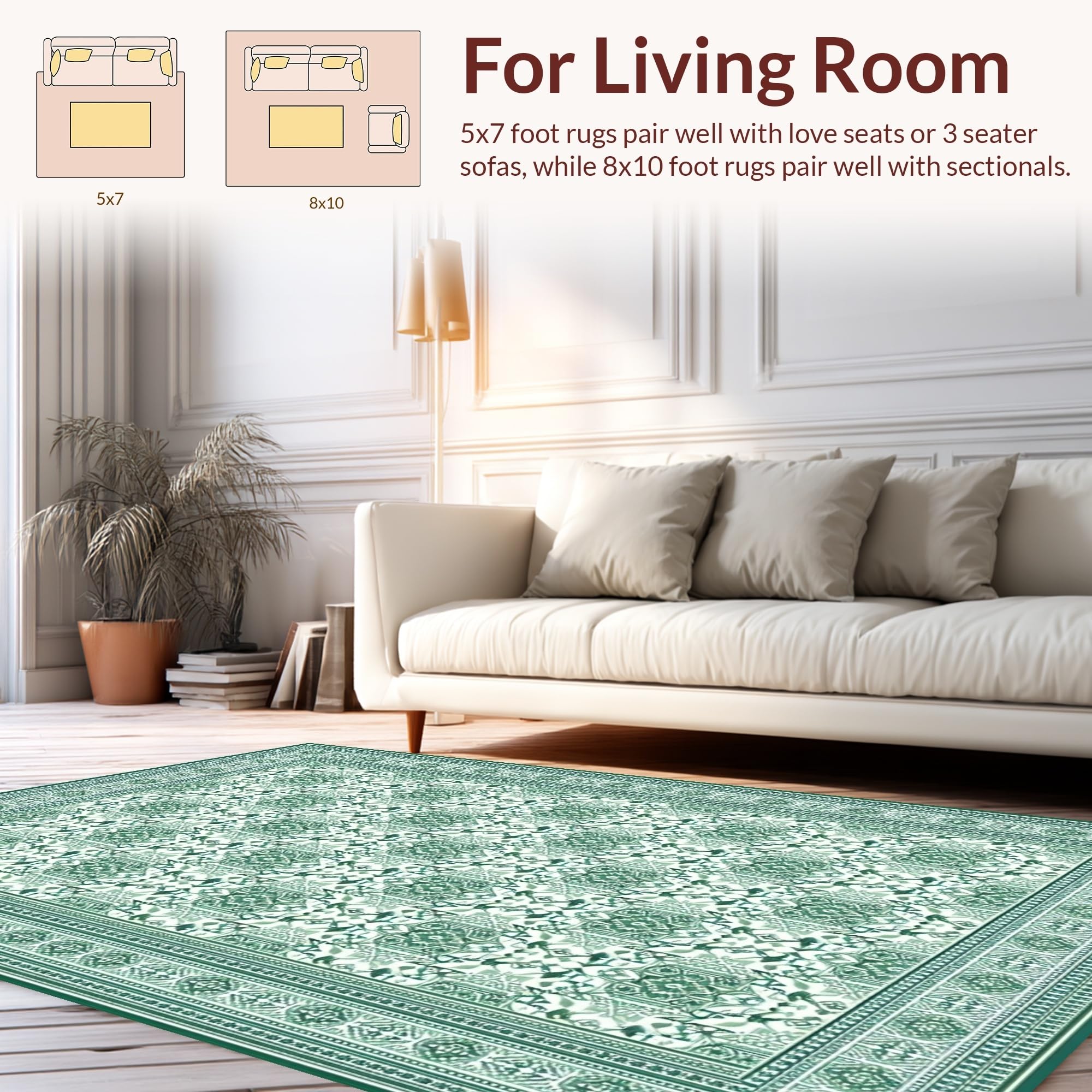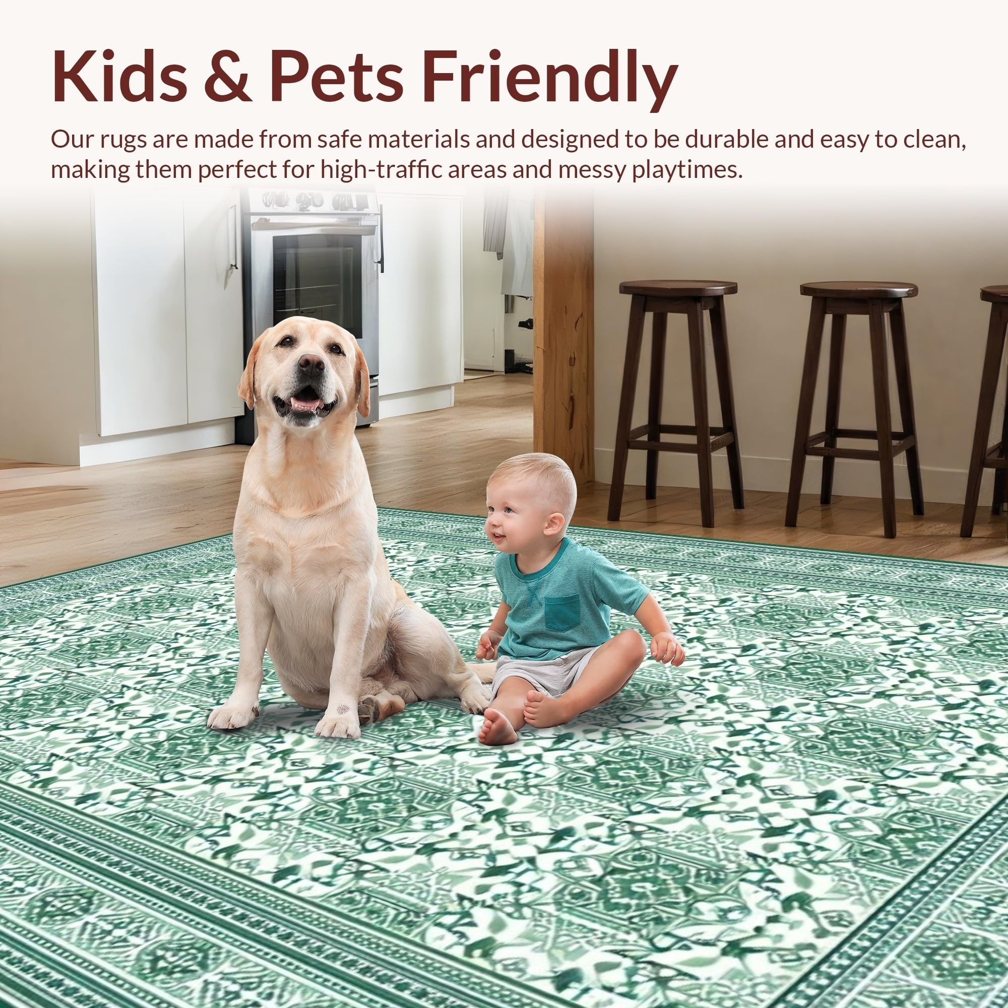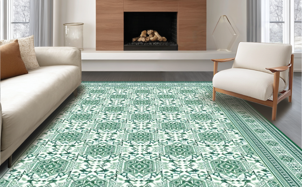 Ultra Soft Area Rug, Non Slip, Stain Resistant, Washable Area Rugs for Living Room, Bedroom, Vibrant Tiled Medallion Pattern(Green) Overview: