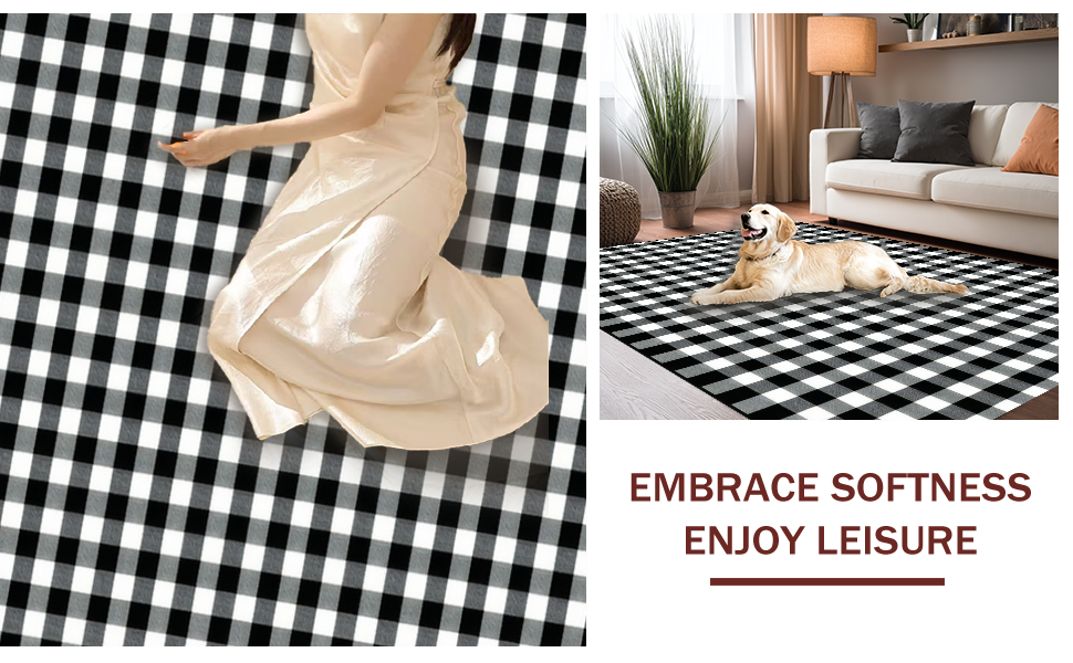 Ultra Soft Area Rug, Non Slip, Stain Resistant, Washable Area Rugs for Living Room, Bedroom, Vibrant Traditional Plaid Visual Harmony(Black) Overview:
