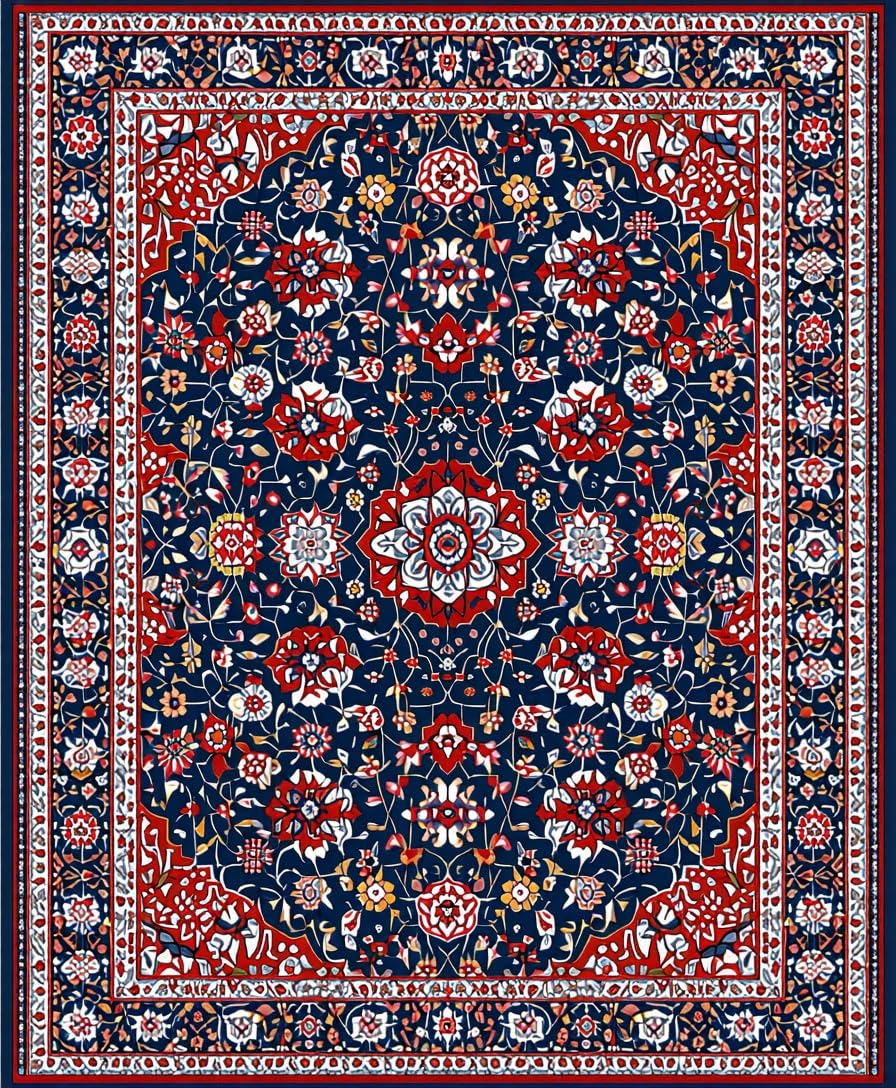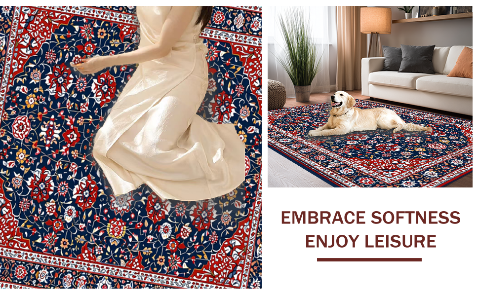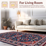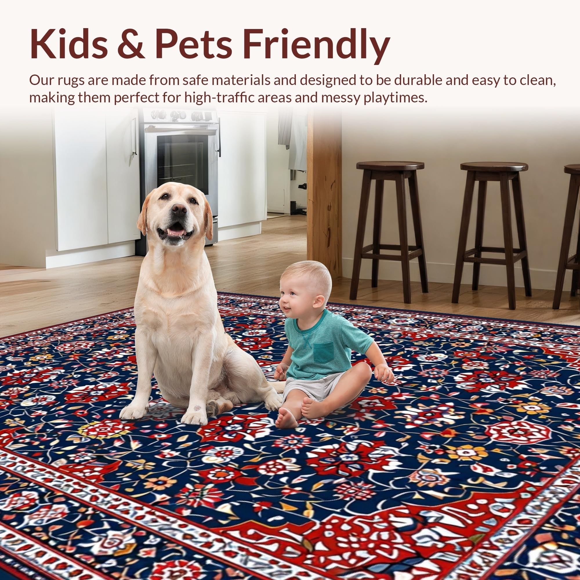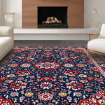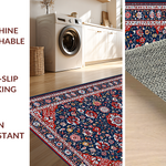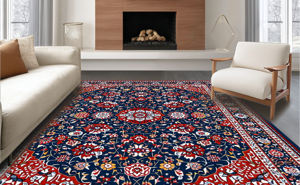 Ultra Soft Area Rug, Non Slip, Stain Resistant, Washable Area Rugs for Living Room, Bedroom, Vibrant Transitional Damask Motif(Blue) Overview: