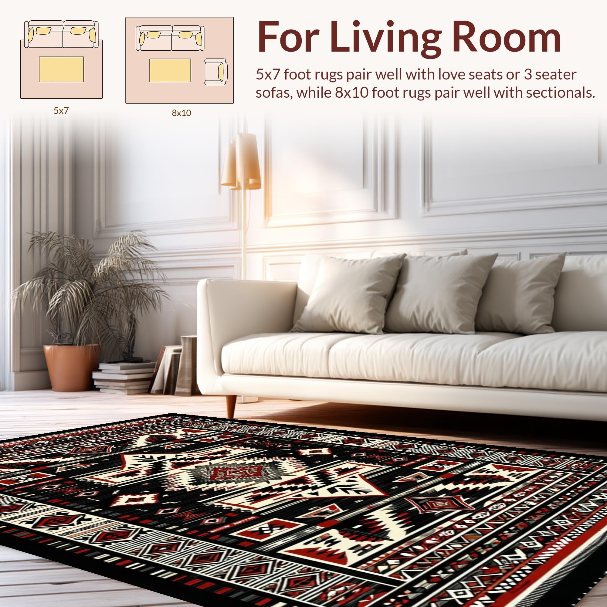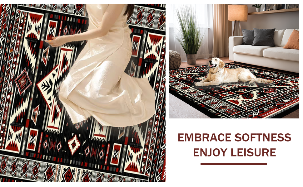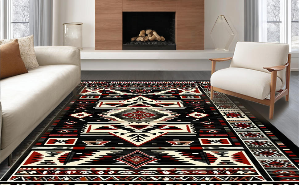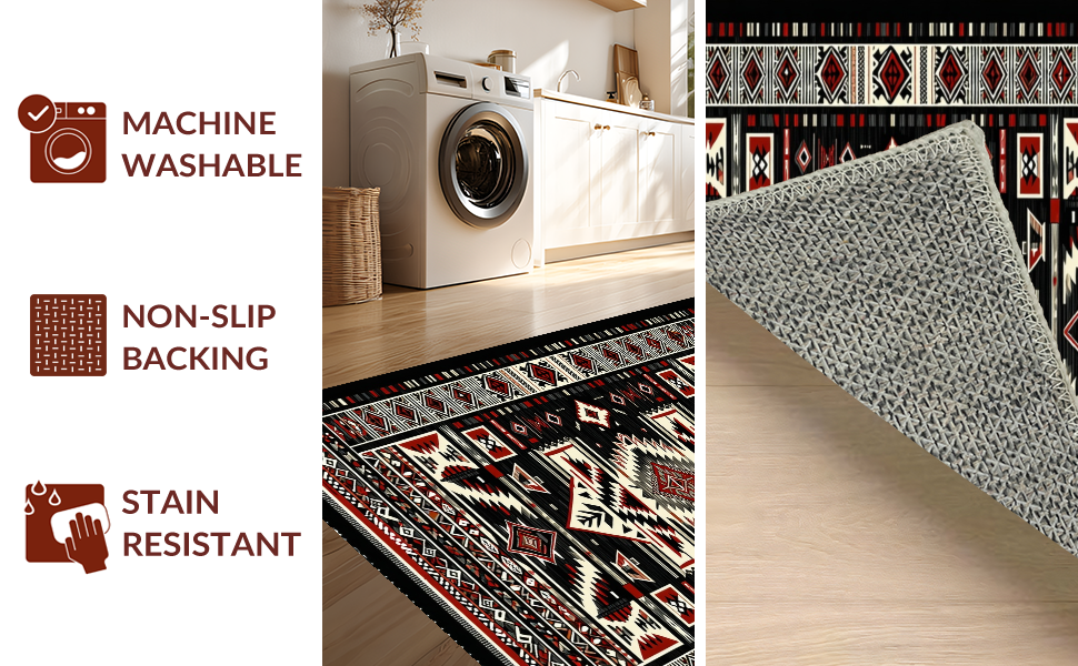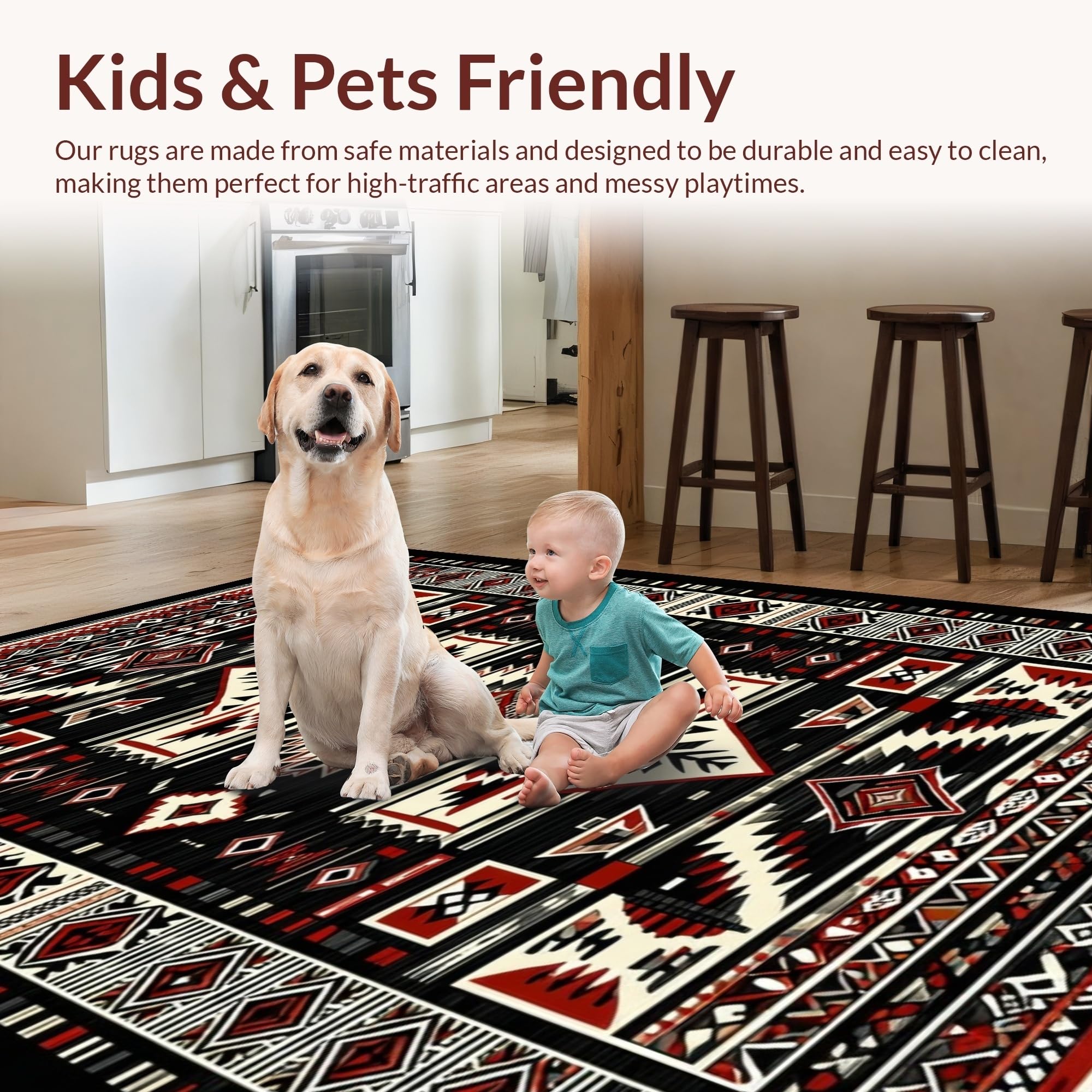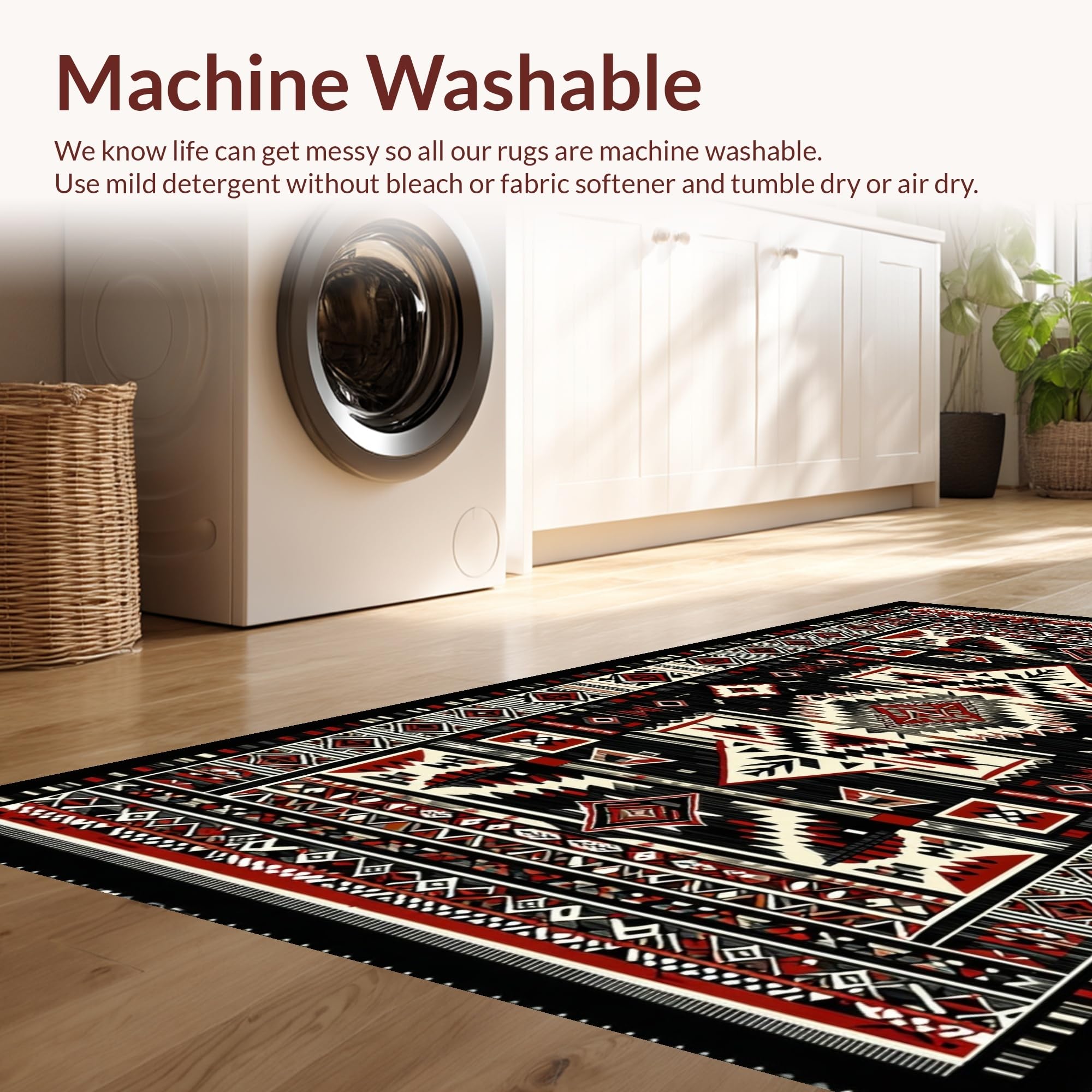 Ultra Soft Area Rug, Non Slip, Stain Resistant, Washable Area Rugs for Living Room, Bedroom, Vibrant Tribal Influence with Contrast(Red) Overview: