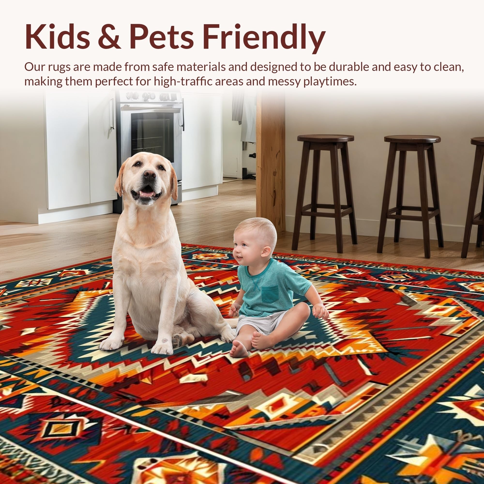 Ultra Soft Area Rug, Non Slip, Stain Resistant, Washable Area Rugs for Living Room, Bedroom, Vibrant Tribal Patterned Artwork(Red) Overview: