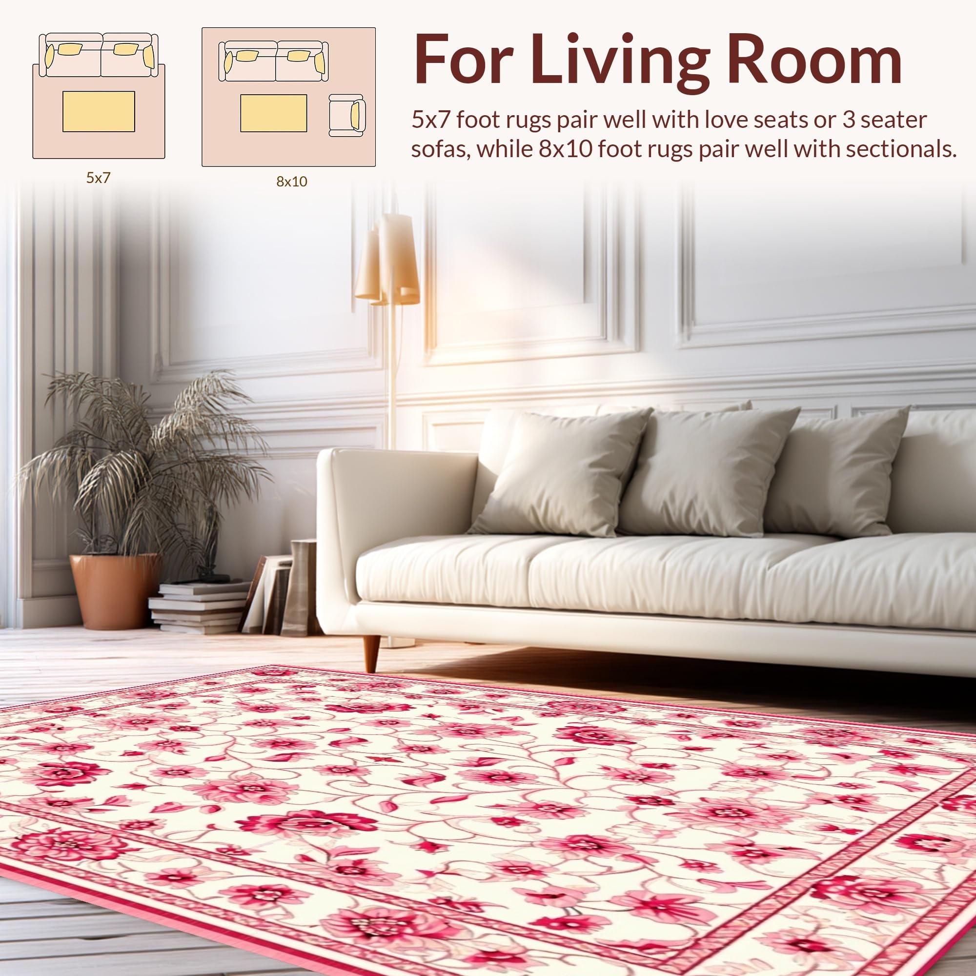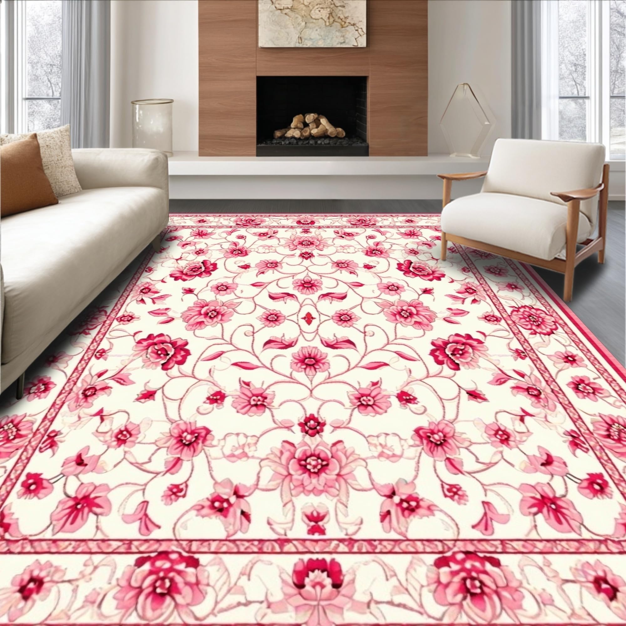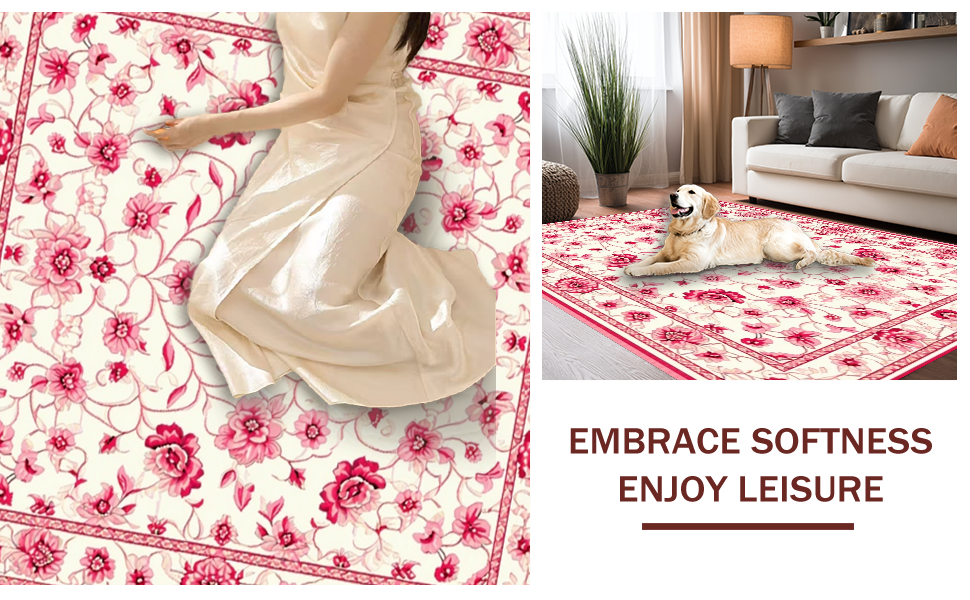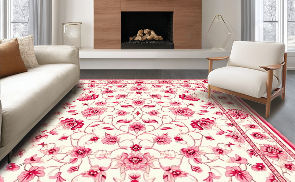 Ultra Soft Area Rug, Non Slip, Stain Resistant, Washable Area Rugs for Living Room, Bedroom, Vibrant Tropical Bloom Design(White) Overview:
