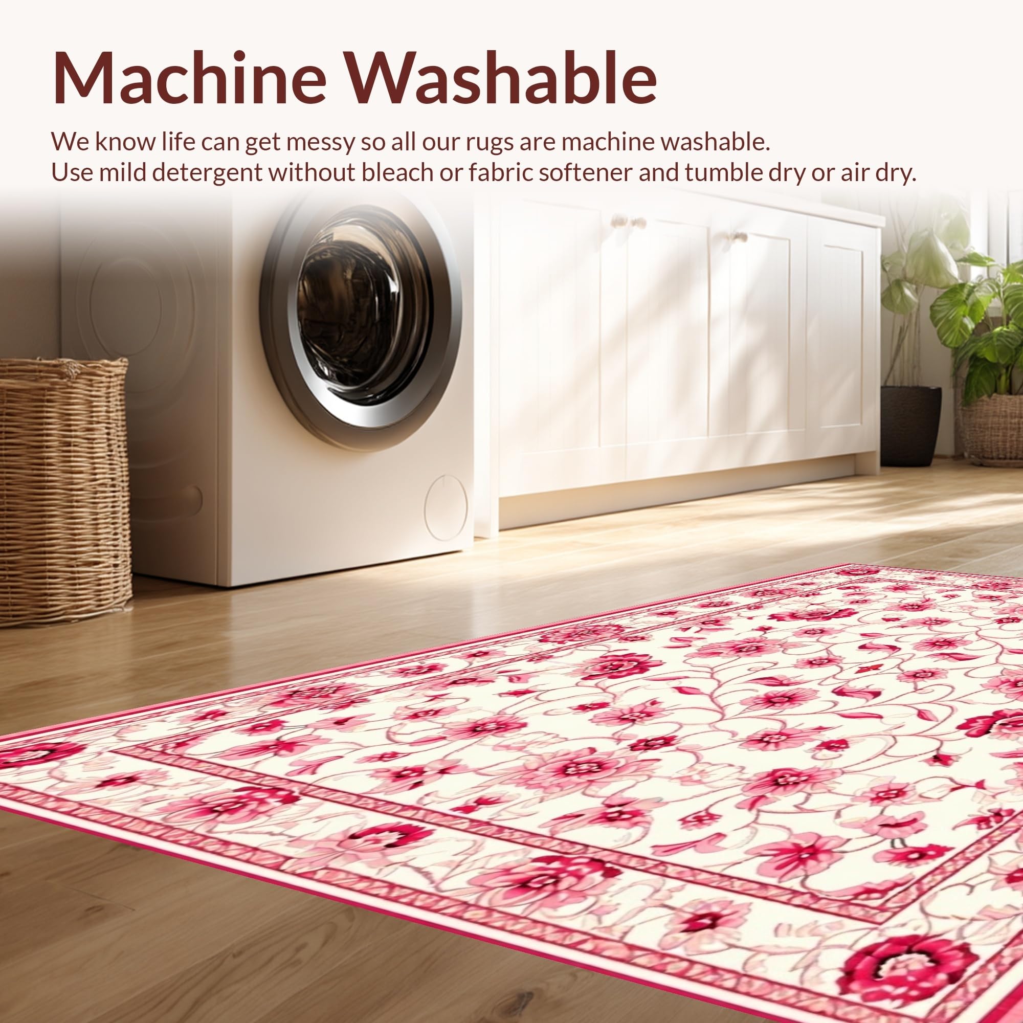 - Machine Washable: Our rugs can be easily thrown in the wash machine.