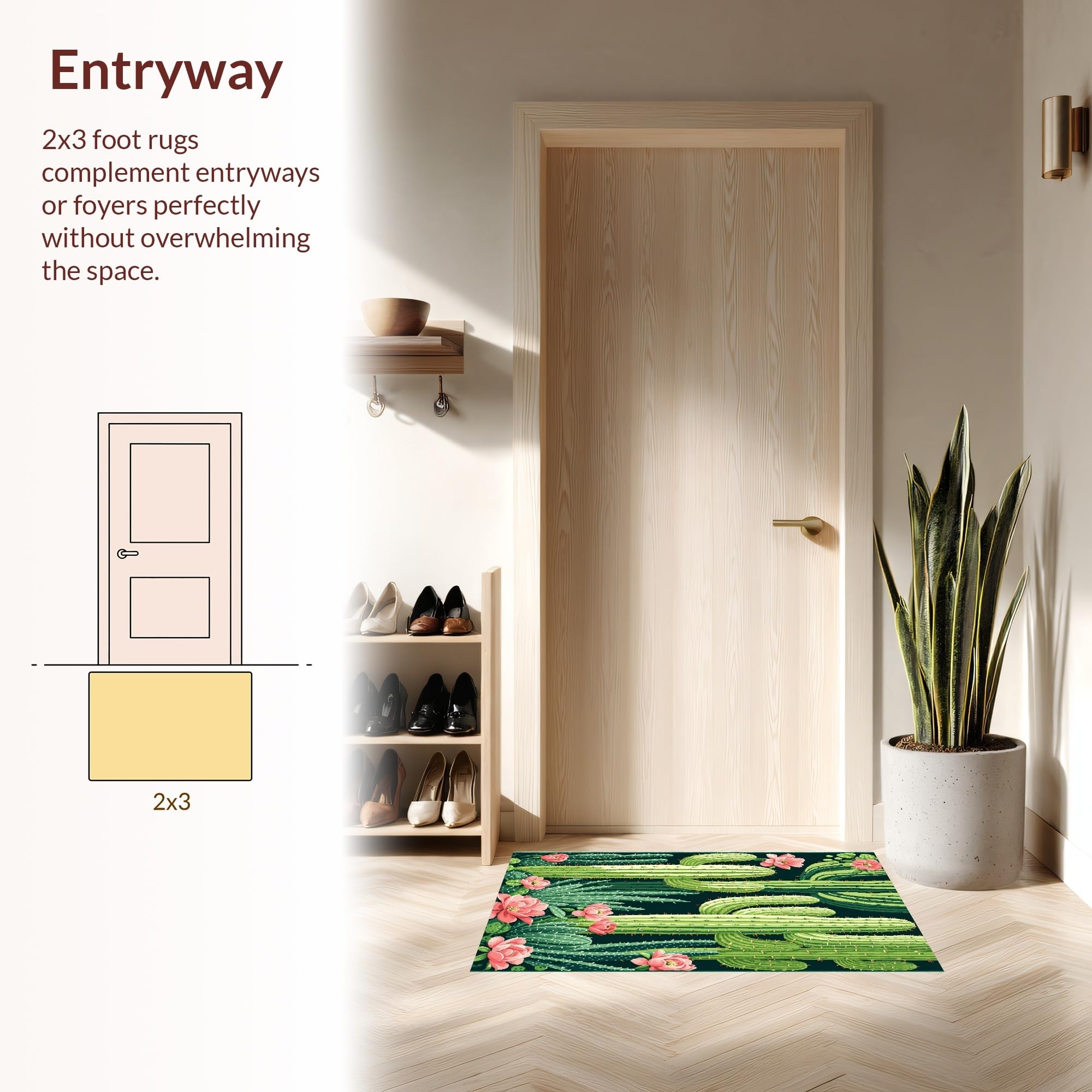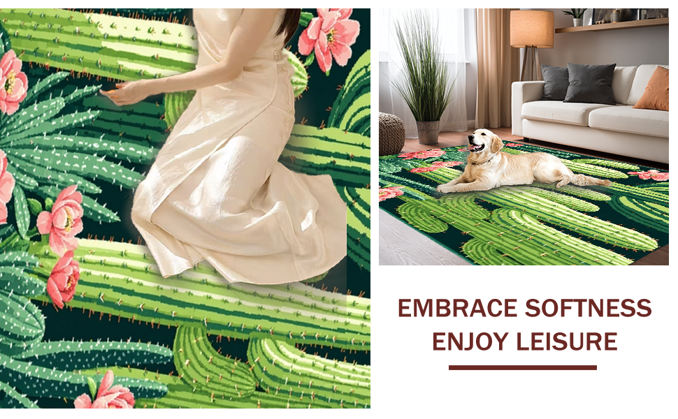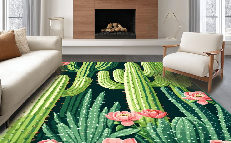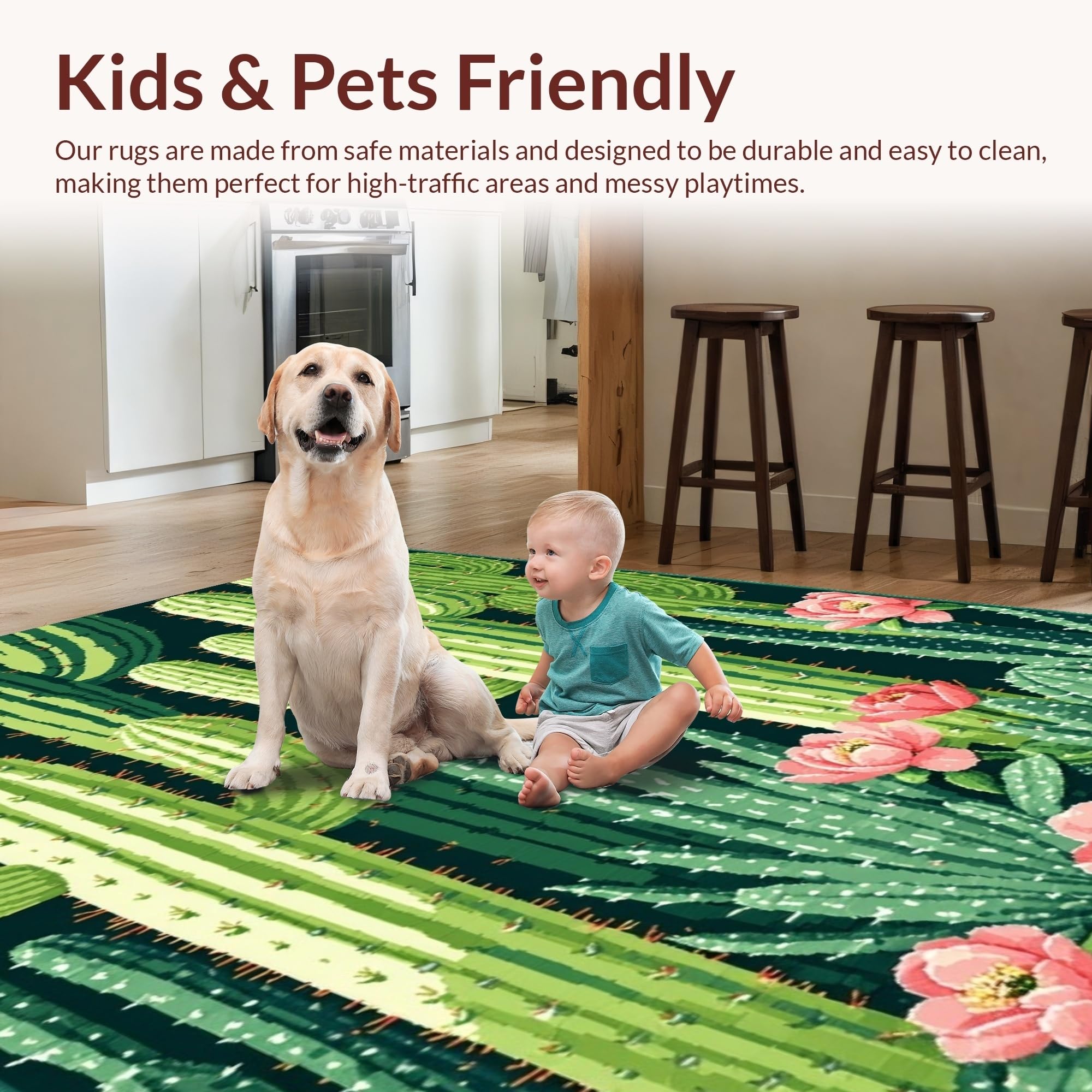Ultra Soft Area Rug, Non Slip, Stain Resistant, Washable Area Rugs for Living Room, Bedroom, Vibrant Tropical Botanical Design(Green) Overview: