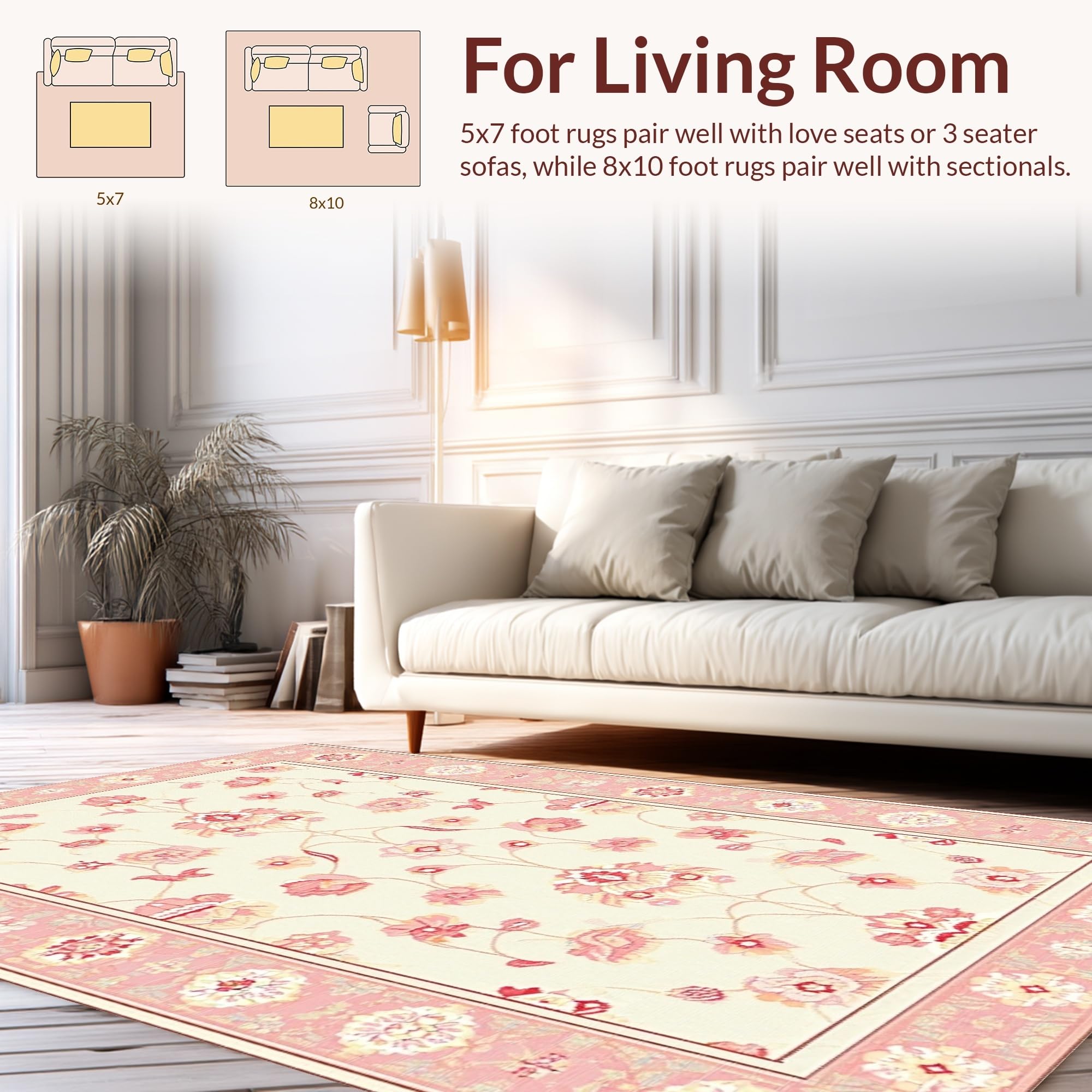 Ultra Soft Area Rug, Non Slip, Stain Resistant, Washable Area Rugs for Living Room, Bedroom, Vibrant Tropical Botanical Print(Beige) Overview:
