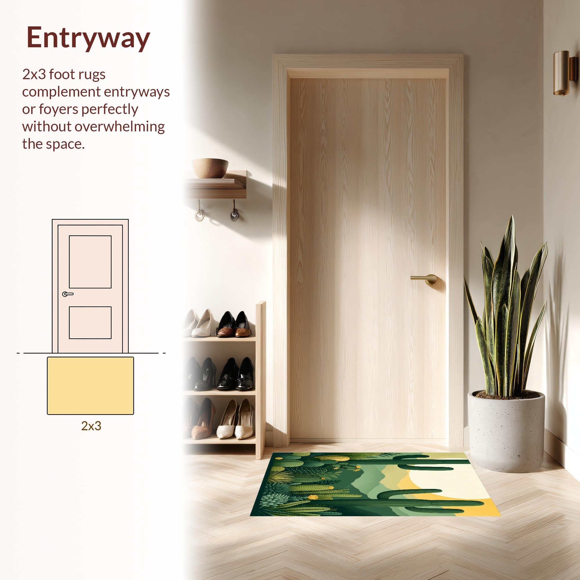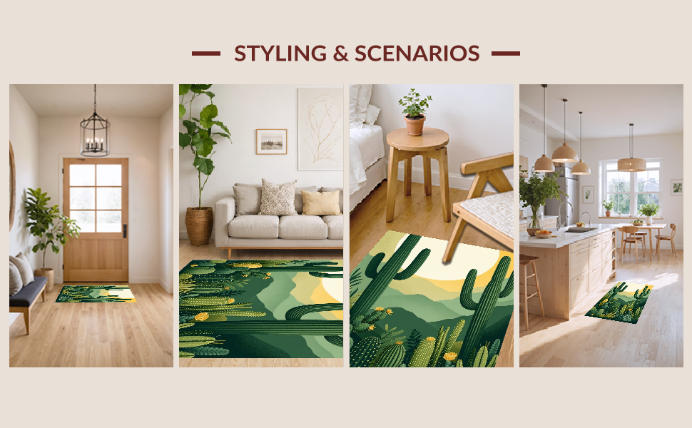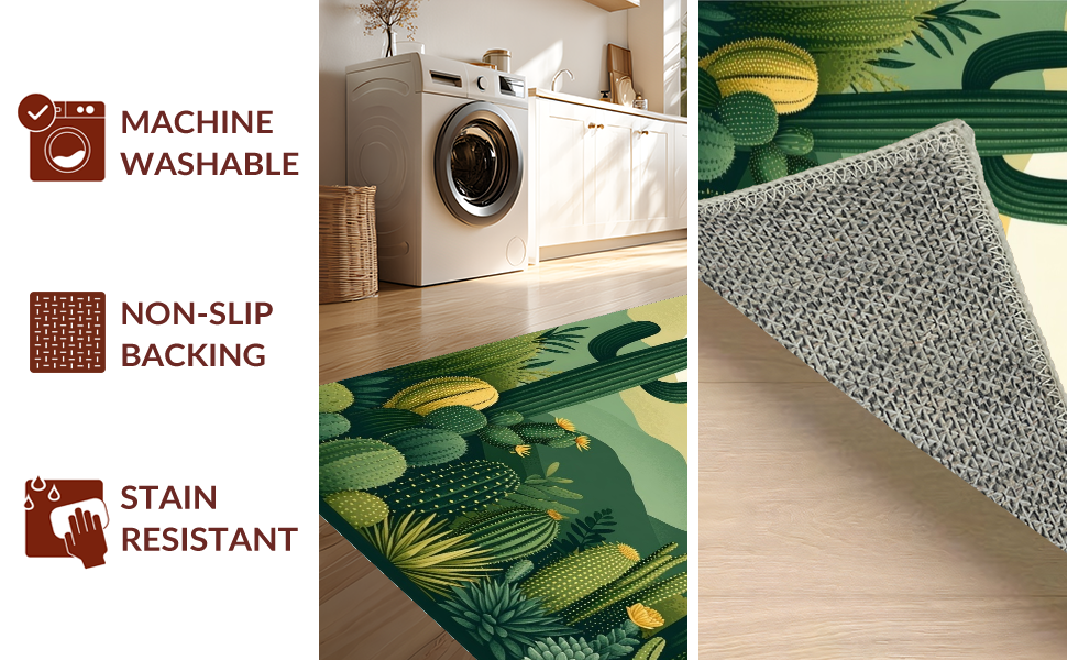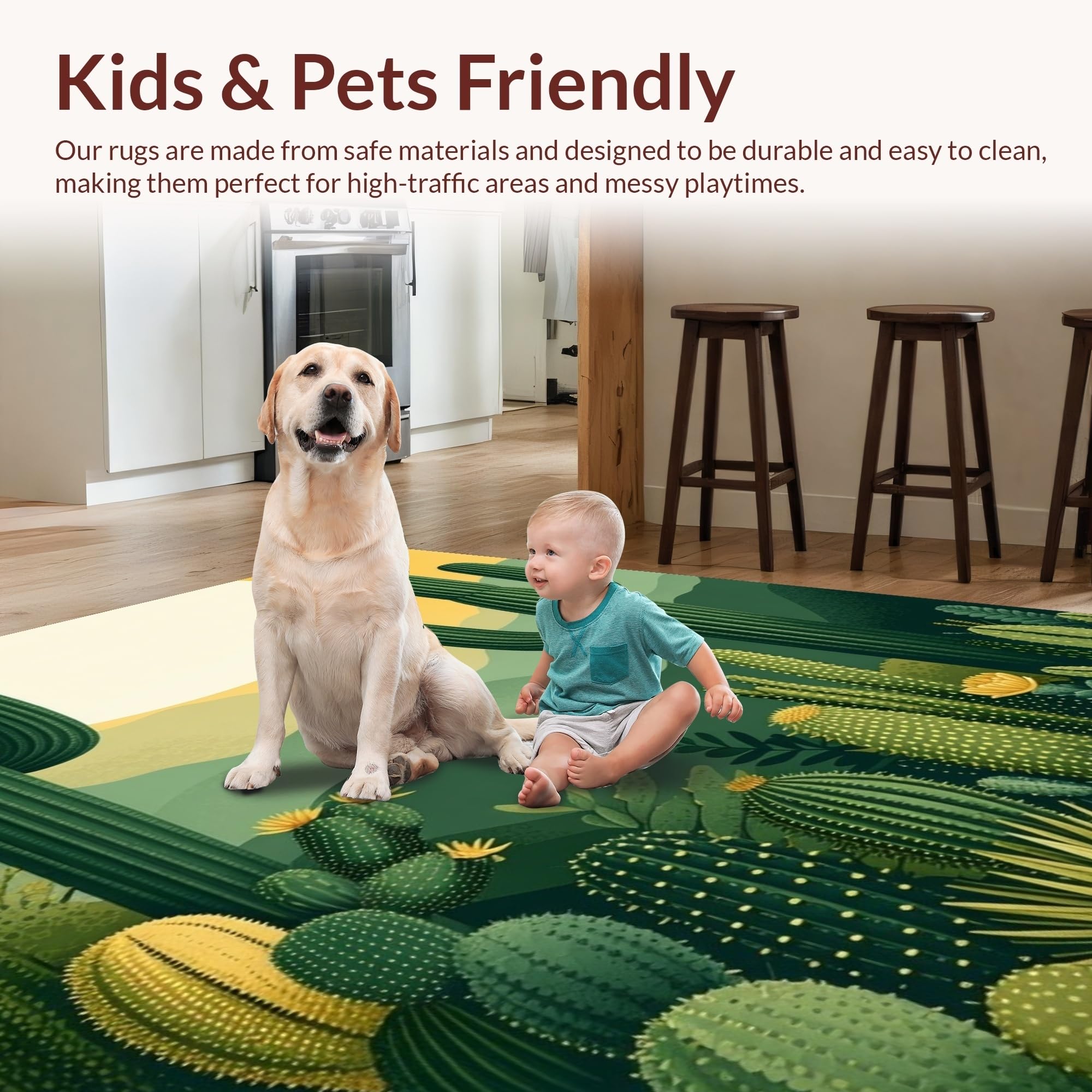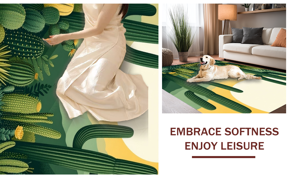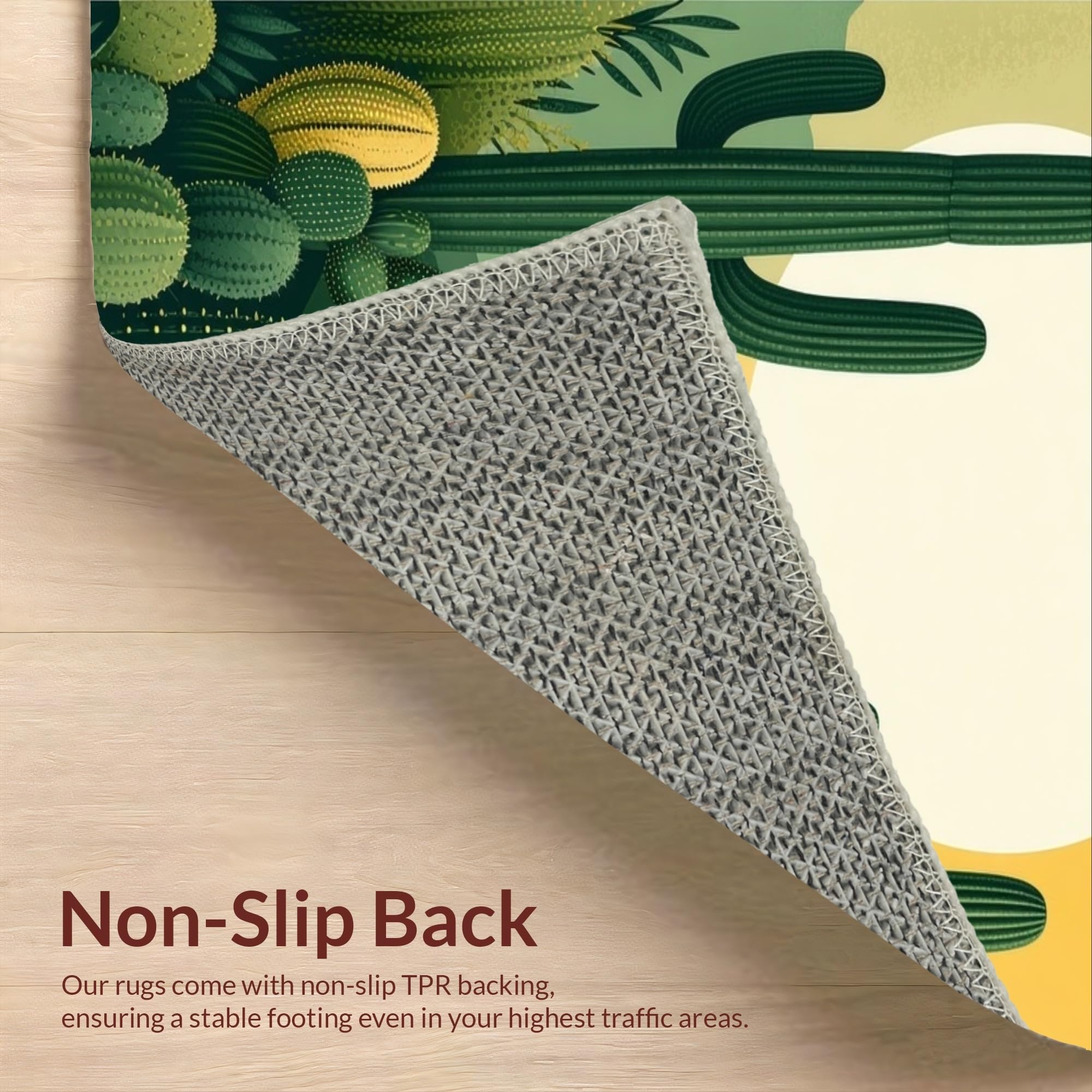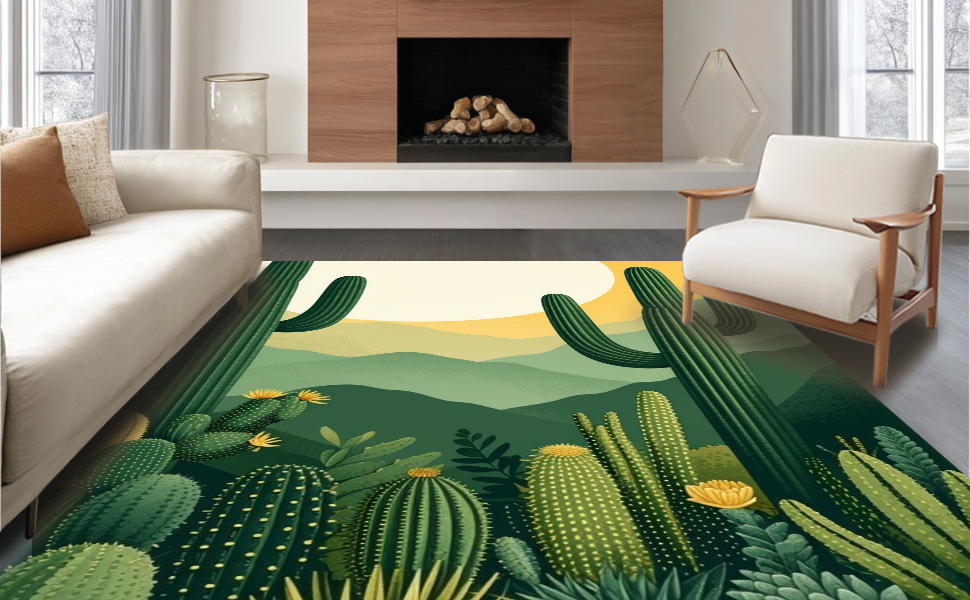 Ultra Soft Area Rug, Non Slip, Stain Resistant, Washable Area Rugs for Living Room, Bedroom, Vibrant Tropical Cactus Aesthetic(Green) Overview: