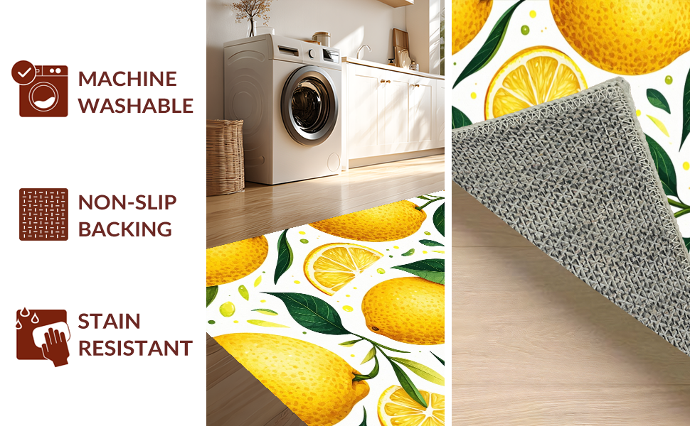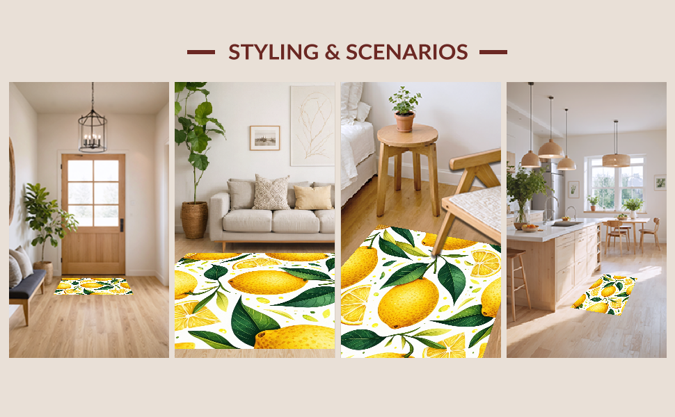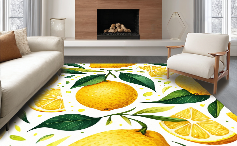 Ultra Soft Area Rug, Non Slip, Stain Resistant, Washable Area Rugs for Living Room, Bedroom, Vibrant Tropical Citrus Aesthetic(Yellow) Overview: