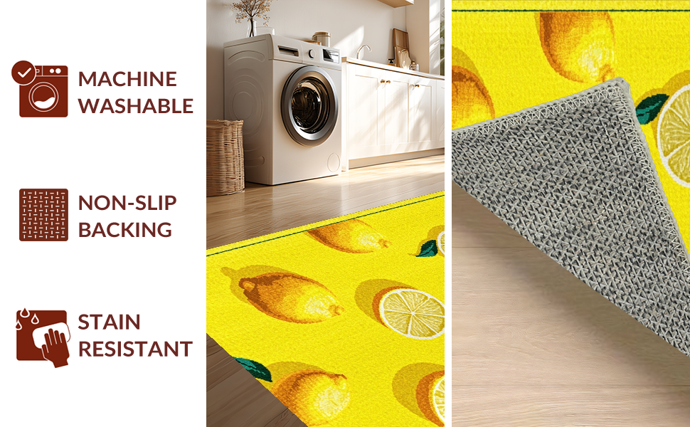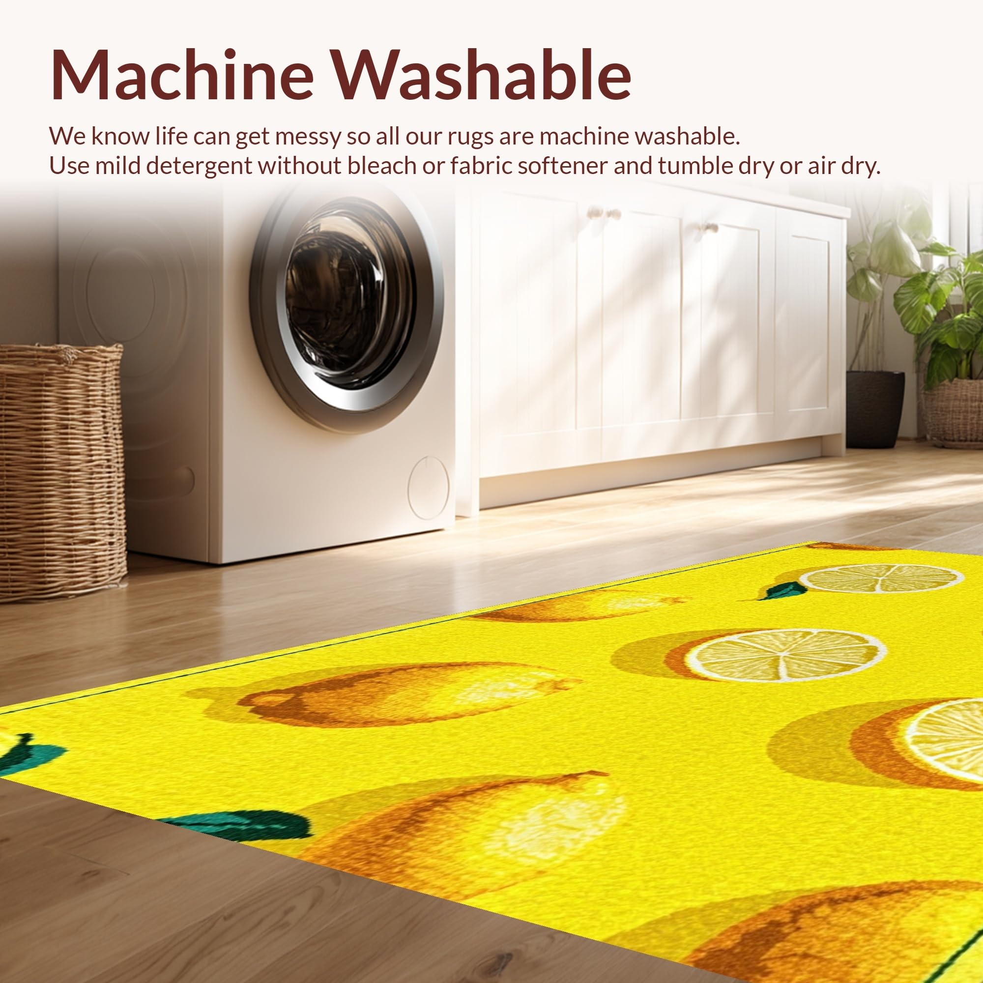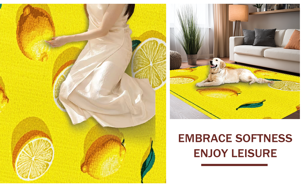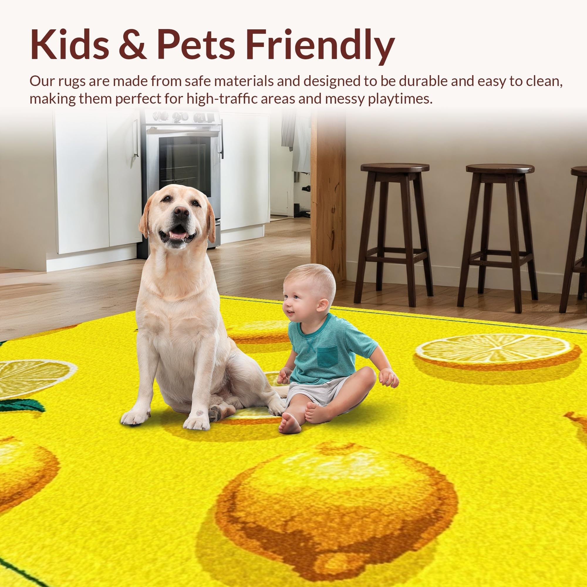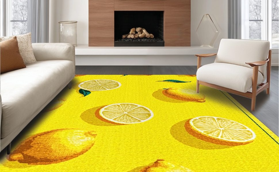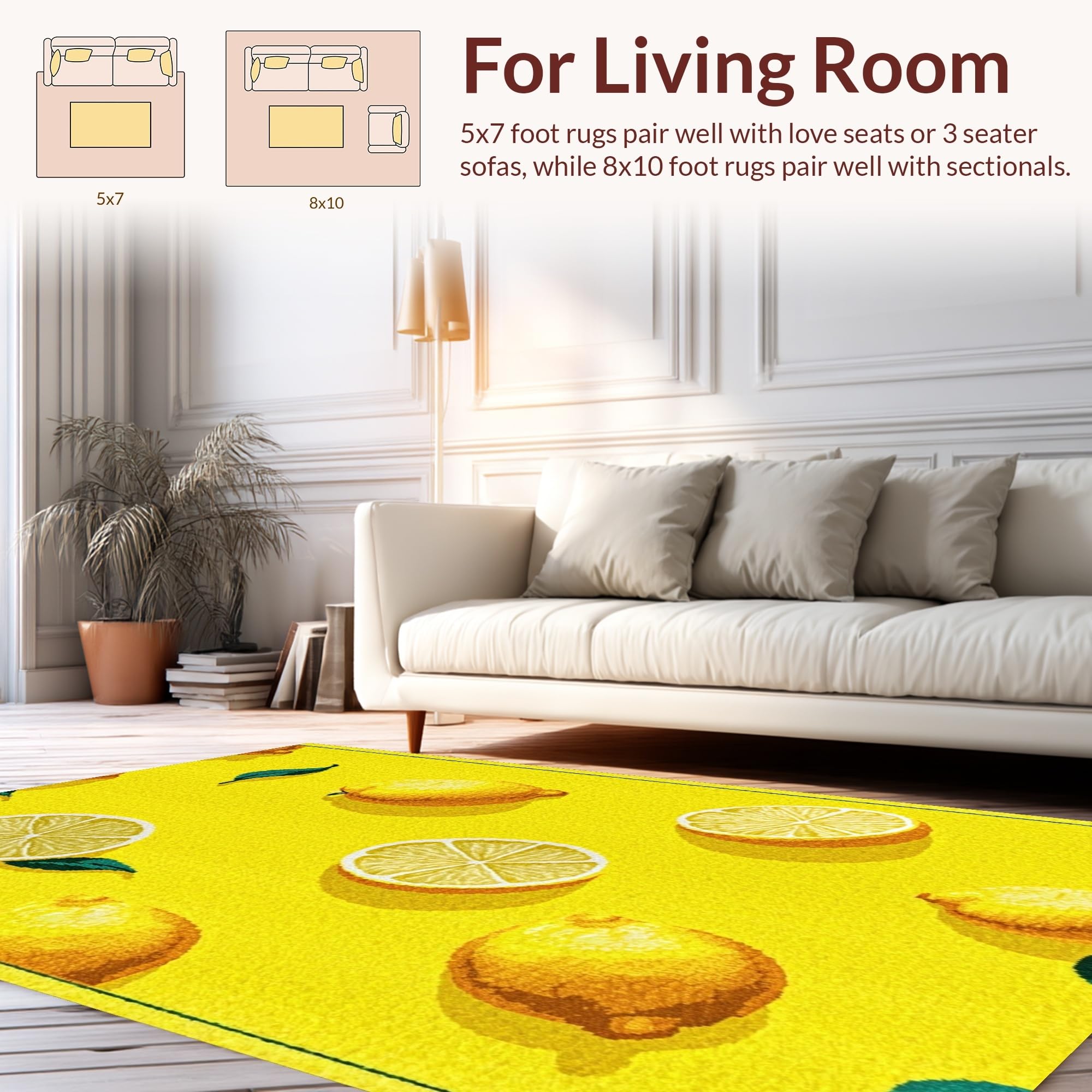 Ultra Soft Area Rug, Non Slip, Stain Resistant, Washable Area Rugs for Living Room, Bedroom, Vibrant Tropical Fruit Aesthetic(Yellow) Overview: