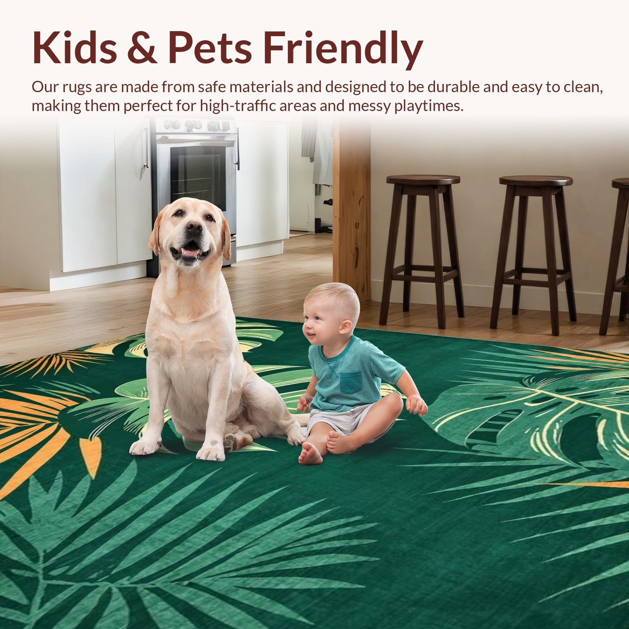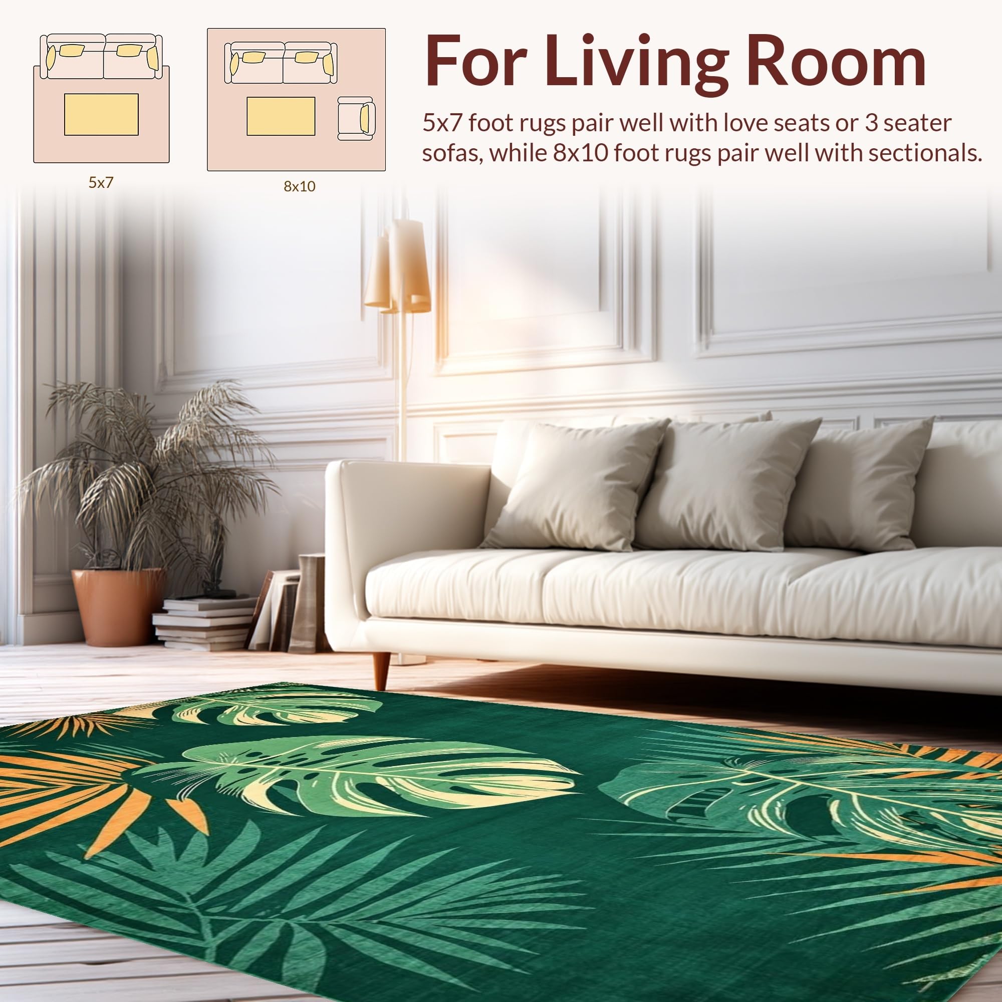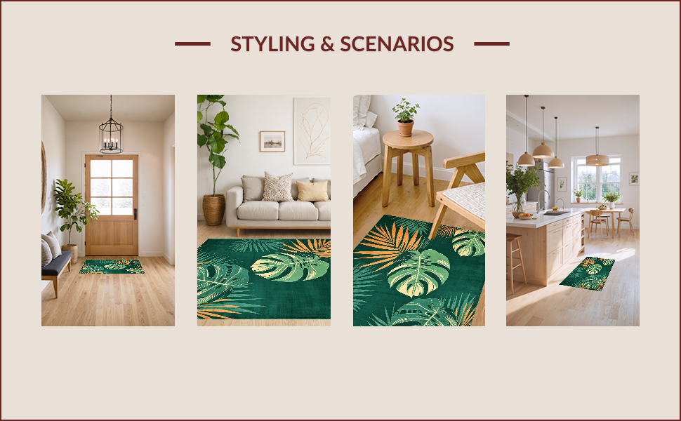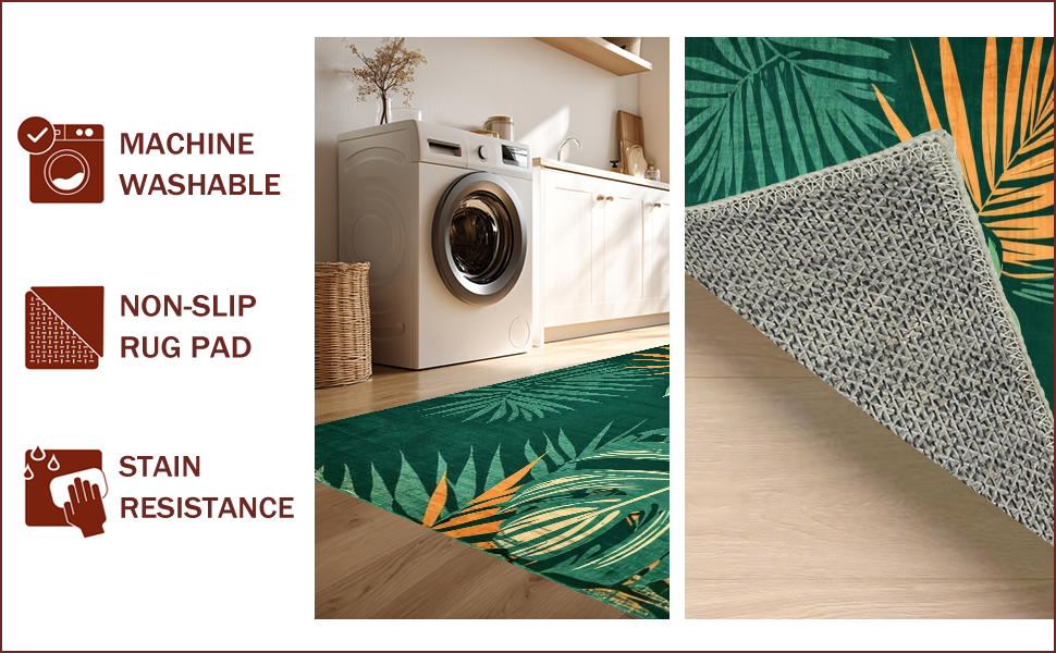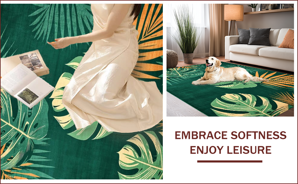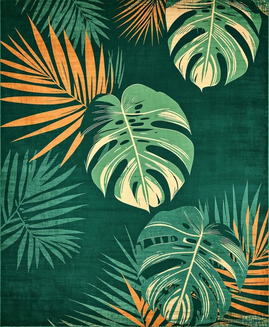 Ultra Soft Area Rug, Non Slip, Stain Resistant, Washable Area Rugs for Living Room, Bedroom, Vibrant Tropical Leaf Aesthetic(Green) Overview: