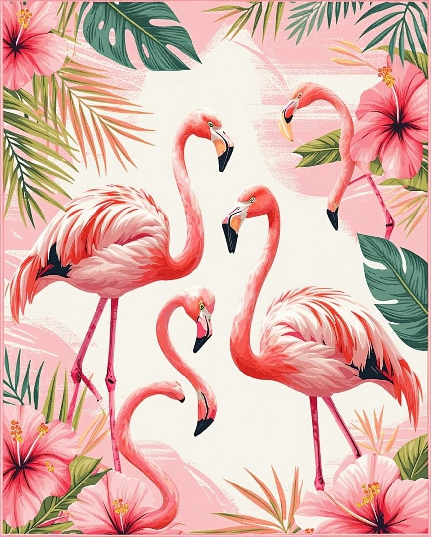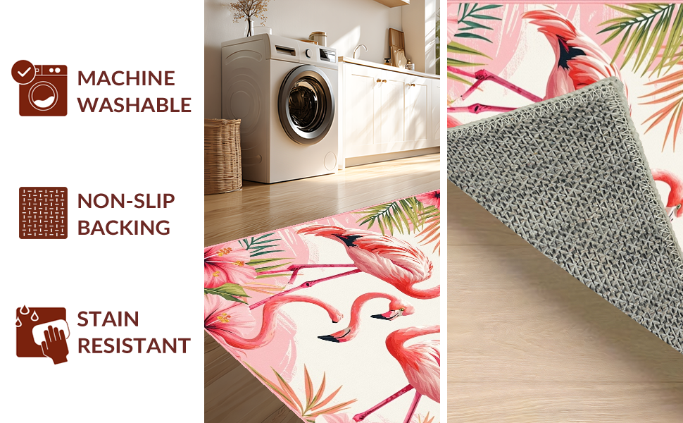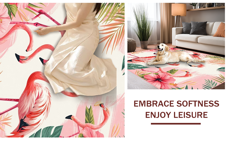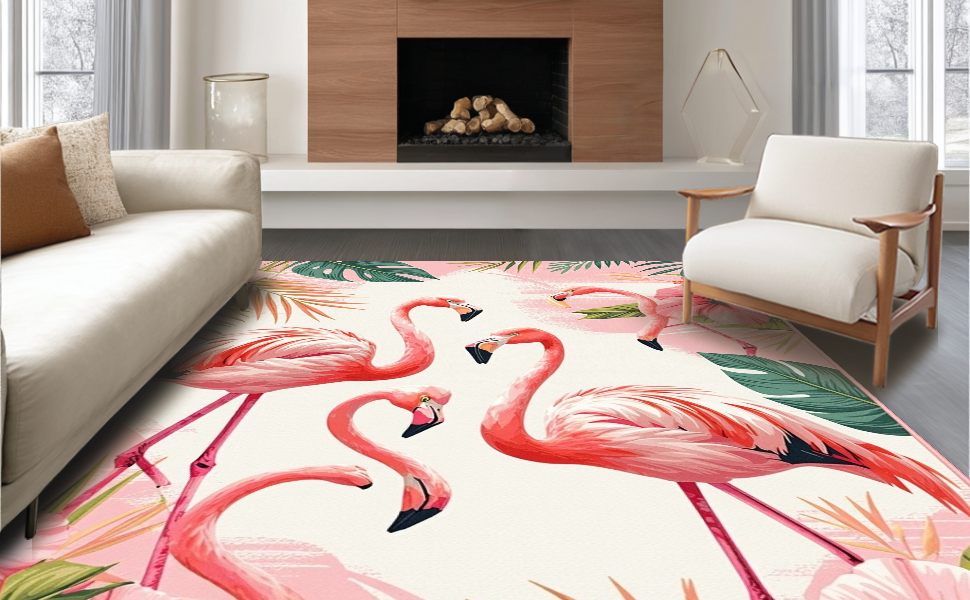 Ultra Soft Area Rug, Non Slip, Stain Resistant, Washable Area Rugs for Living Room, Bedroom, Vibrant Tropical Nature Scene(Pink) Overview: